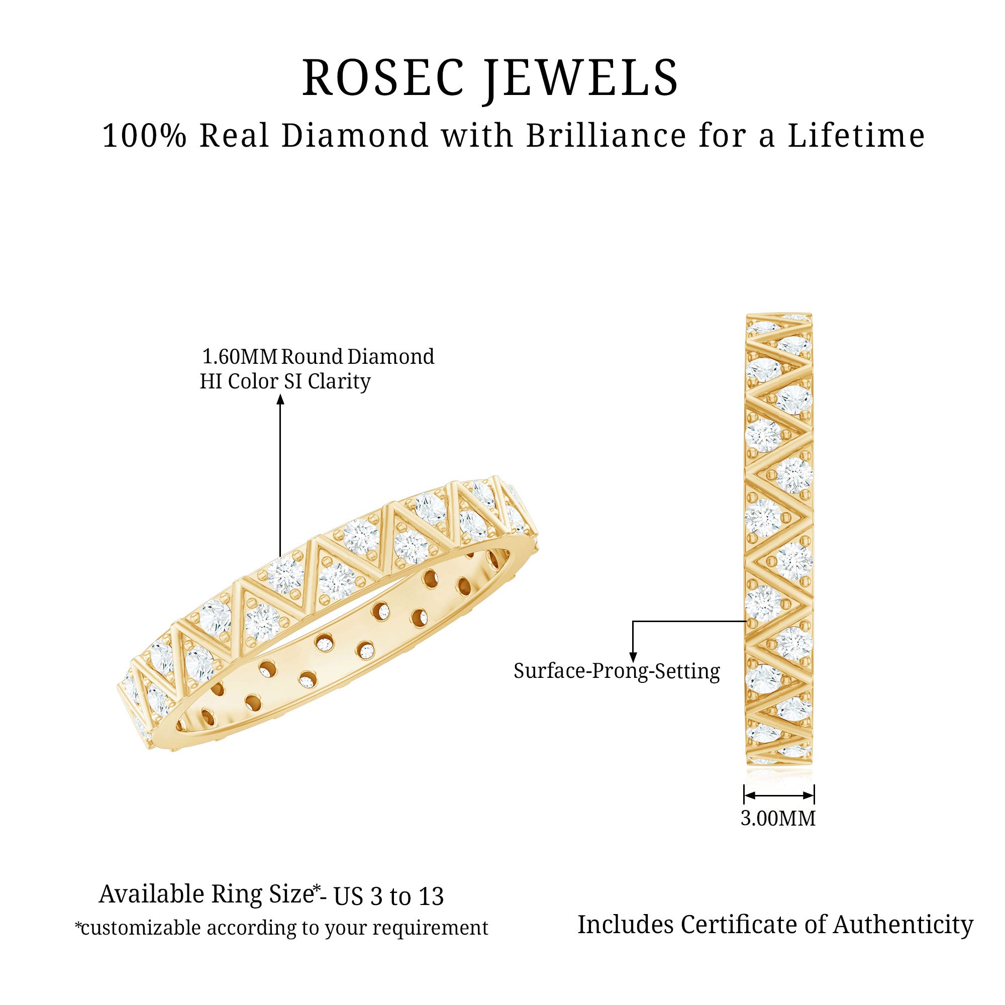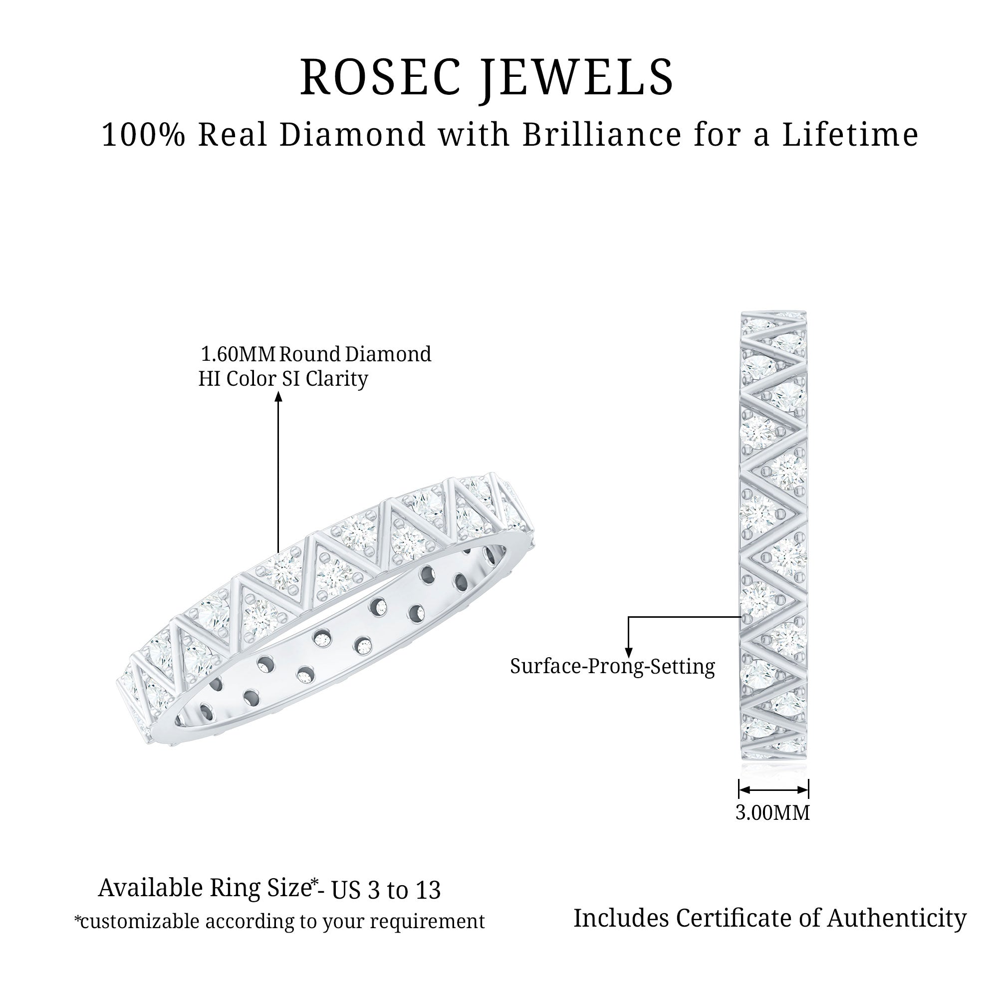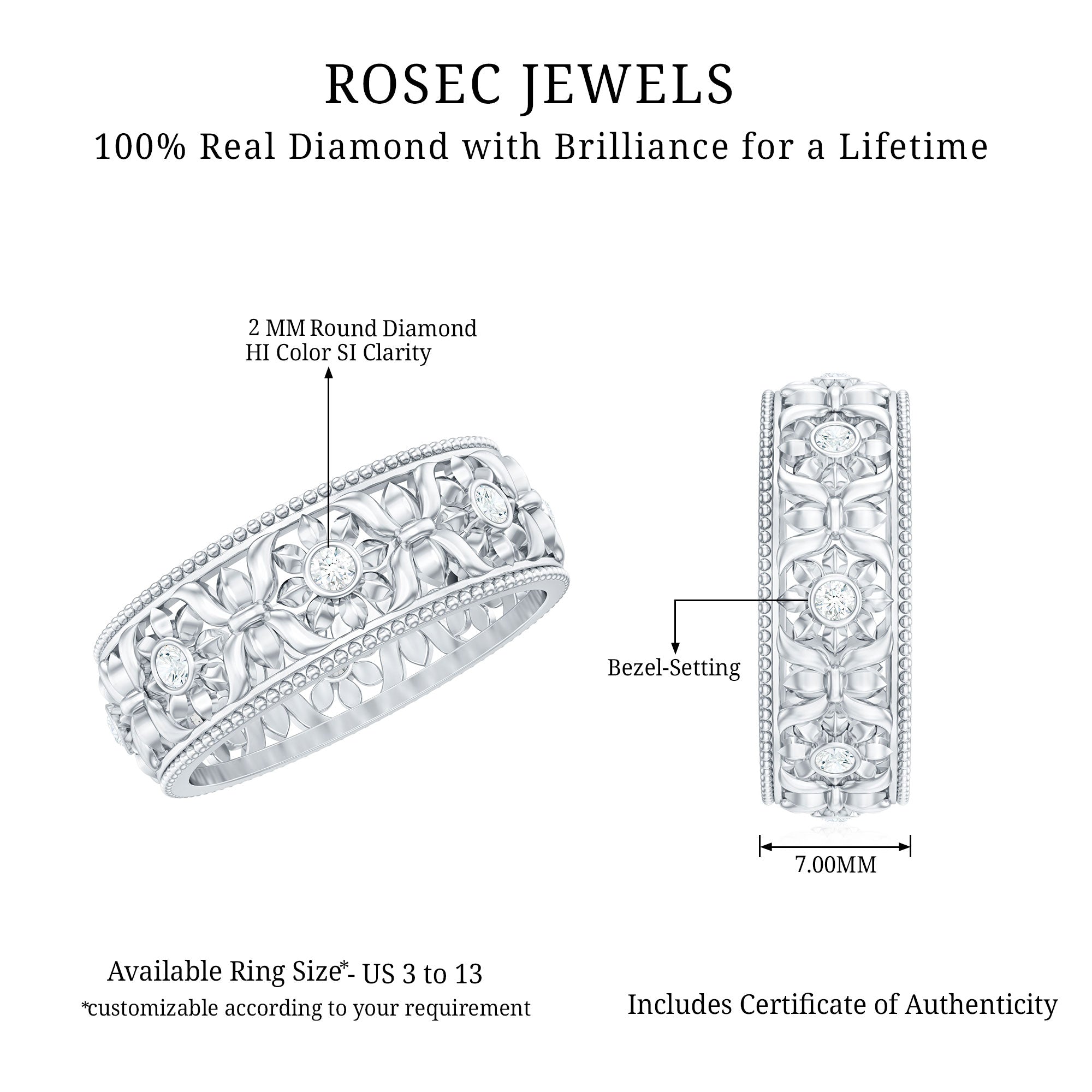 The craftsmen at Rosec Jewels are behind designing wedding ring styles that appeal to the women from all walks of life. With a keen attention to details and keeping a check on all the quality factors famously termed as the 4C’s Diamonds. The exceptional hardness offers our cutters to conveniently cut it into shapes to curate alluring diamond eternity bands, marquise diamond wedding band and baguette diamond eternity ring. In order to explore more elegant options, you can also select white gold diamond wedding bands and rose gold diamond bands.