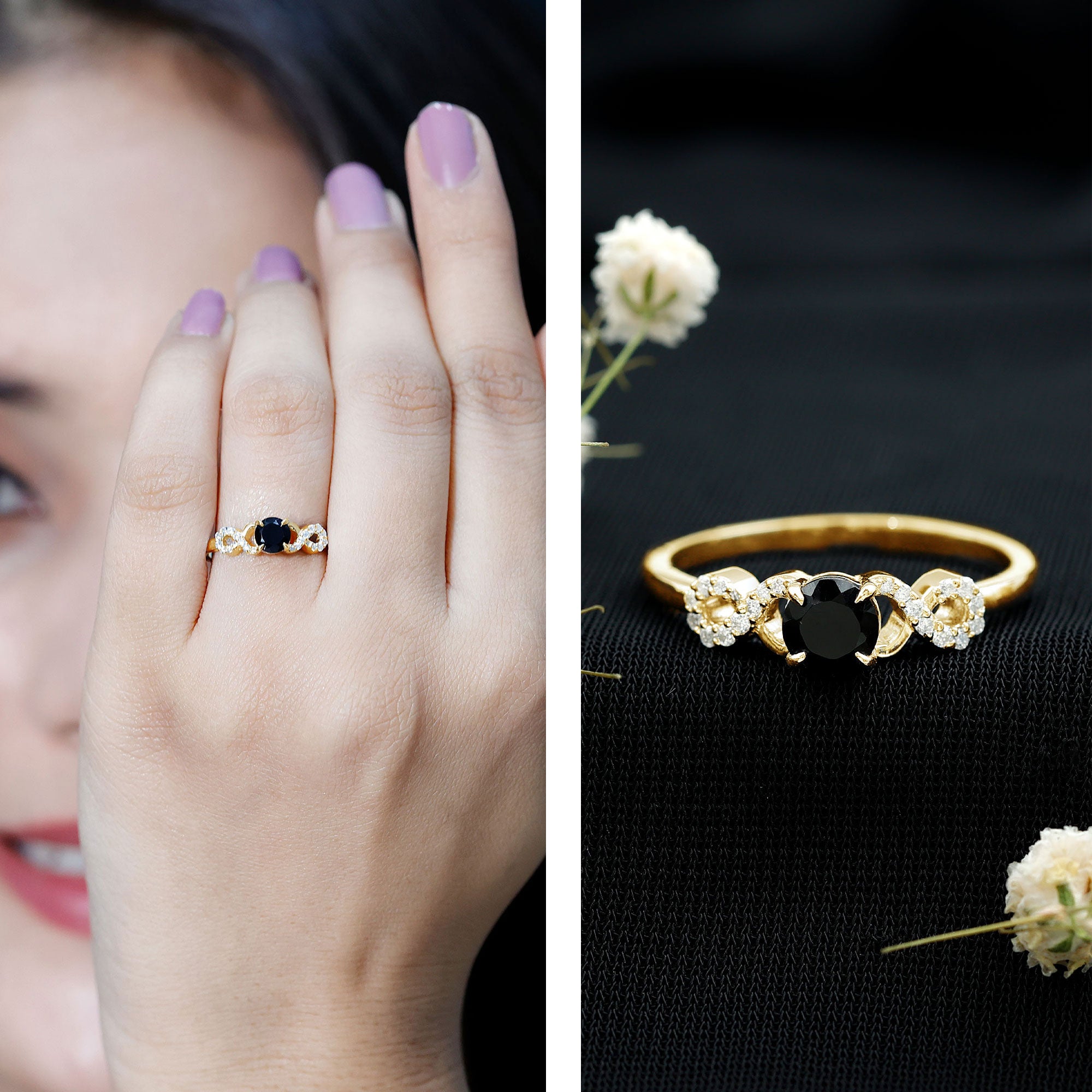 Bagues de fiançailles en spinelle noire | Alliances de mariage pour femmes en spinelle noire