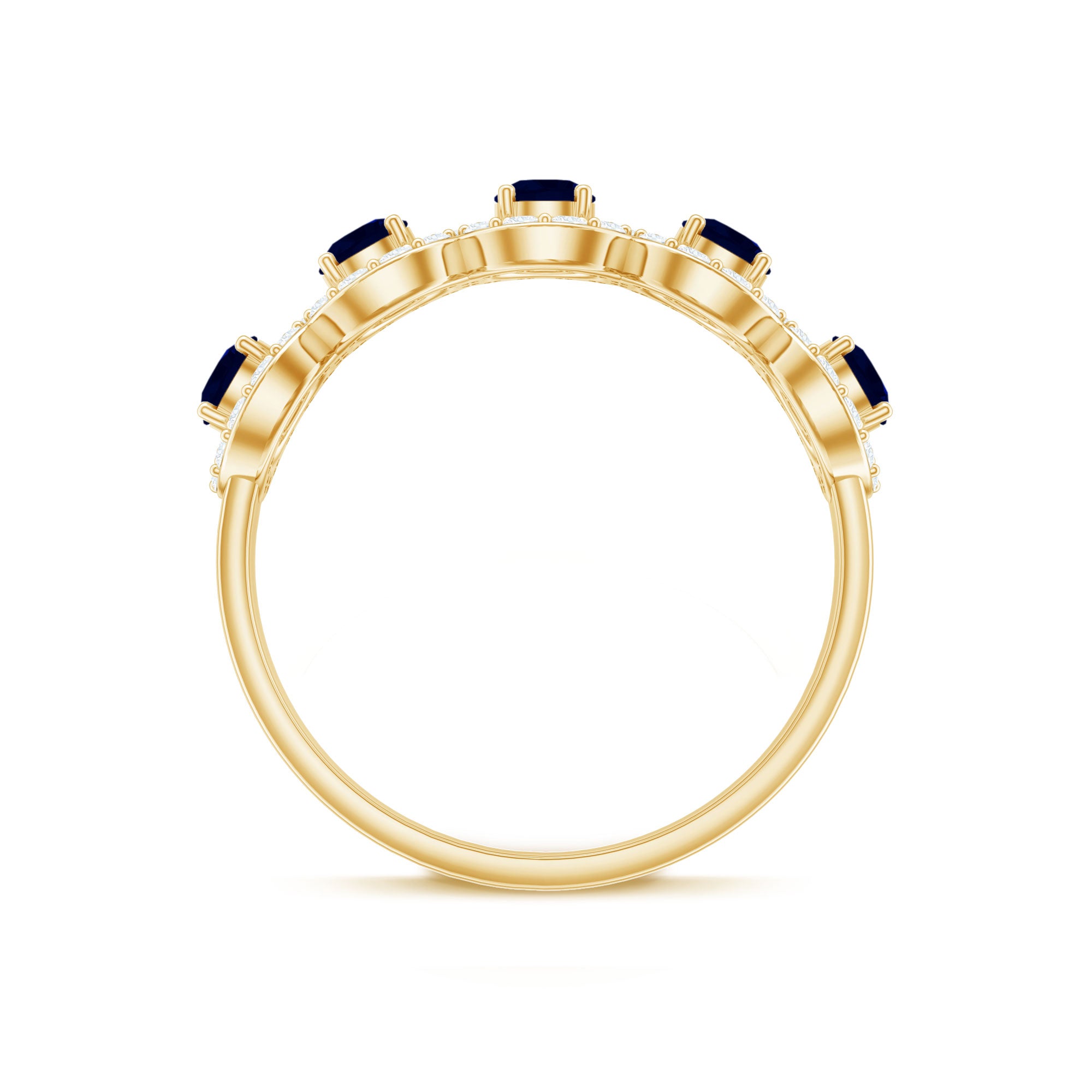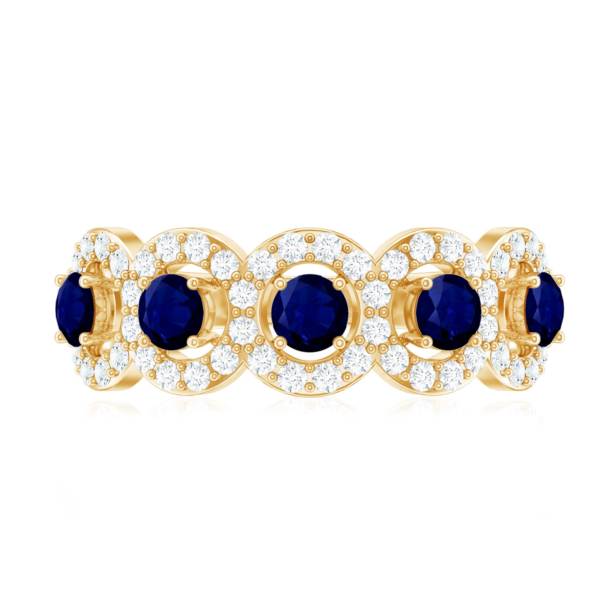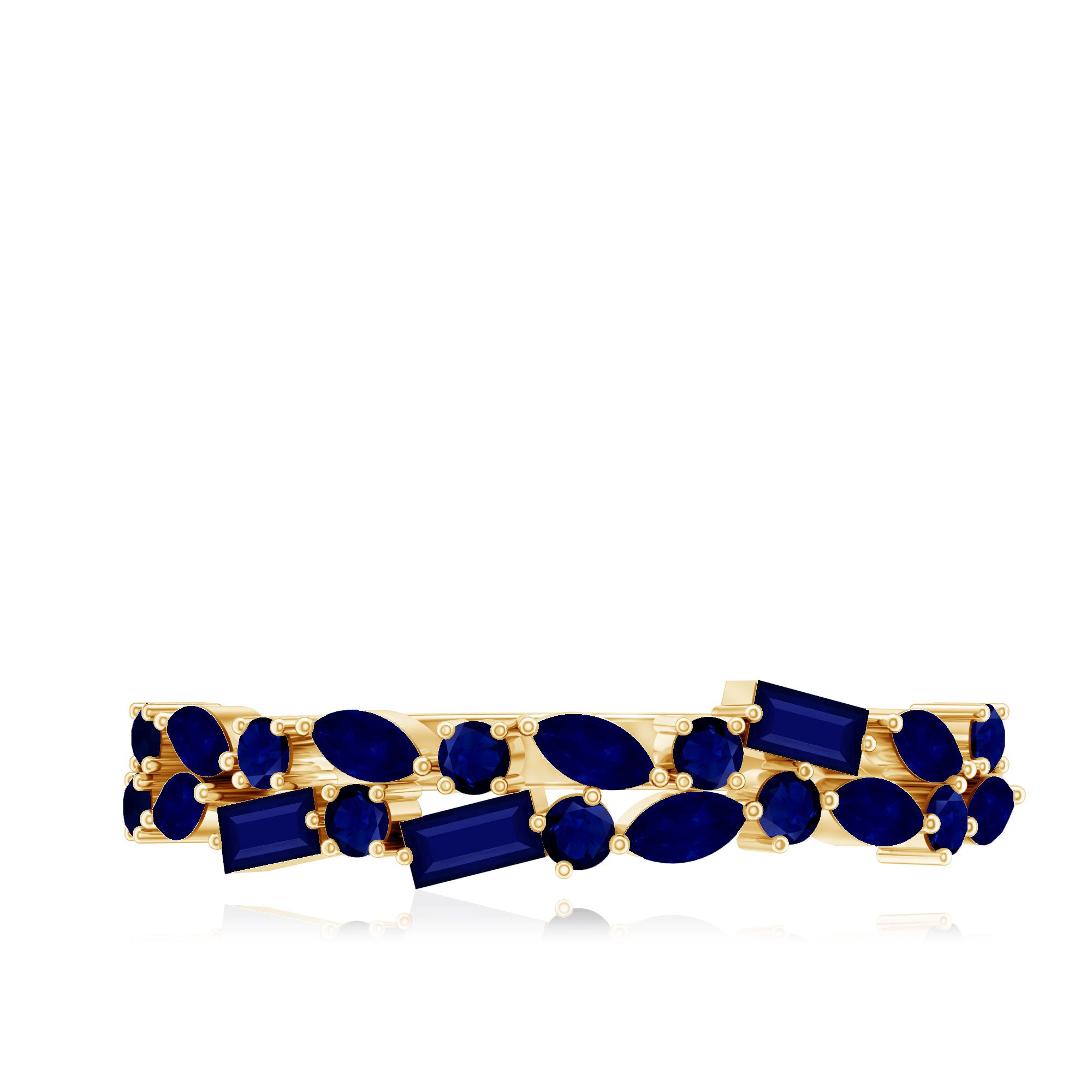 Considérée comme l'un des témoignages d'amour les plus romantiques, une bague d'éternité en saphir bleu est incrustée de saphirs bleus de taille uniforme dans un cercle ininterrompu (sur tout l'anneau). Il dégage une ambiance intemporelle, complétée par la touche bleue vibrante d'une rangée de saphirs. La meilleure partie? Vous pouvez l'empiler avec vos cierges magiques préférés avec peu ou pas d'effort. De plus, cette bague en saphir bleu commémore le genre d'amour qui ne connaît aucune mesure.