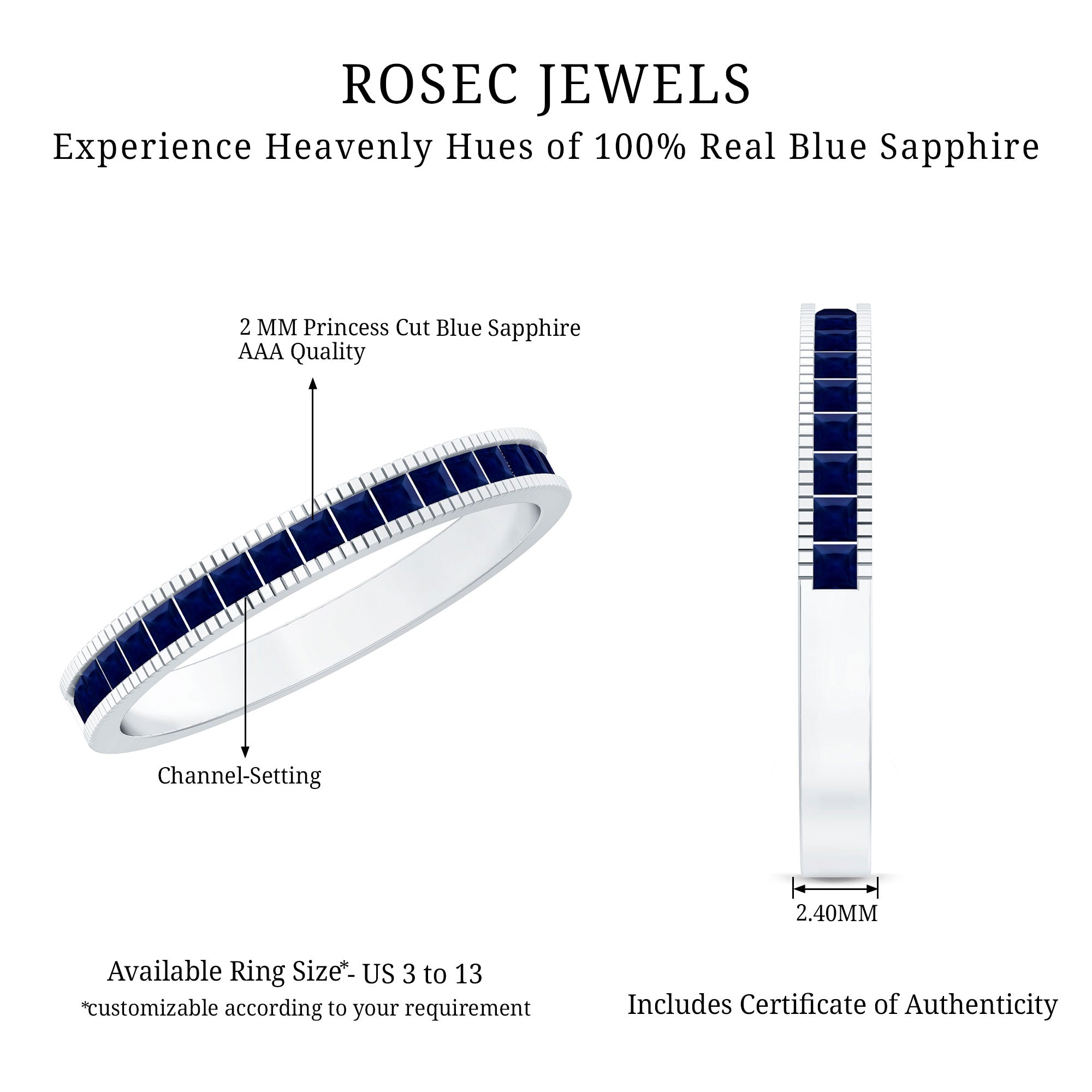 Bague d'éternité avec saphir bleu