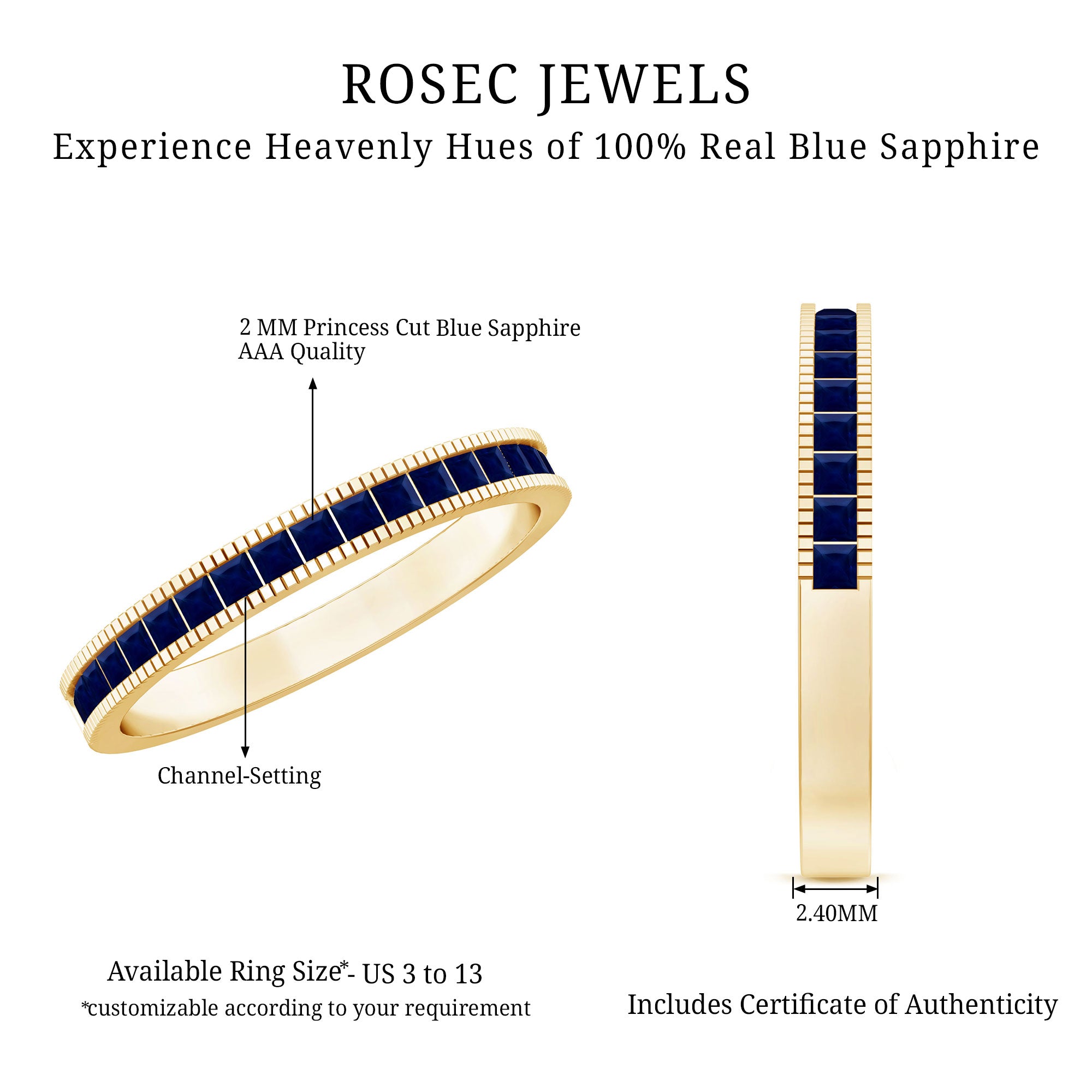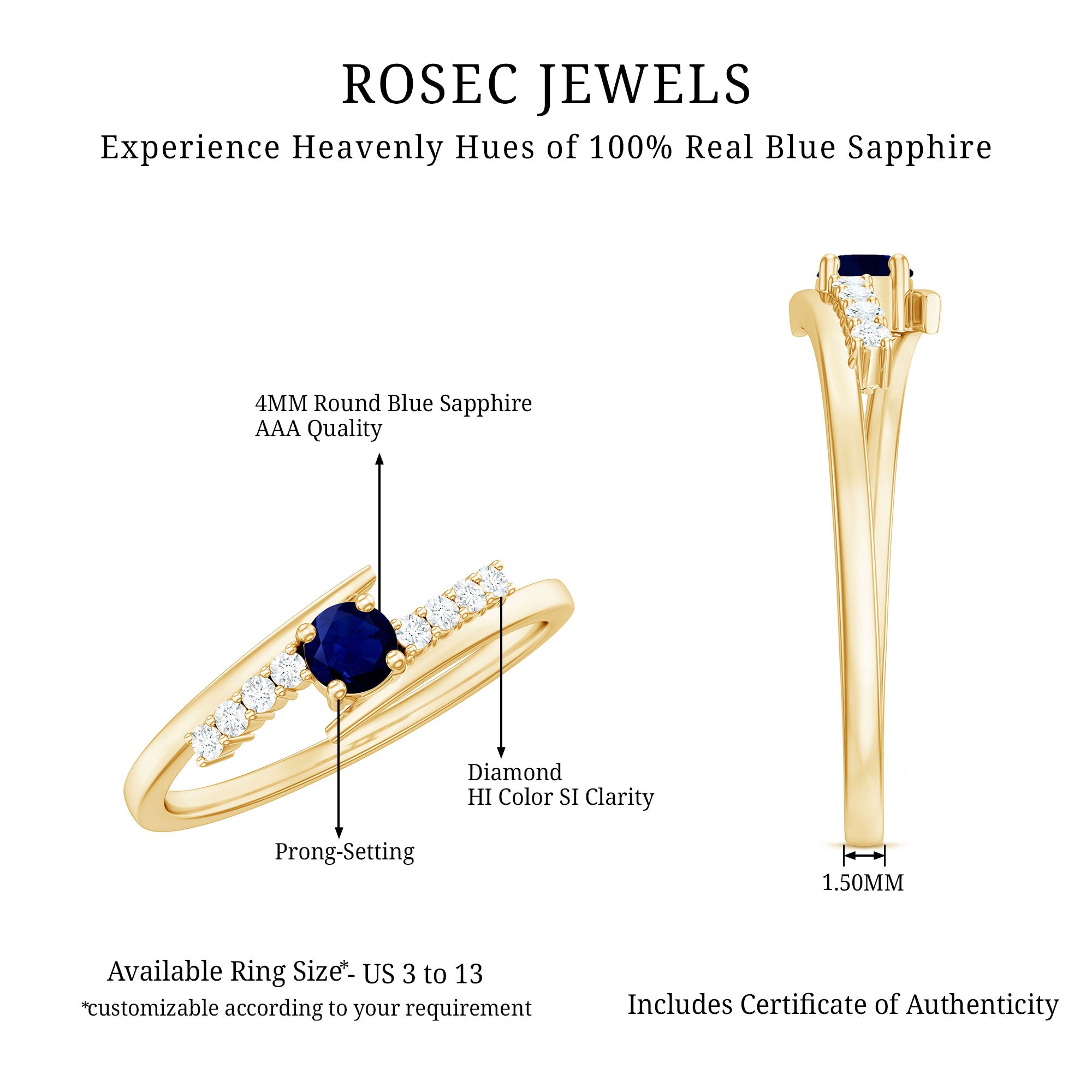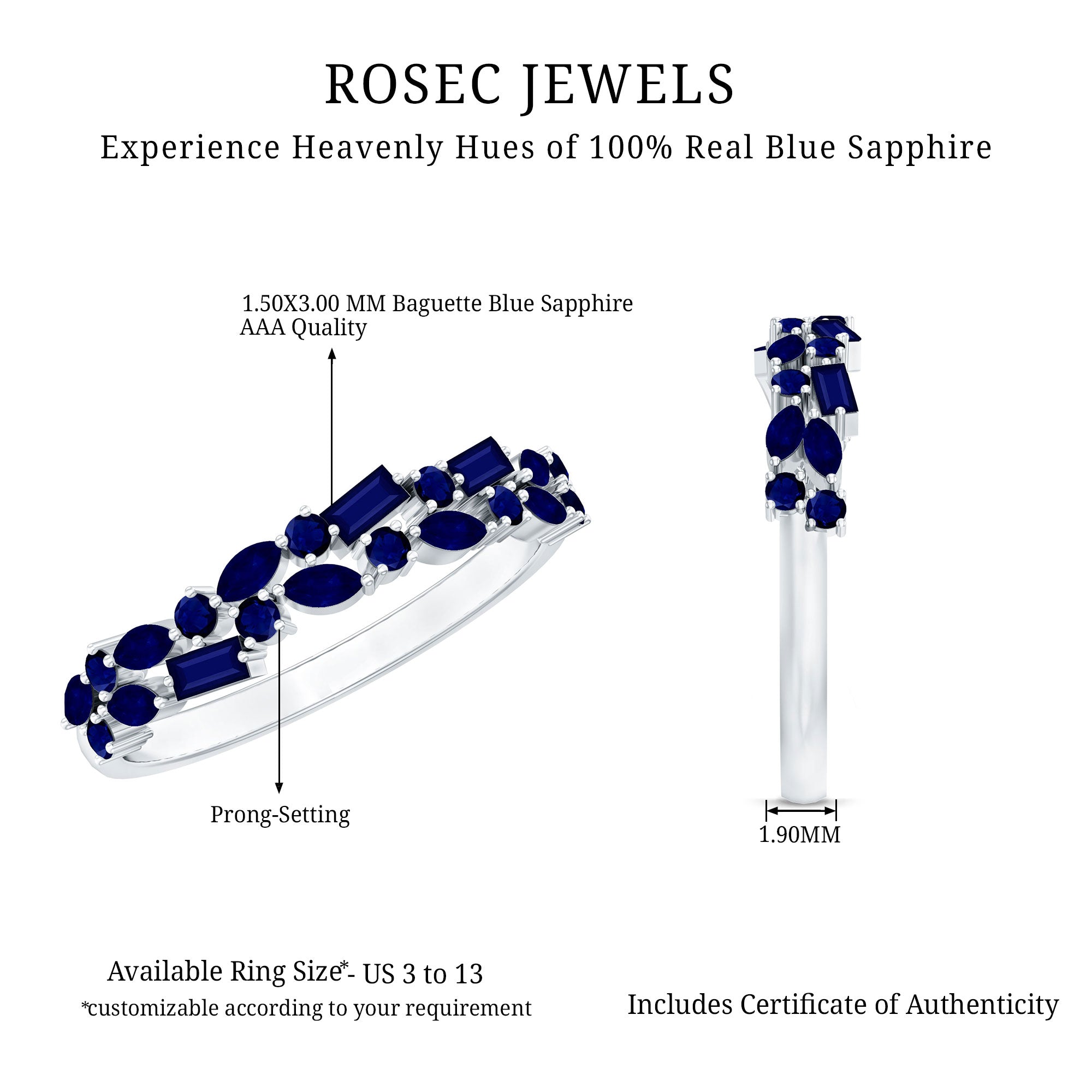 Fidèle à son nom, une bague solitaire en saphir bleu présente une énorme pièce maîtresse en saphir bleu destinée à voler toute la vedette. Le Solitaire de Blue Sapphire fait ici sentir sa présence avec sa taille énorme de 6 MM ou plus. Son attrait classique et discret en fait le choix idéal en matière de style de bague de fiançailles dans un ensemble de bagues de mariée en saphir bleu. Ce qui rend ce style de bague polyvalent, c’est le fait qu’il convient à de nombreuses esthétiques. Alors qu'une bague saphir bleu taille ronde offre une touche classique, celle façonnée en taille marquise, princesse ou poire est faite pour les futurs mariés non conventionnels. Une bague en saphir bleu Asscher ou émeraude, quant à elle, lui confère un attrait old-school parfait.