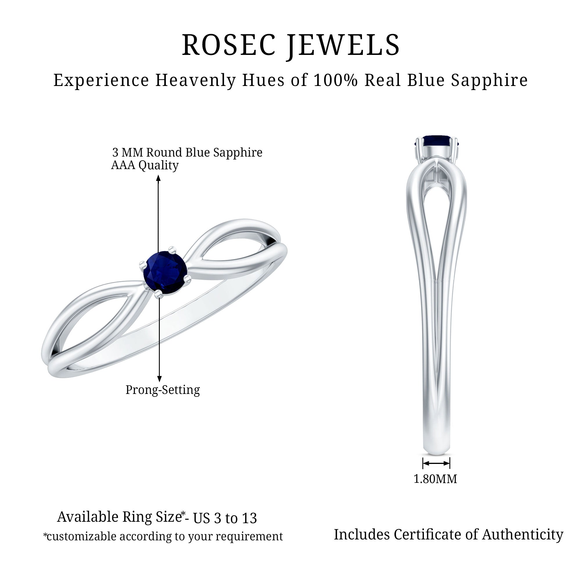 Une bague avec pierre de naissance en saphir bleu est souvent portée ou échangée entre amoureux en signe d'amour, de loyauté, de chance et de bonheur. Inutile de mentionner que cela en fait une bague de fiançailles en saphir bleu significative. Vous seriez fasciné de constater que cette pierre précieuse miraculeuse porte également des faveurs divines, ce qui en fait une grande pierre spirituelle. Le fait que Sapphire est connu pour vous libérer des pensées indésirables, de la négativité et de la dépression soutient pleinement cette croyance. De plus, on pense également qu’il confère sagesse, créativité et patience à celui qui le porte.