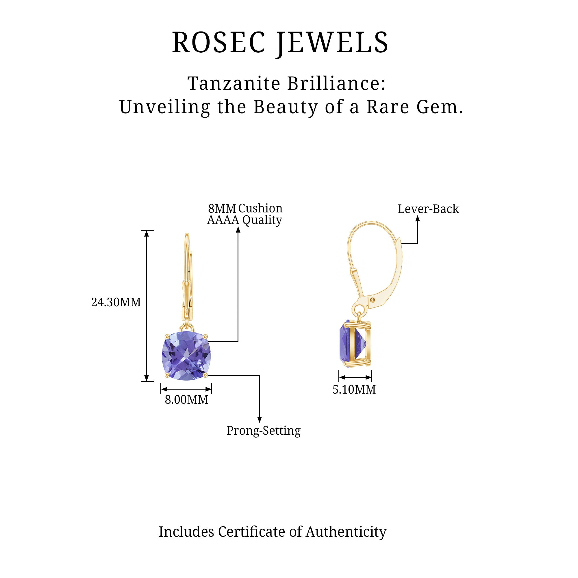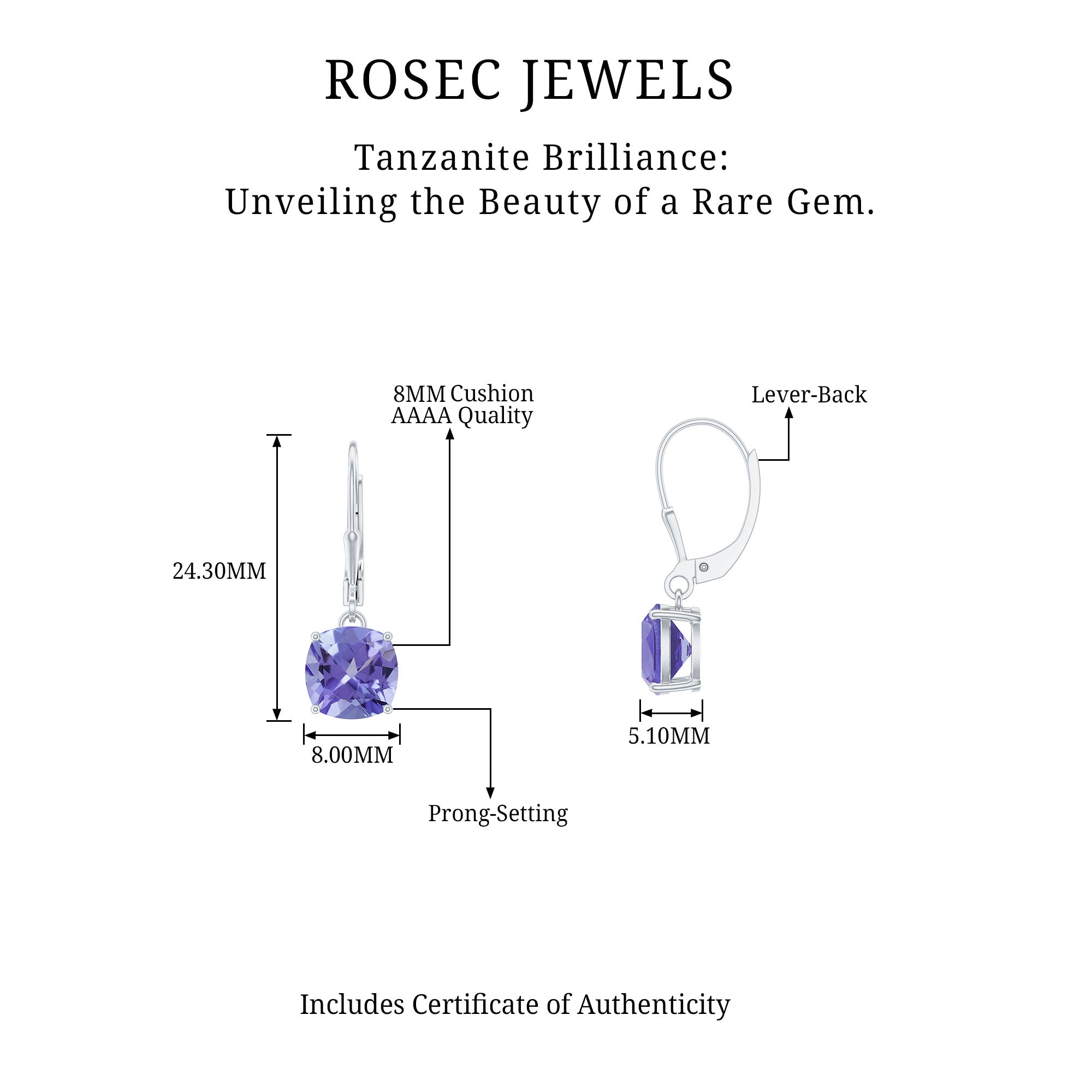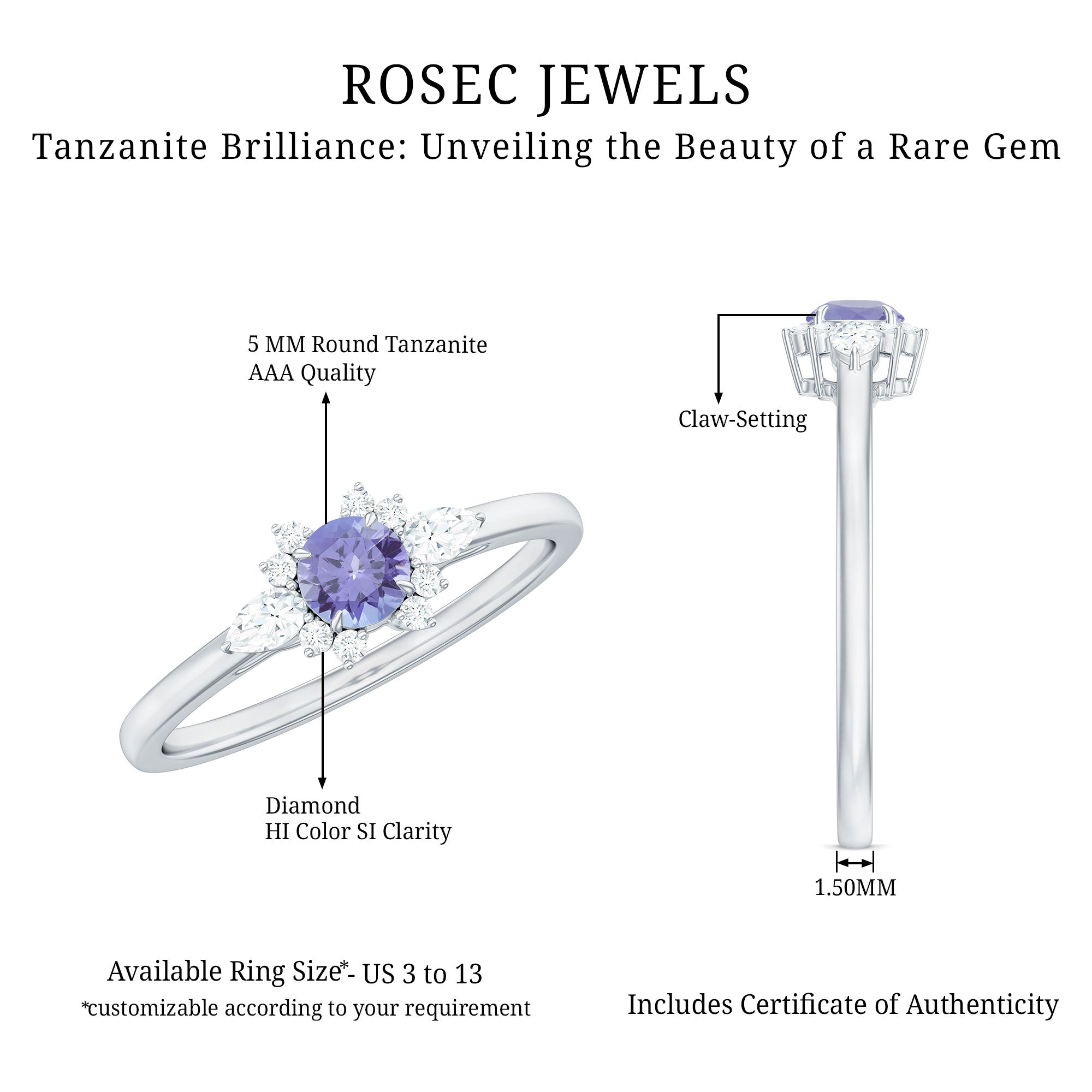 - Carat : Le poids en carats des bijoux en tanzanite se situe généralement entre 0.25 à 4 CT.