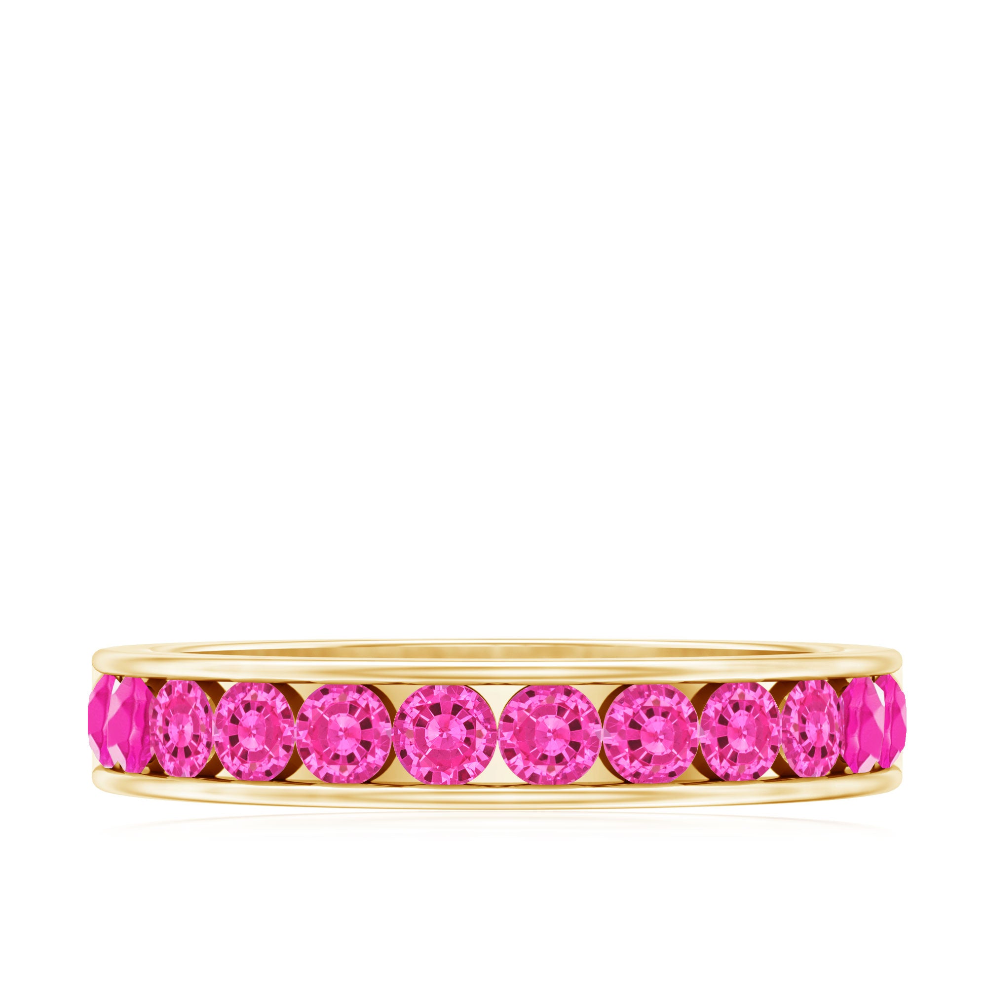 Popular settings for lab created pink sapphire rings are prong for maximum sparkle, bezel, channel, bar for maximum protection, and halo for endless brilliance.