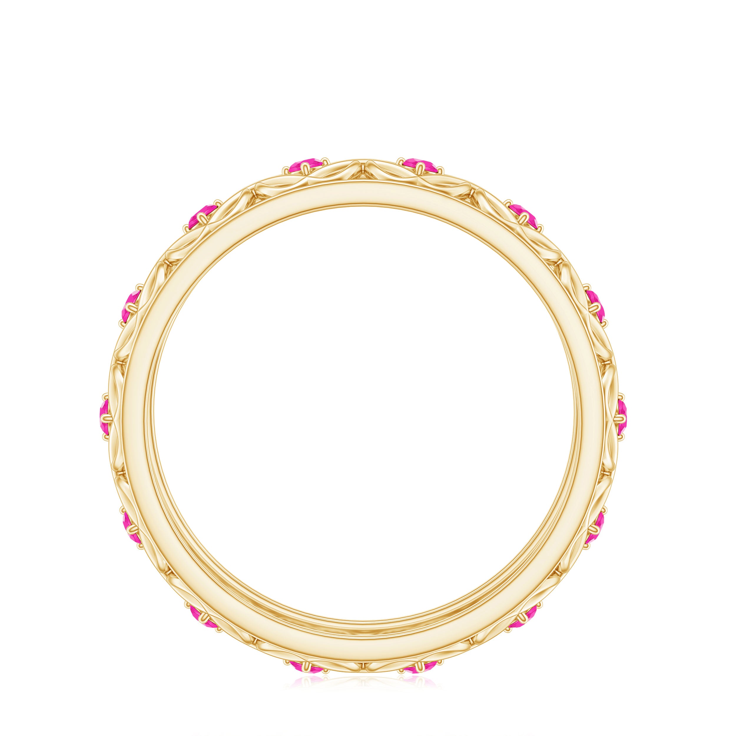 • Impressive rank of lab grown pink sapphires on Moh’s scale of hardness reflects their strong and durable nature. These qualities make lab pink sapphire rings a good choice as an everyday wear accessory.