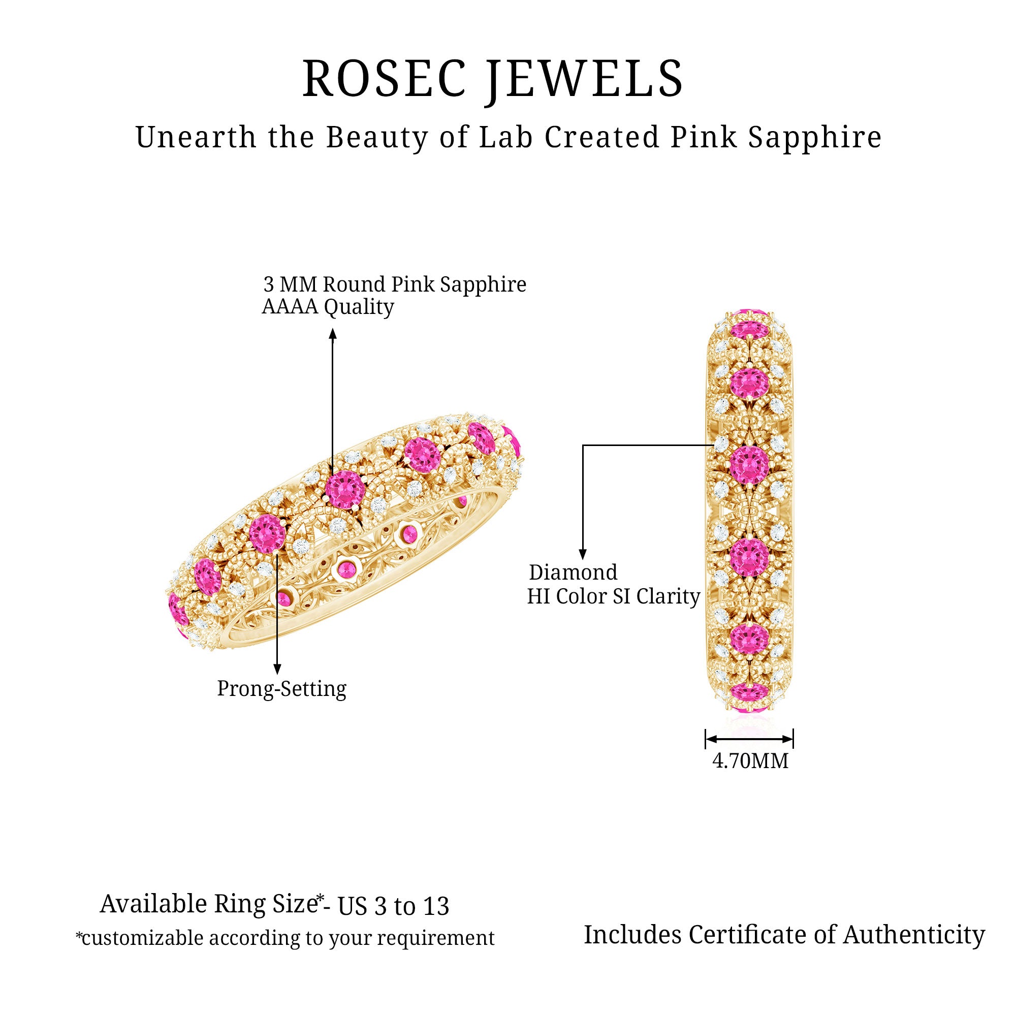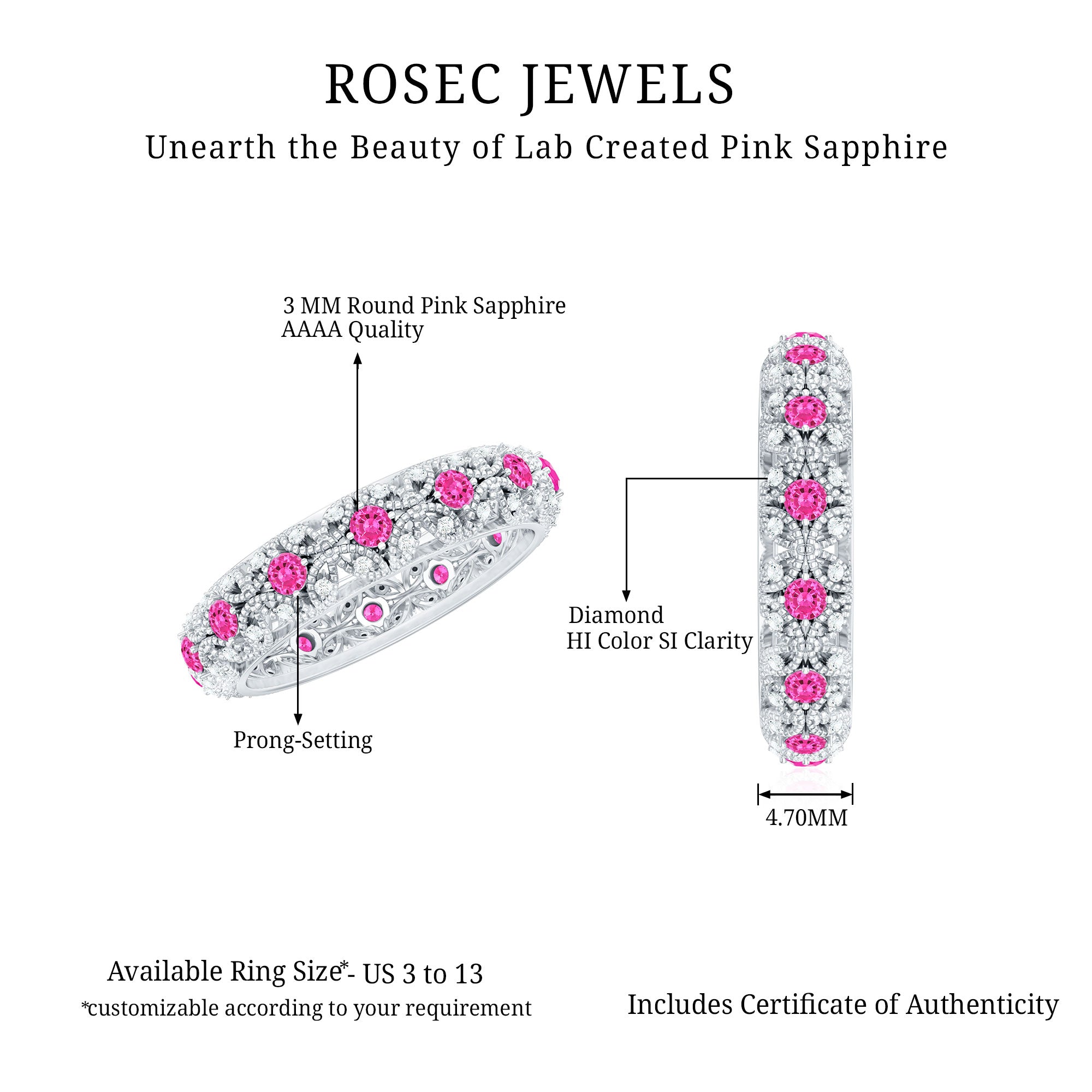 If you are in doubt that these rings are for a certain age group or for a certain occasion, then you are totally wrong. Rosec jewels lab grown pink sapphire rings are handcrafted to turn your everyday into a special day.