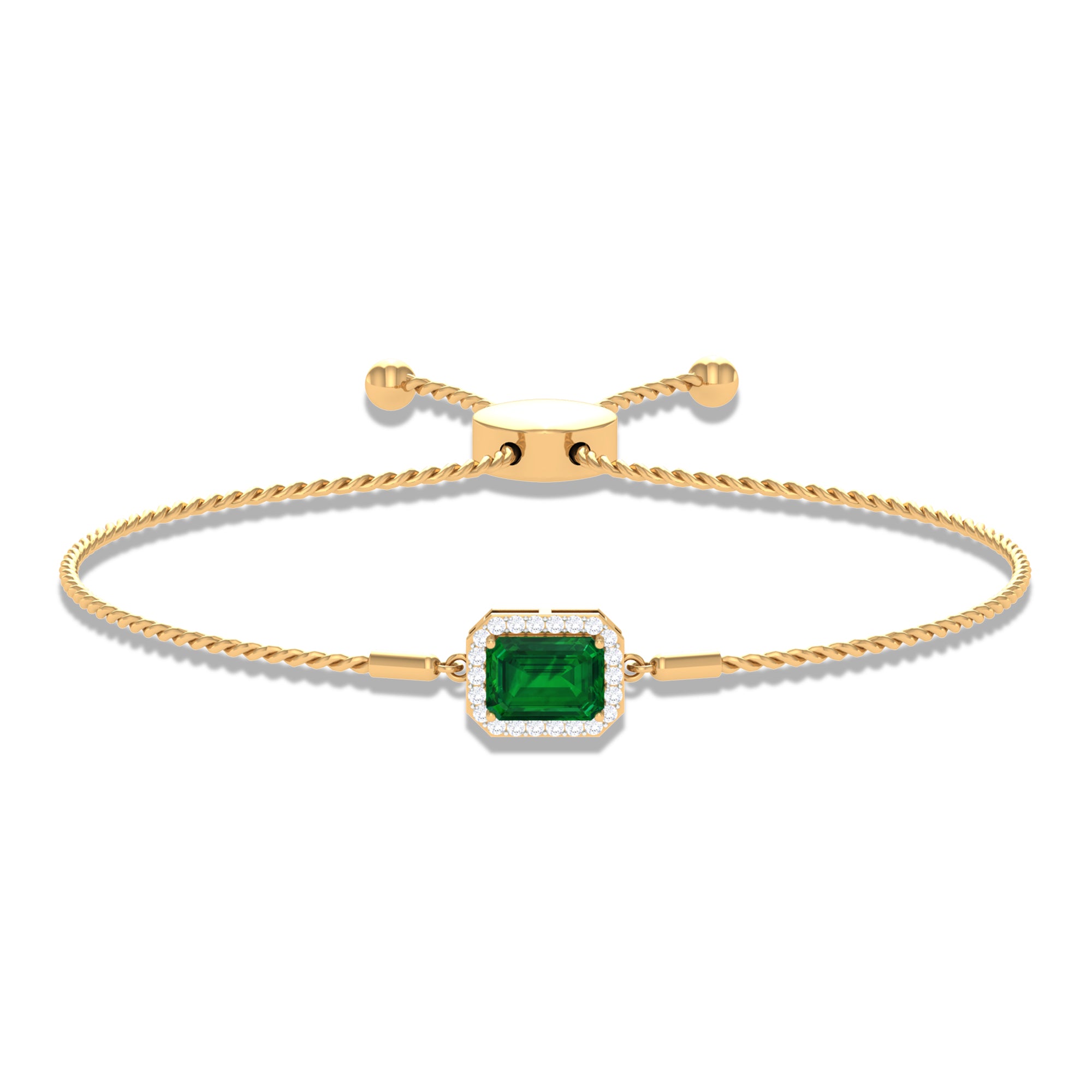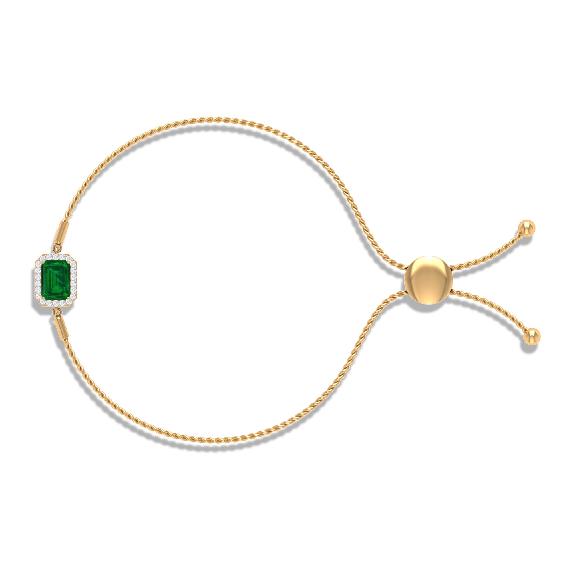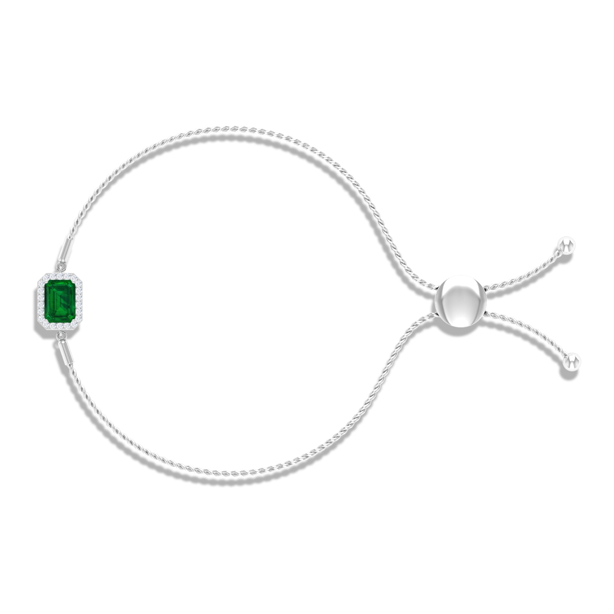 Rehaussez votre beauté avec ce bracelet chaîne Bolo en or massif orné d'émeraudes synthétiques de taille octogonale serties de griffes et d'accents de zircon. Ce superbe bijou rehaussera à coup sûr votre charme et votre sophistication.