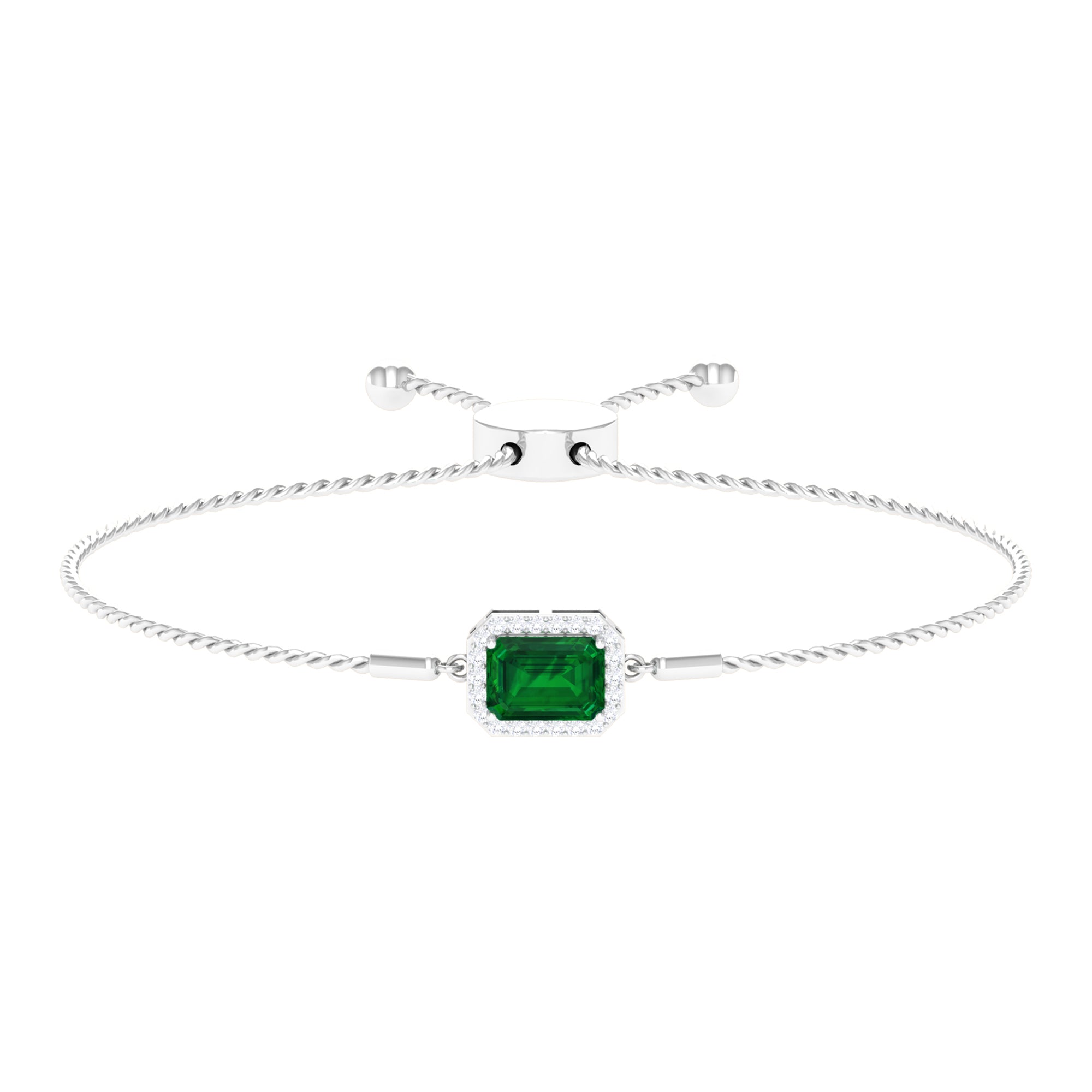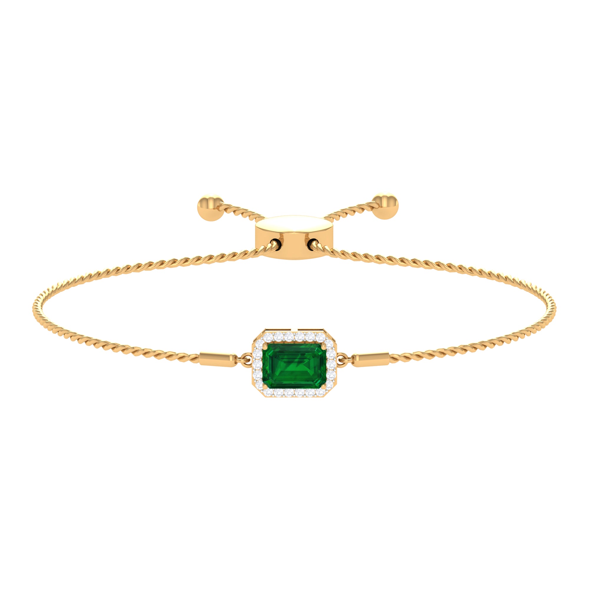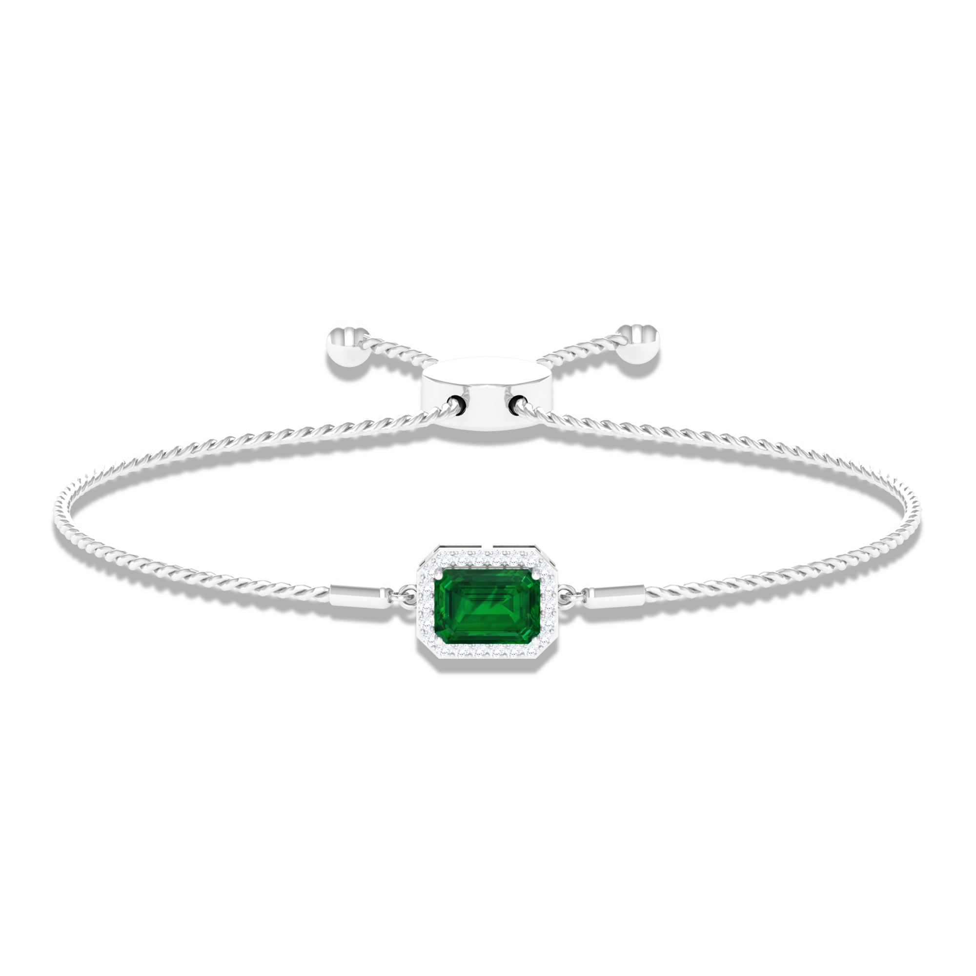 Rehaussez votre beauté avec ce bracelet chaîne Bolo en or massif orné d'émeraudes synthétiques de taille octogonale serties de griffes et d'accents de zircon. Ce superbe bijou rehaussera à coup sûr votre charme et votre sophistication.
