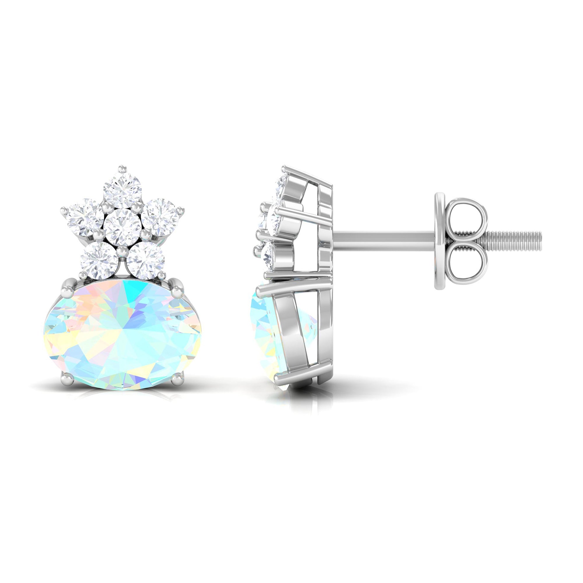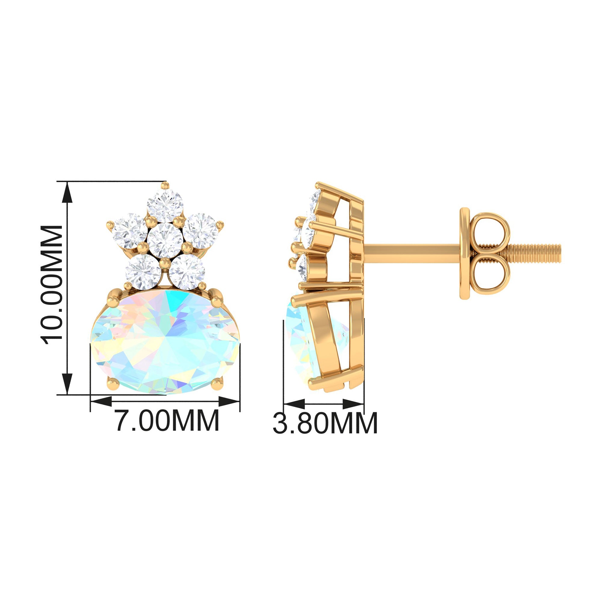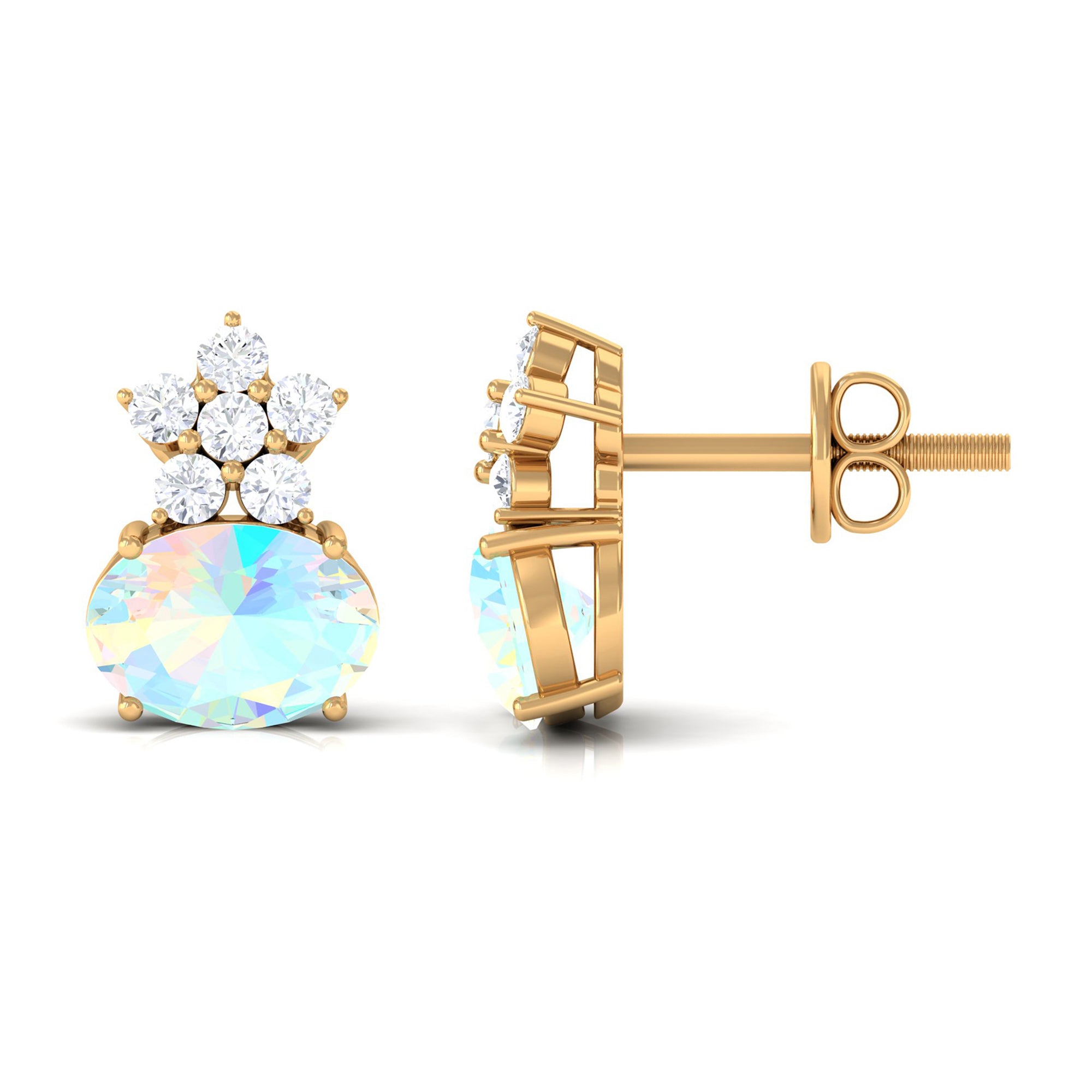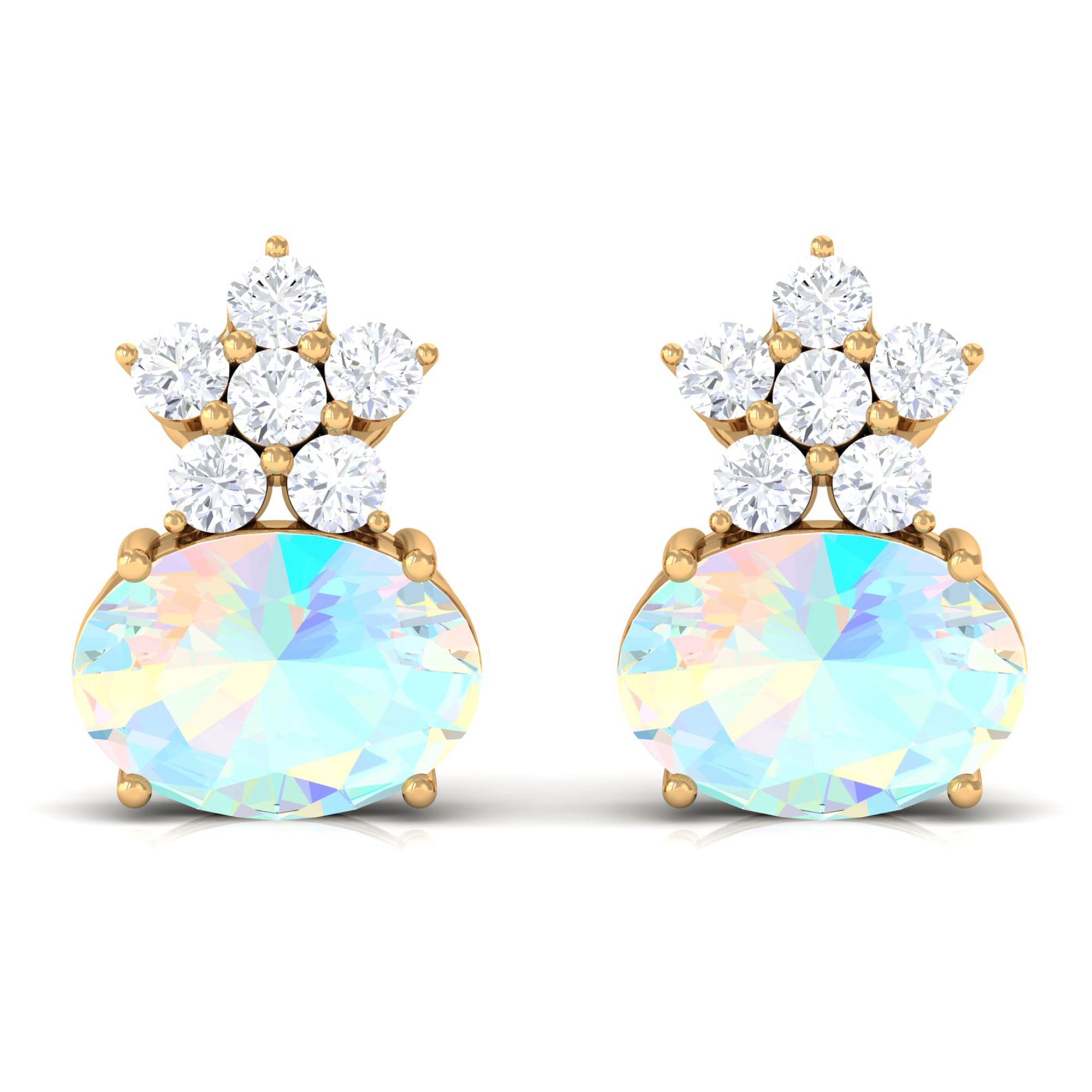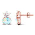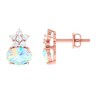 Boucles d'oreilles à tige minimales en opale éthiopienne ovale de 2,25 ct avec accent de diamant floral