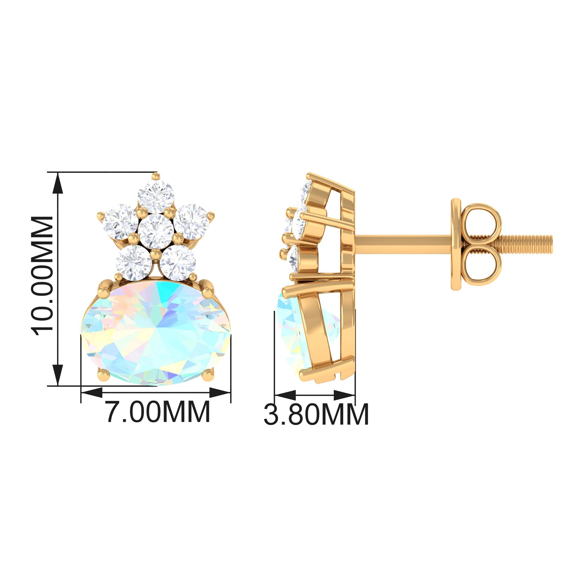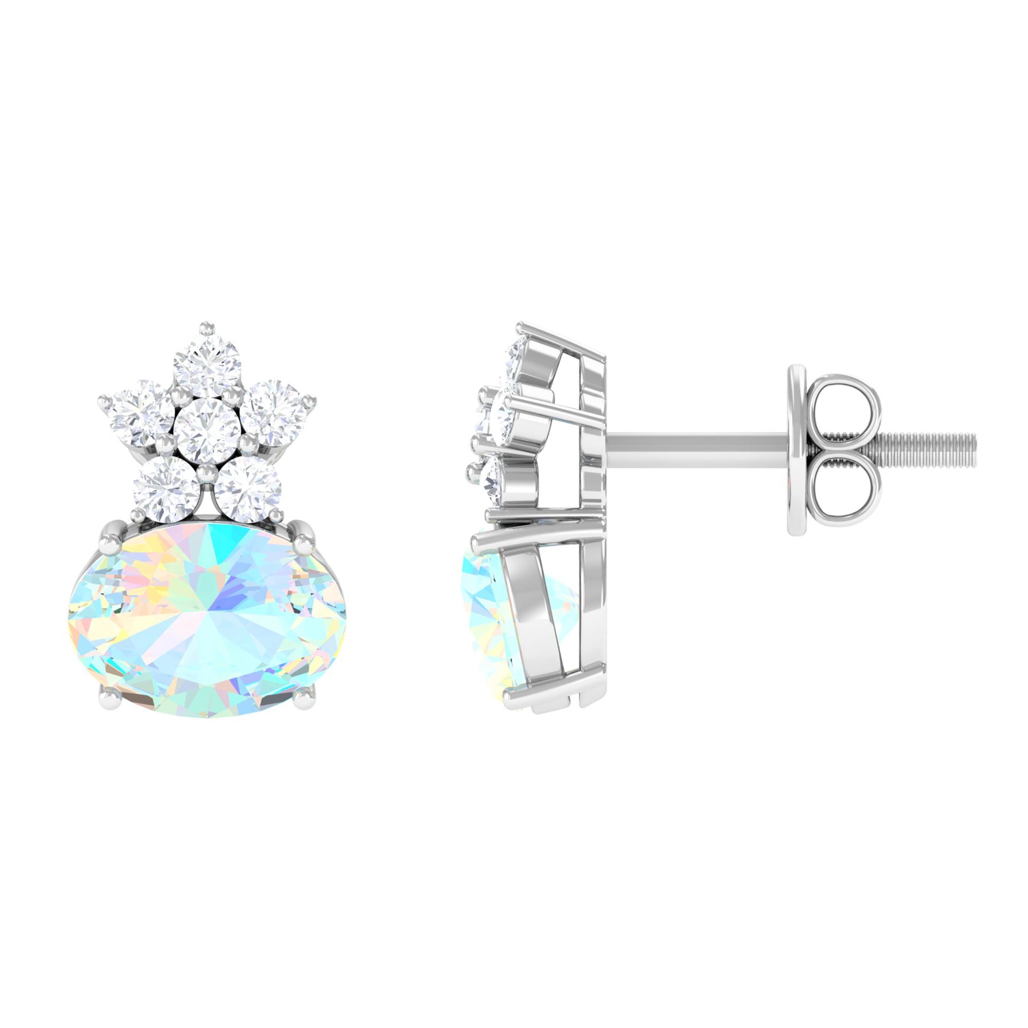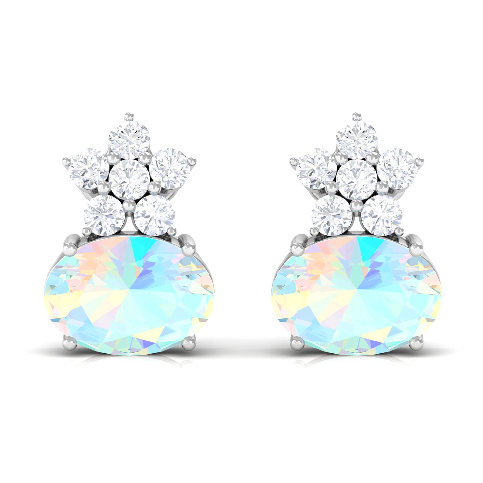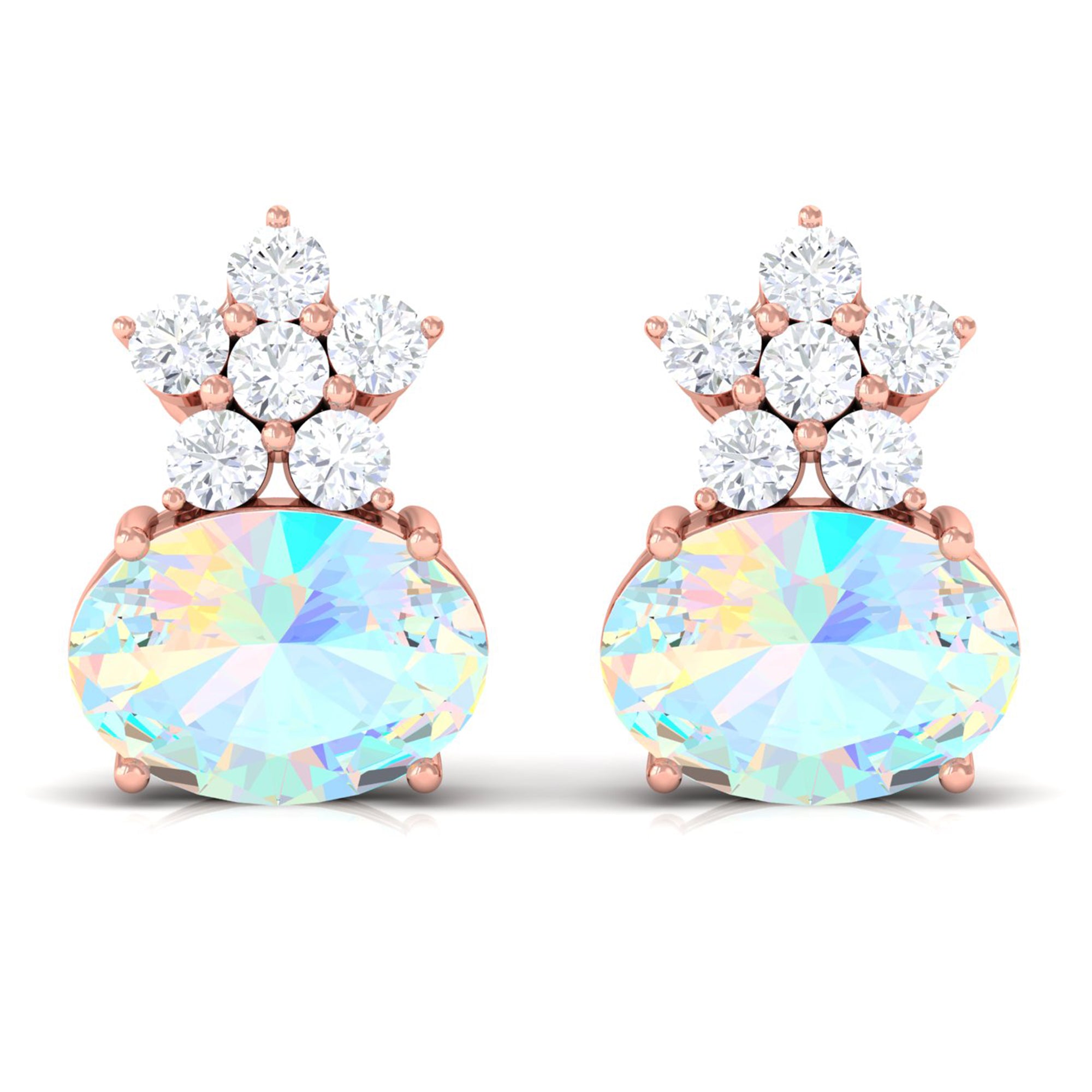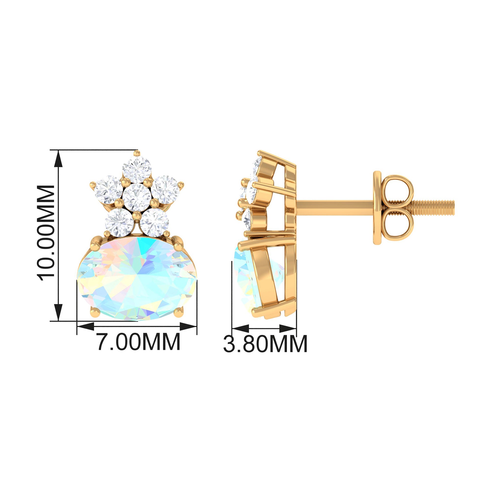 Boucles d'oreilles à tige minimales en opale éthiopienne ovale de 2,25 ct avec accent de diamant floral