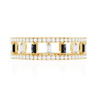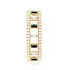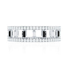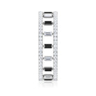 Découvrez l'idéal d'une alliance parfaite avec notre captivante alliance. Cet anneau d'éternité présente une alternance de pierres de spinelle noire et de moissanite en forme de baguette, créant un contraste saisissant et harmonieux. Nos artisans qualifiés ont rehaussé l'attrait de ce modèle en ajoutant des accents de moissanite de taille ronde, ce qui en fait un symbole d'élégance et de style éternels.
