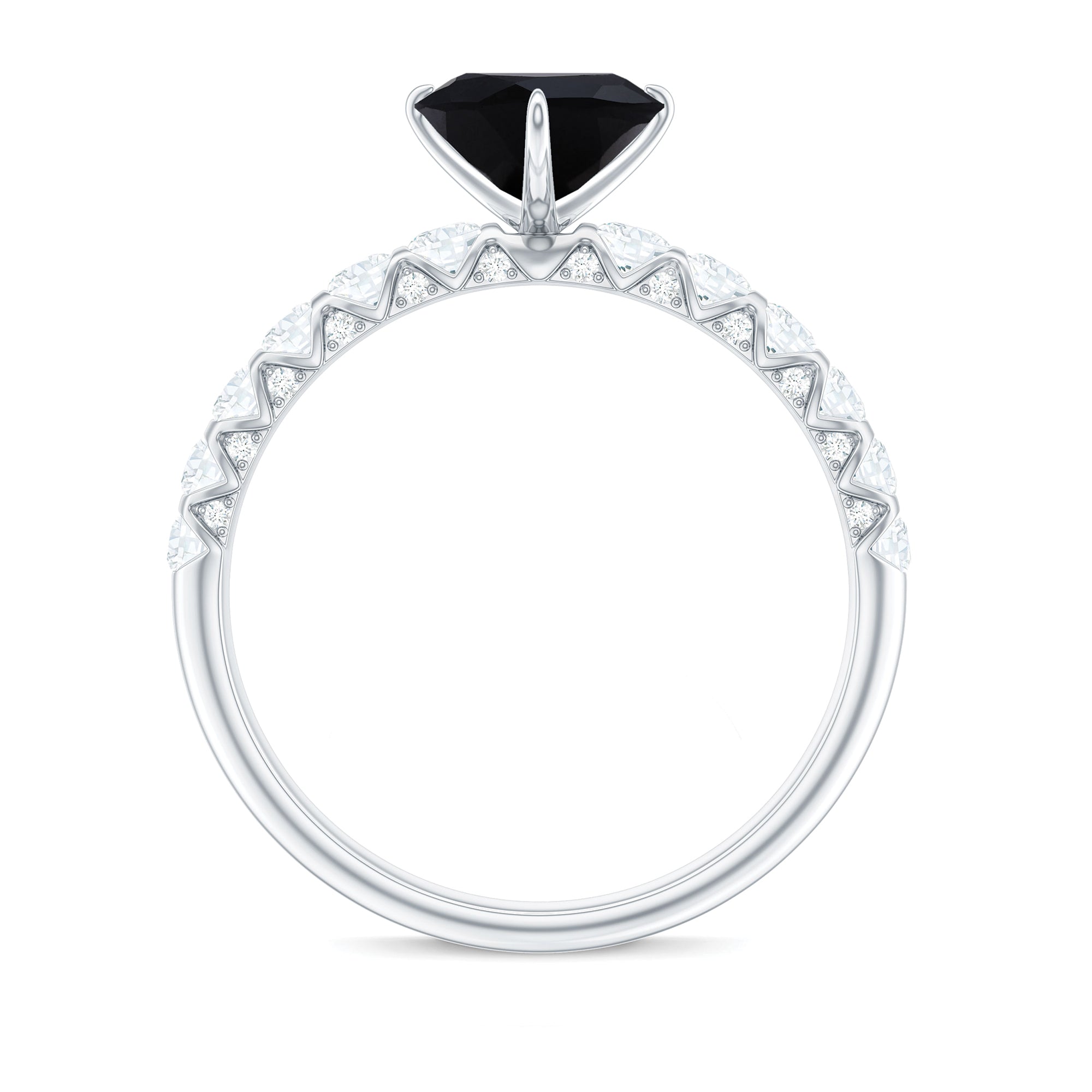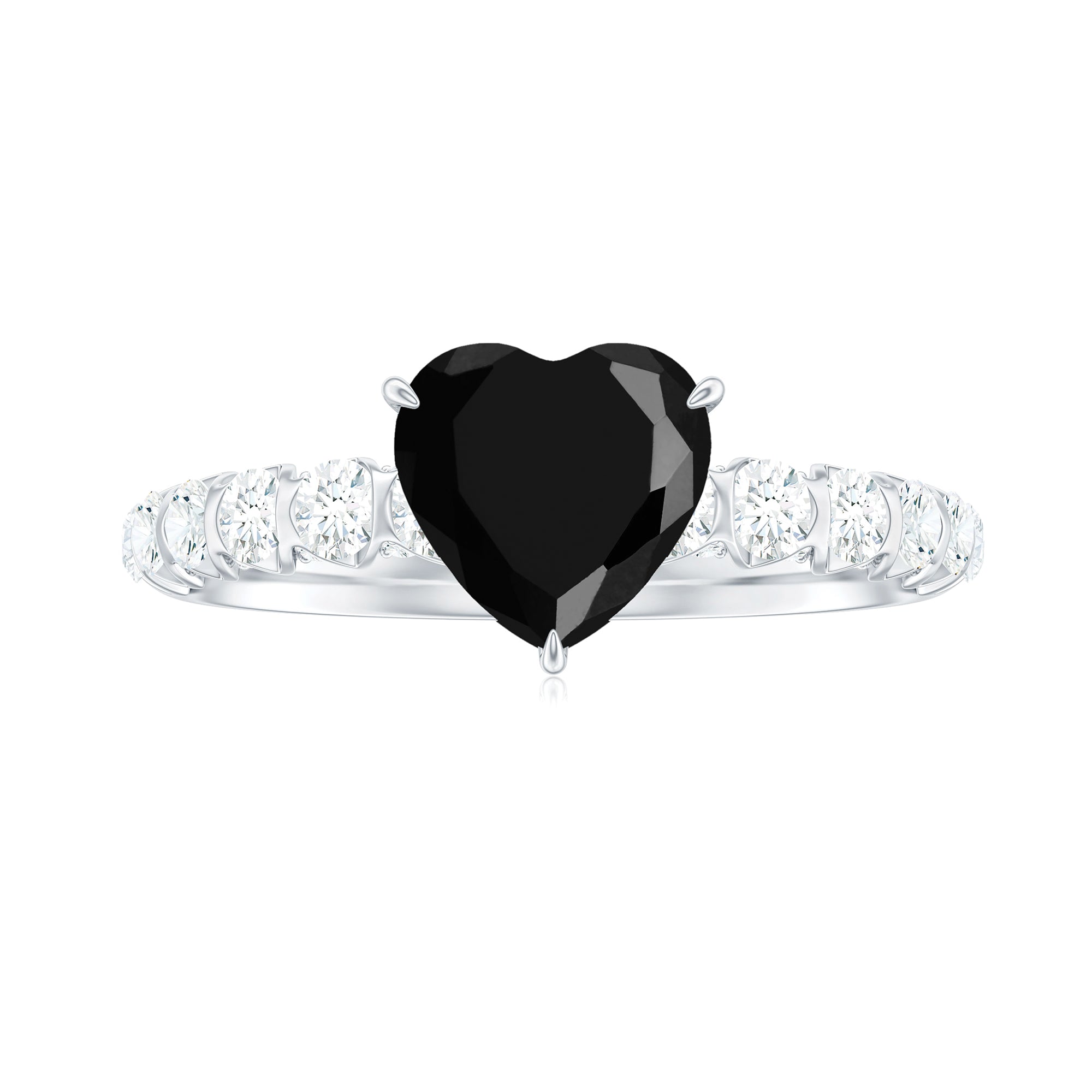 Bague de fiançailles solitaire spinelle noire en forme de cœur avec diamant