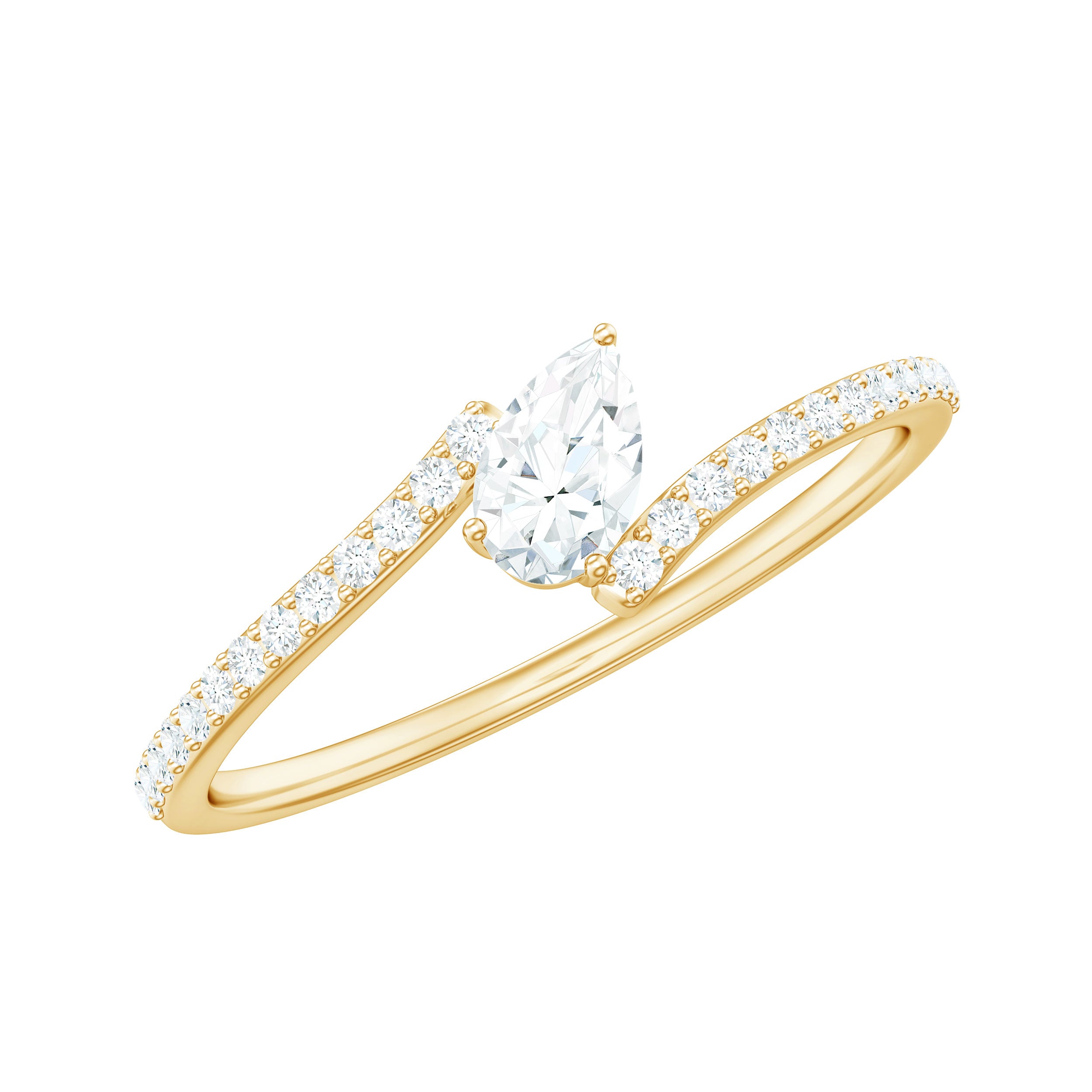 Obtenez cette magnifique bague Bypass qui présente un diamant en forme de poire intitulé fixé par un serti à griffes et un délicat diamant de forme ronde clouté sur sa tige Bypass. La bague solitaire est livrée dans notre boîte à bijoux Signature prête à offrir, c'est un choix parfait pour un cadeau d'anniversaire, un cadeau d'anniversaire et un cadeau de Saint-Valentin pour votre bien-aimé.