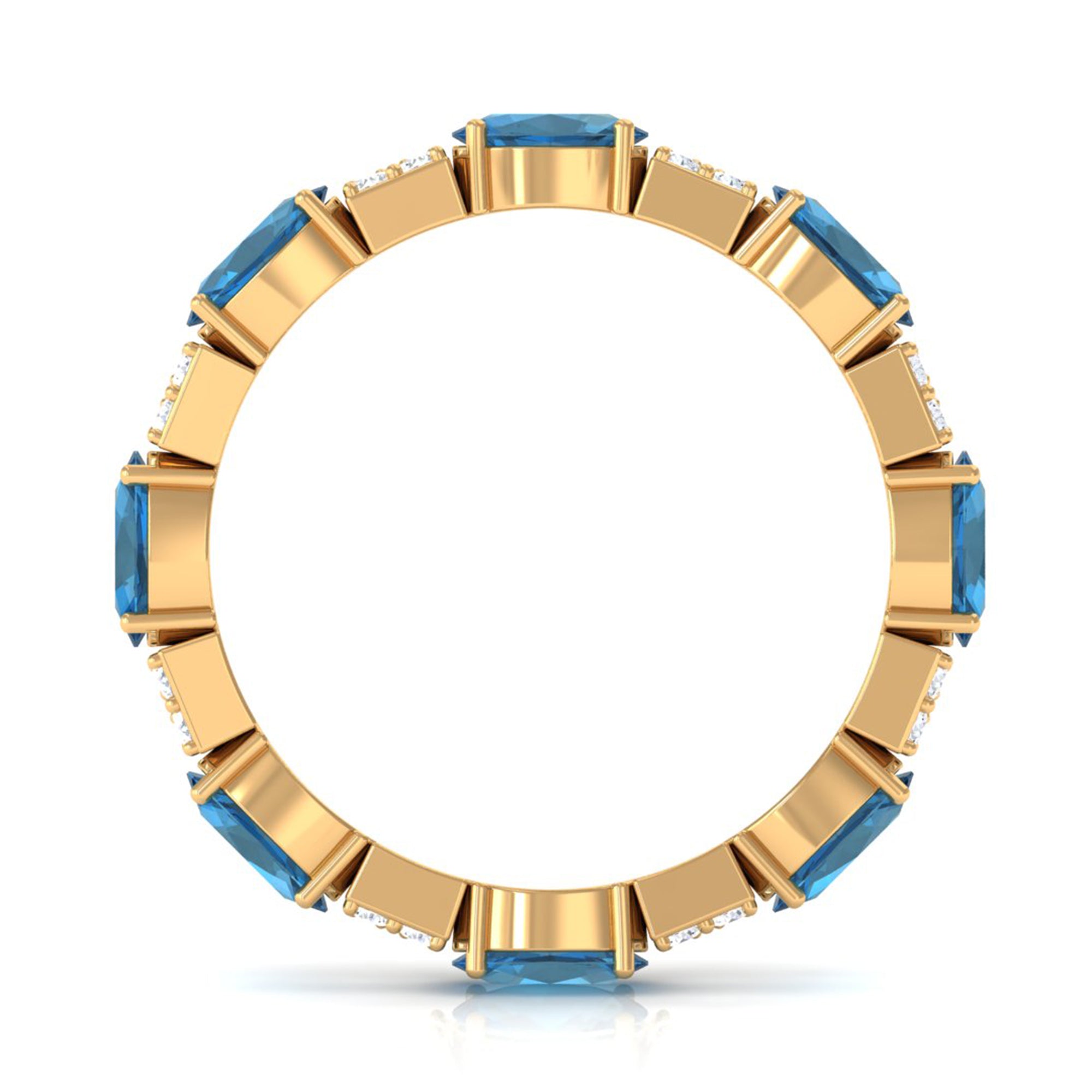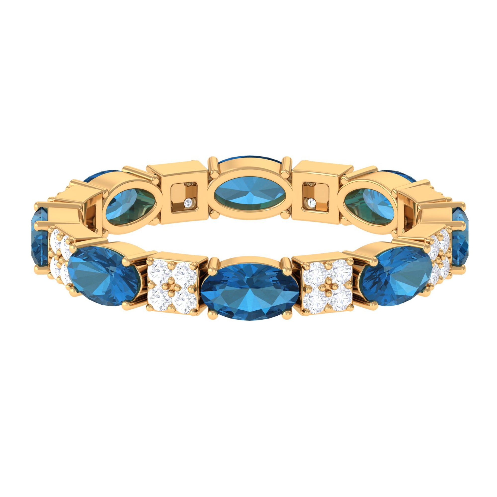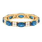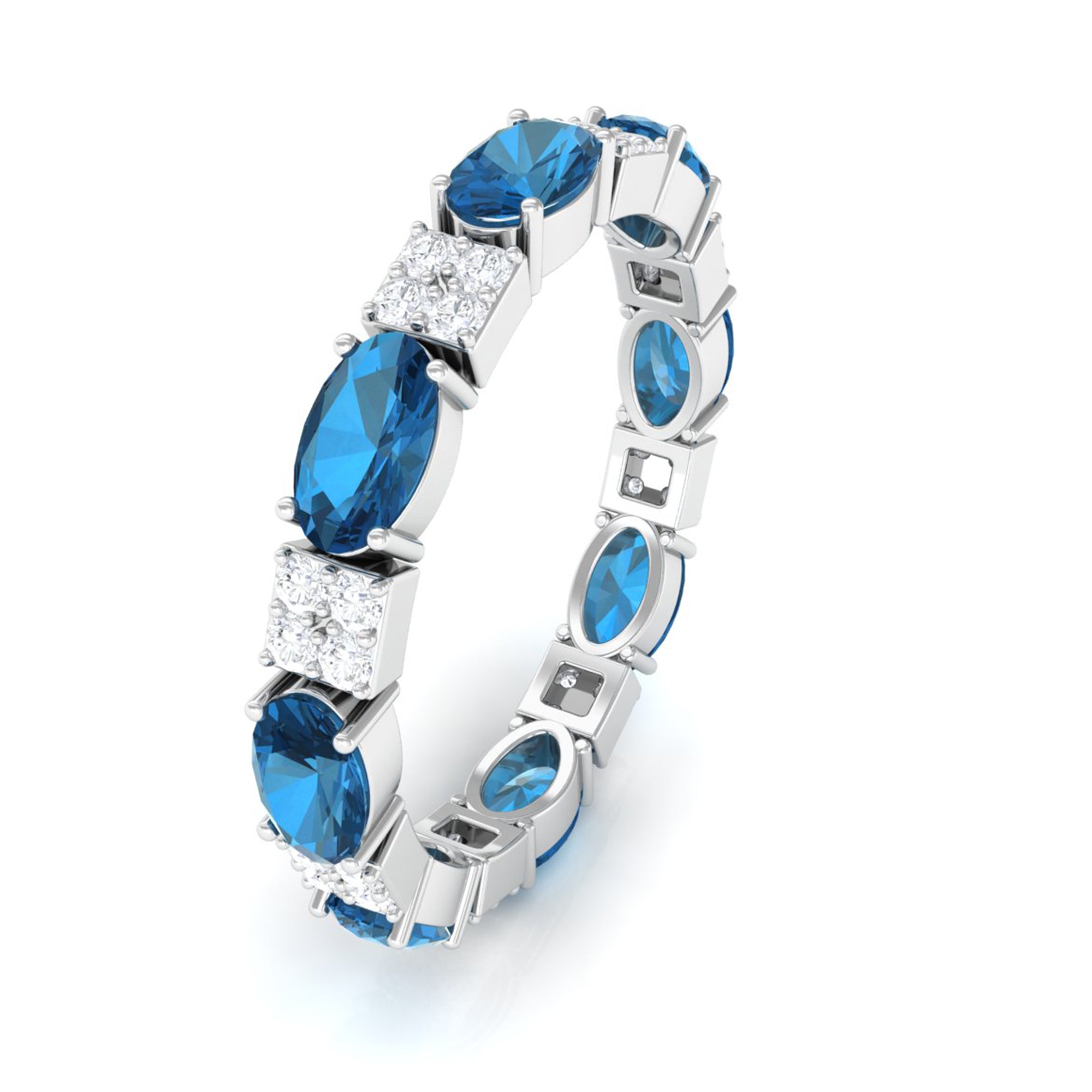 Rehaussez votre style avec cette captivante bague d'éternité avec topaze bleue de Londres. Il comporte des pierres de topaze bleue de Londres de taille ovale dans un sertissage à griffes sécurisé, accompagné d'un diamant scintillant qui coule gracieusement autour de l'anneau d'éternité. Cette bague d'éternité complète est parfaite et élégante lorsqu'elle est portée seule, ce qui en fait un ajout intemporel à votre collection de bijoux.