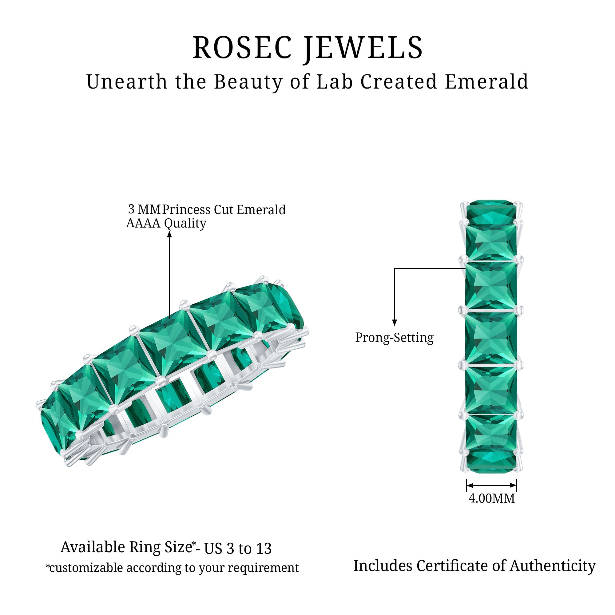 Bague d'éternité avec émeraude cultivée en laboratoire, taille princesse