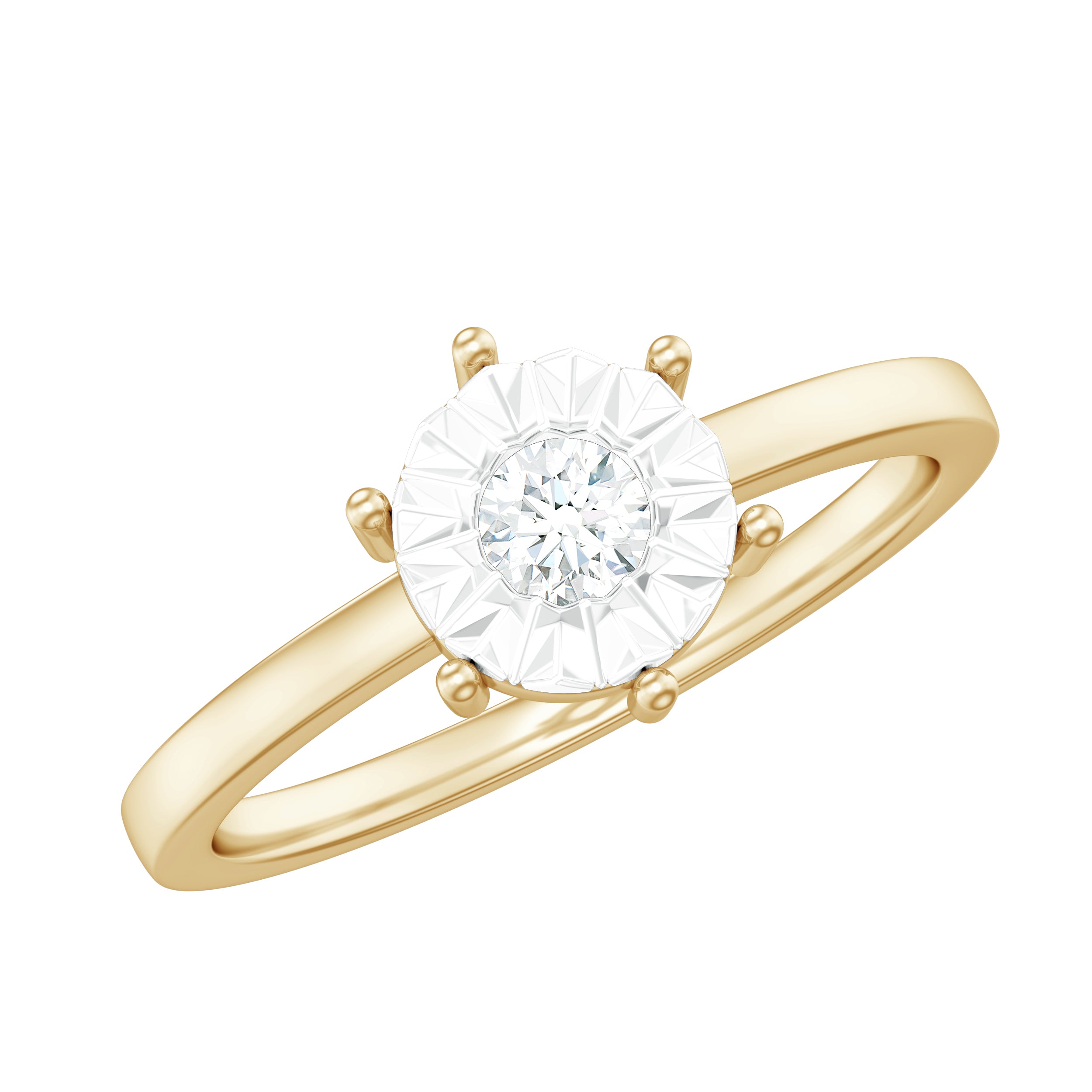 Bague solitaire en diamant véritable taille ronde en serti illusion