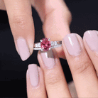 Bague solitaire tourmaline rose ovale sertie de moissanite