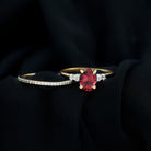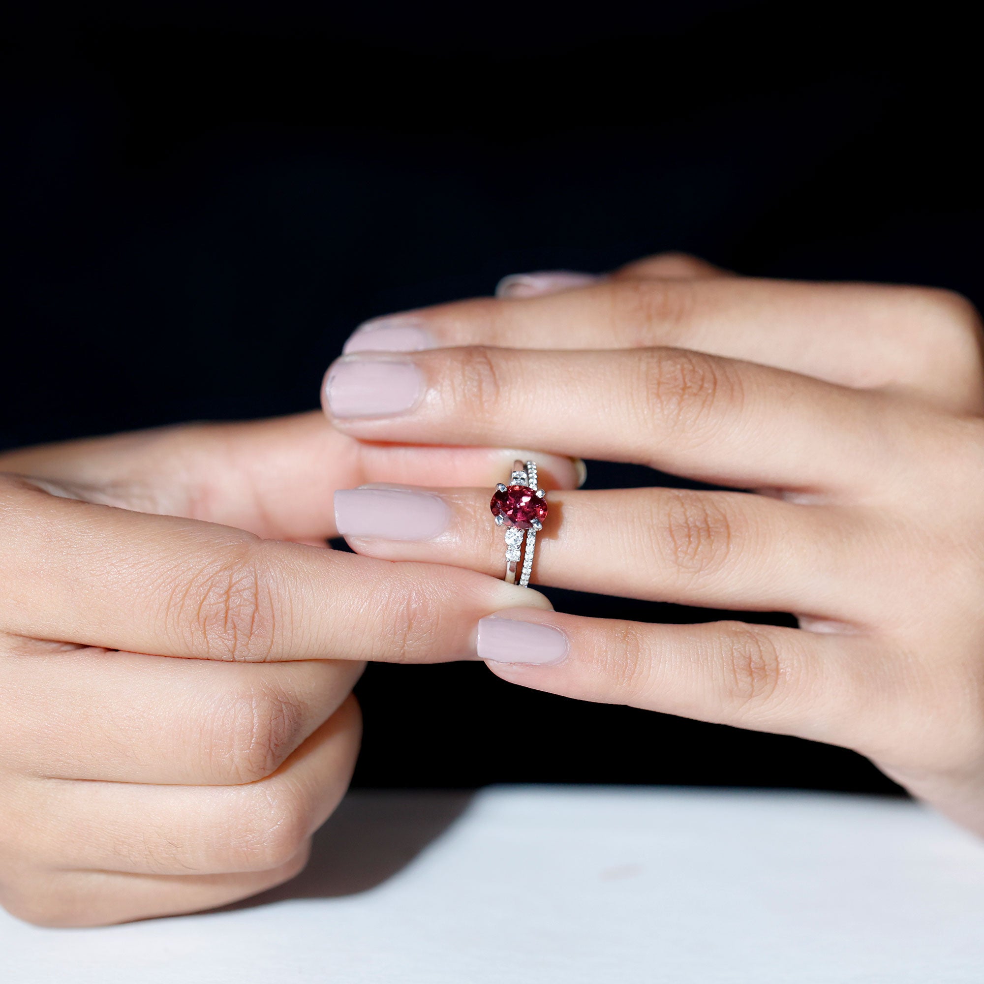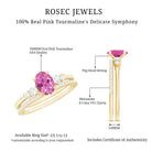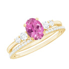Procurez-vous ce séduisant ensemble de bagues solitaire et engagez-vous à tenir une promesse de soins, de rire et d'amour pour toute la vie. Décoré d'une tourmaline rose de taille ovale fixée dans un serti à 4 griffes tandis que de délicates moissanites rondes sont clouées sur la tige ainsi que sur l'anneau rehausseur. • Cet ensemble de bagues en tourmaline rose brillera davantage lors de votre journée spéciale. Renforcez votre lien en lui offrant cet ensemble de bagues comme symbole d'amour.