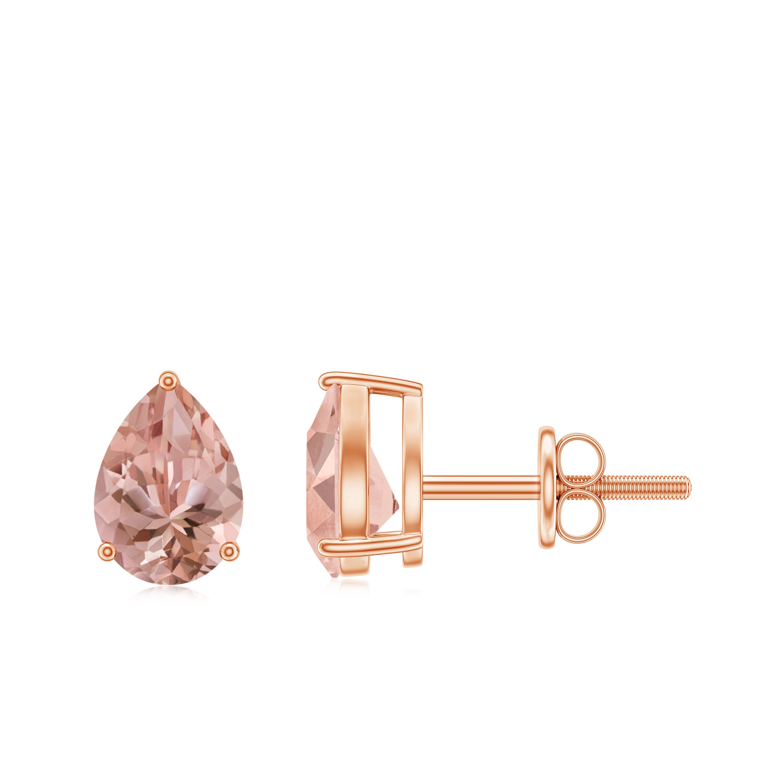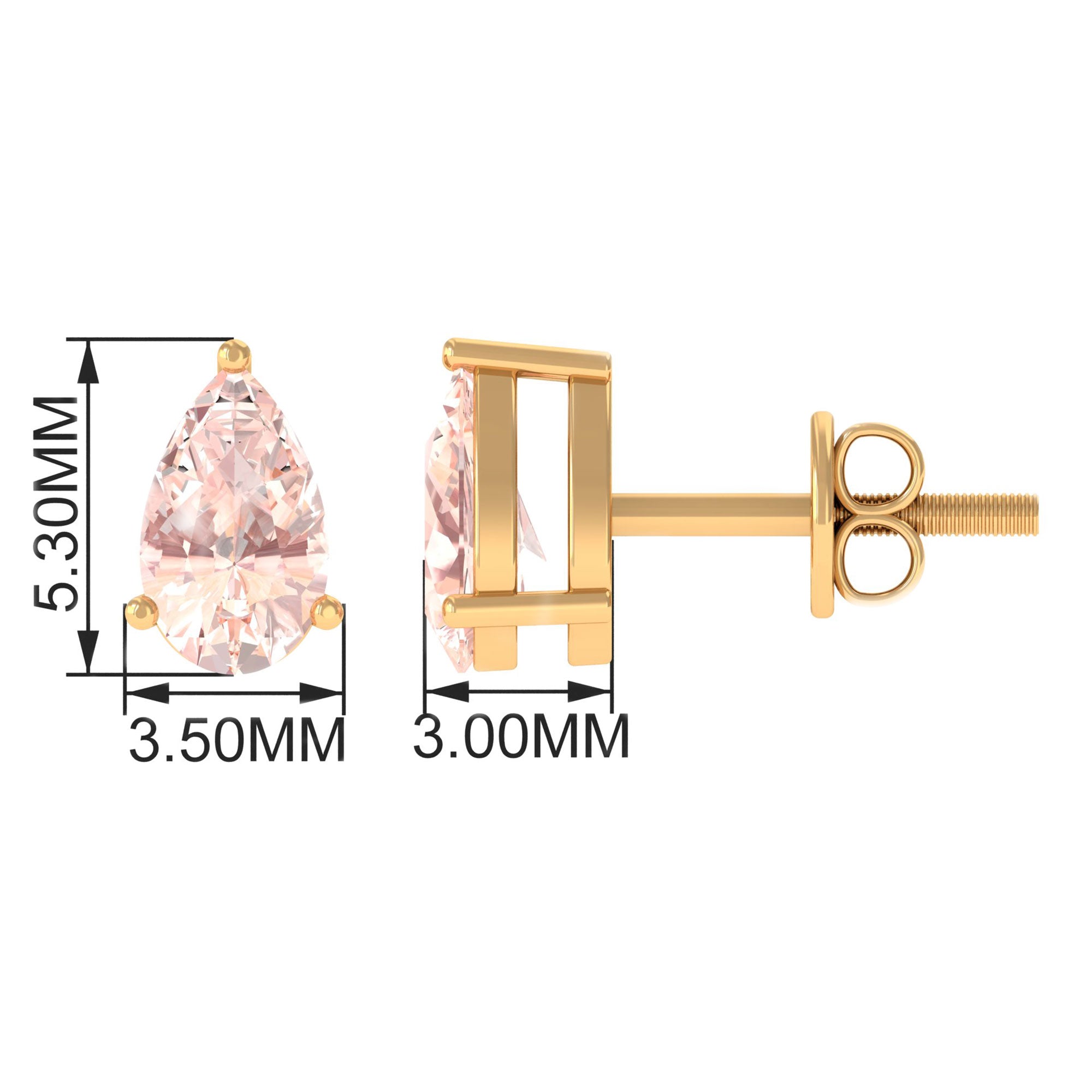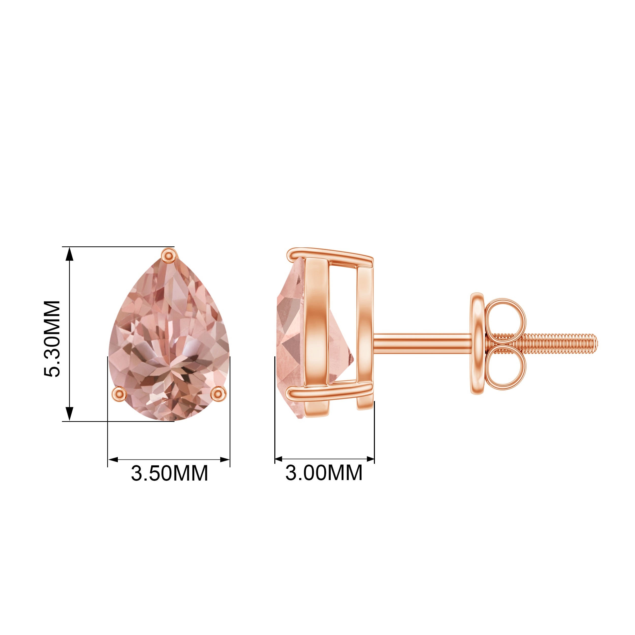 Boucles d'oreilles à tige solitaire morganite taille poire 5 x 7 mm en serti 3 griffes