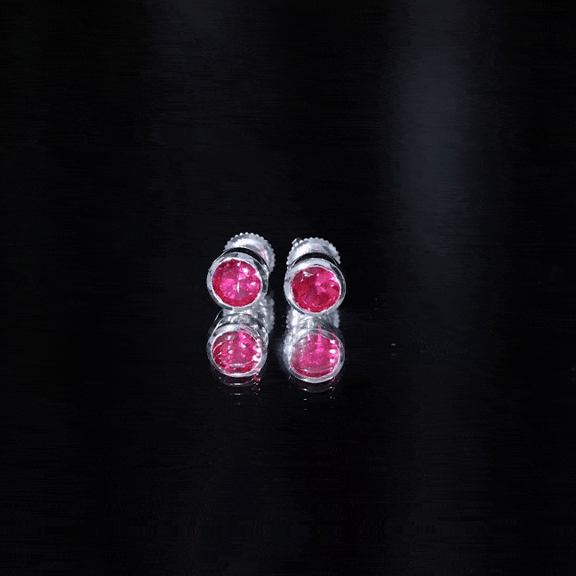 Aucun ensemble n'est complet sans l'ajout de ces boucles d'oreilles essentielles. Ces boucles d'oreilles présentent un rubis de forme ronde créé en laboratoire élégamment serti dans un serti clos, accompagné d'une fermeture à vis sécurisée. La teinte rouge vif du clou ajoute une touche de sophistication à toute occasion, rehaussant votre apparence générale.
