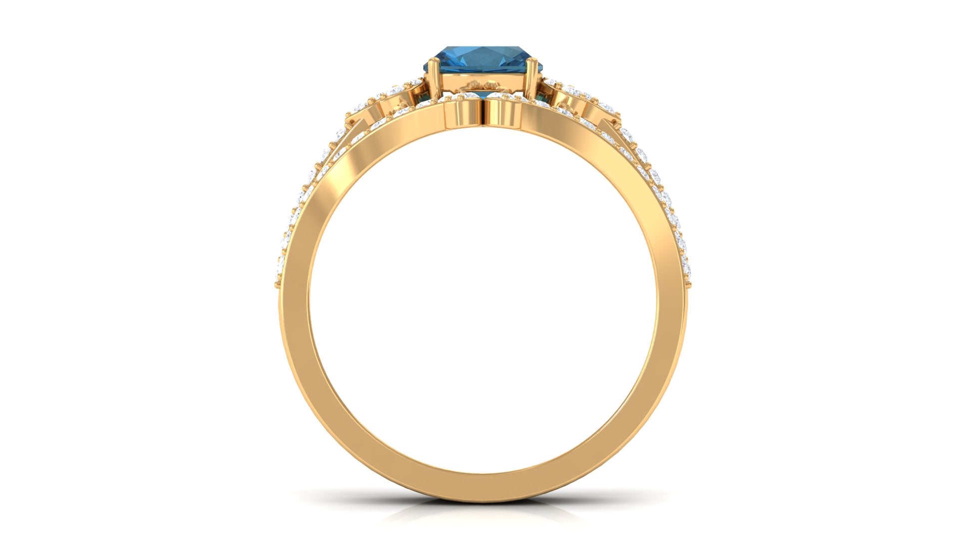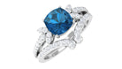 Ensemble de bagues de mariée avec topaze bleue de Londres et diamants taille coussin