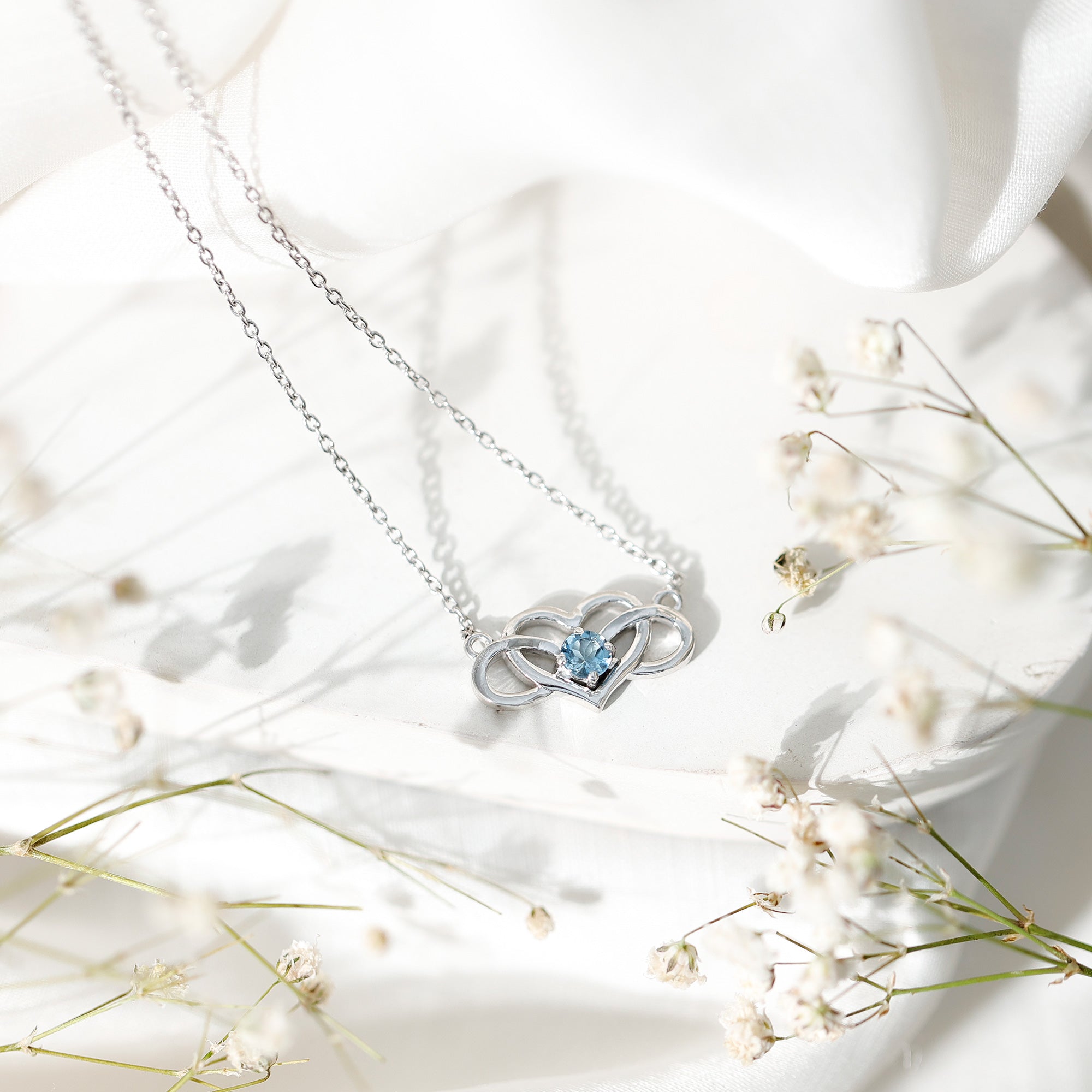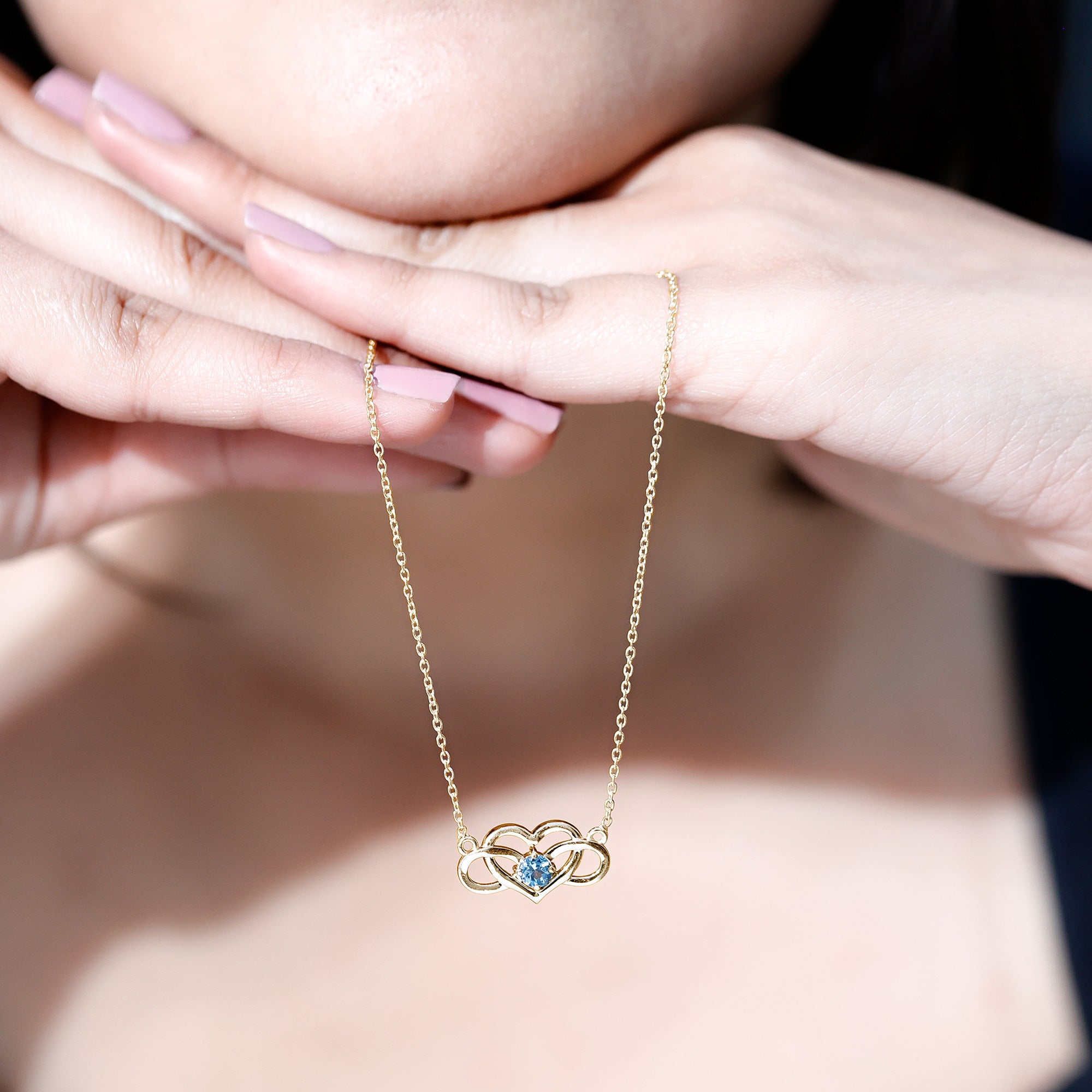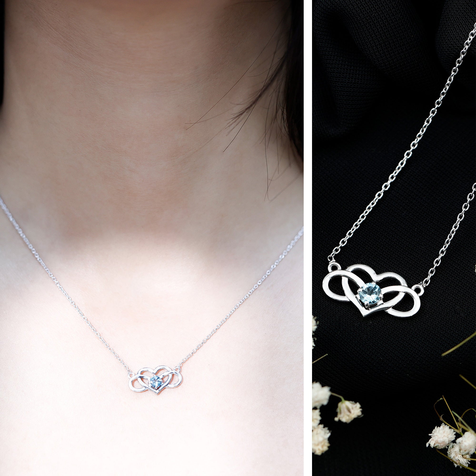 Aquamarijn Infinity ketting : De oneindigheidsvorm, een van de meest expressieve vormen uit het assortiment, en de verfraaiing van Aquamarijn zorgen samen voor een stijlvol, gedurfd en meer benadrukt statement. Ook een mooi blauw cadeau voor je geliefde!