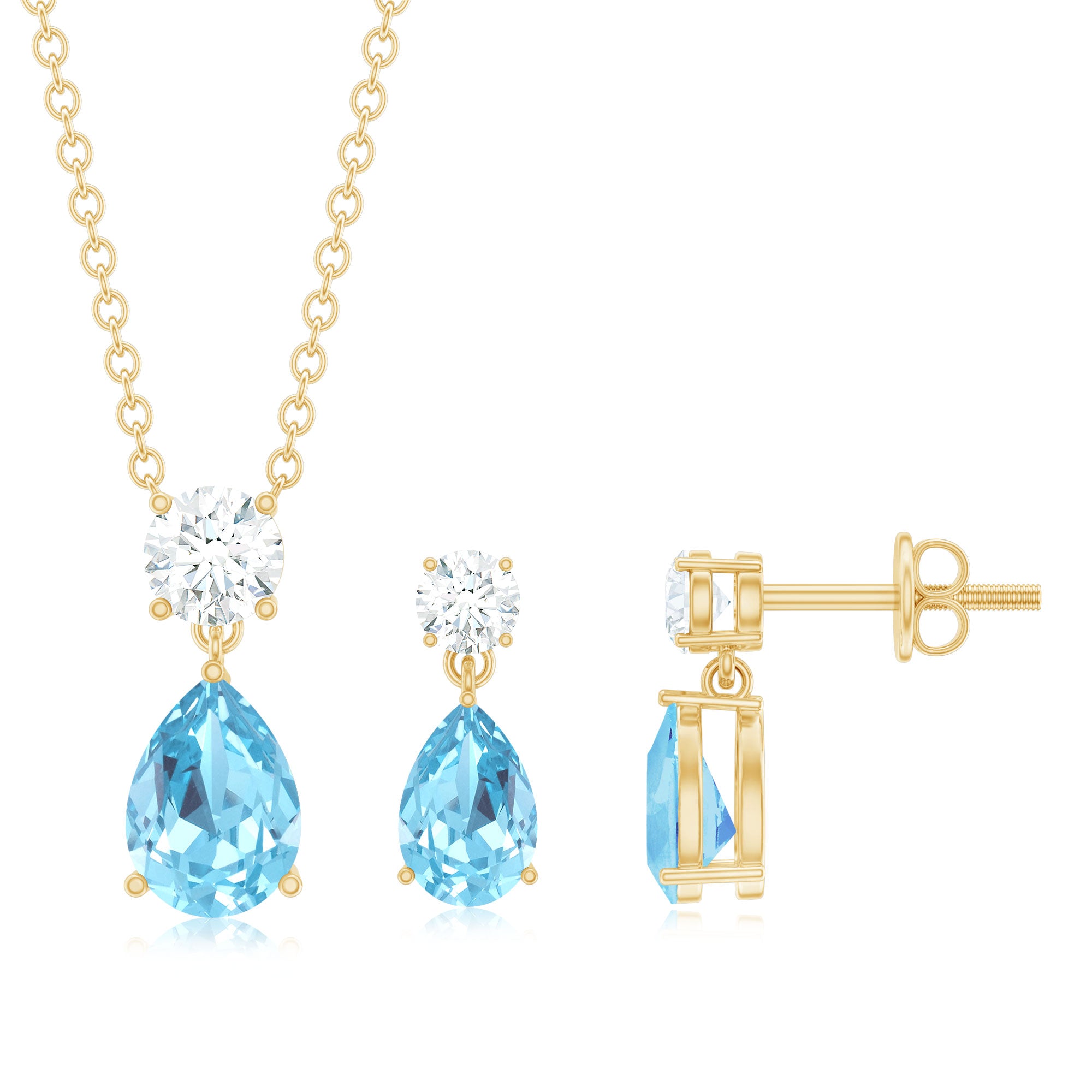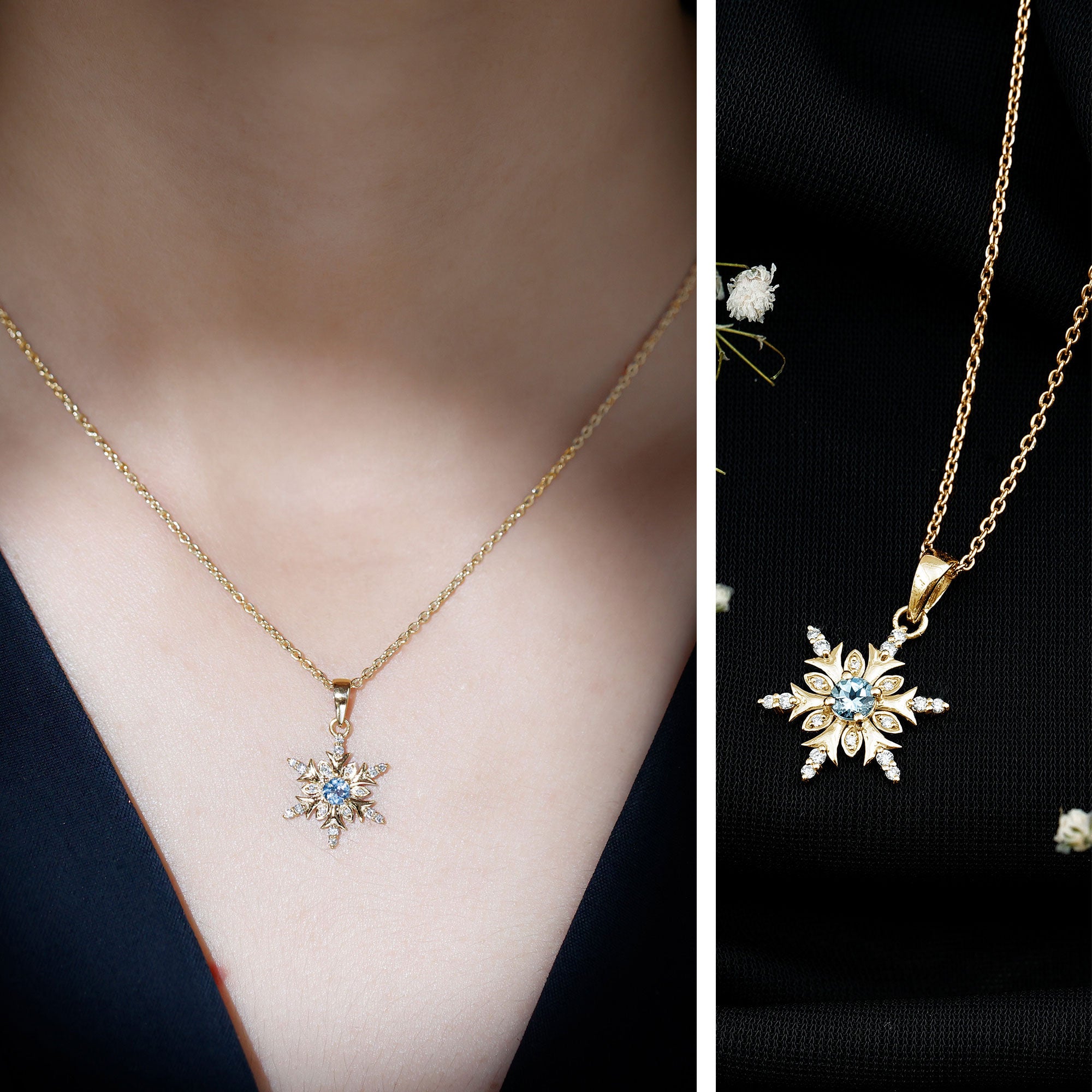 Aquamarijn ketting vervaardigd in massief goud is verkrijgbaar in verschillende kleuropties, waaronder witgoud, geelgoud en roségoud. Terwijl de aquamarijn ketting van wit goud er klassieker uitziet en bijdraagt aan de serene uitstraling van aquamarijn, ziet de aquamarijn ketting van geel goud er luxueuzer en glanzender uit en maakt rosé goud het aantrekkelijker voor vrouwen.