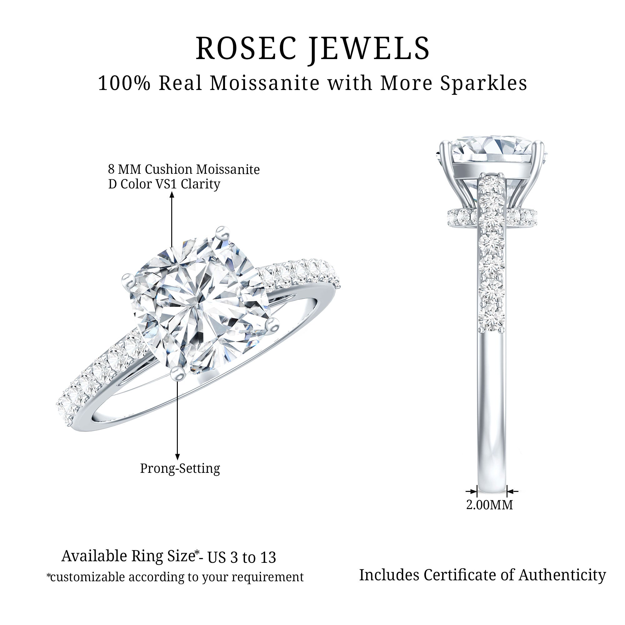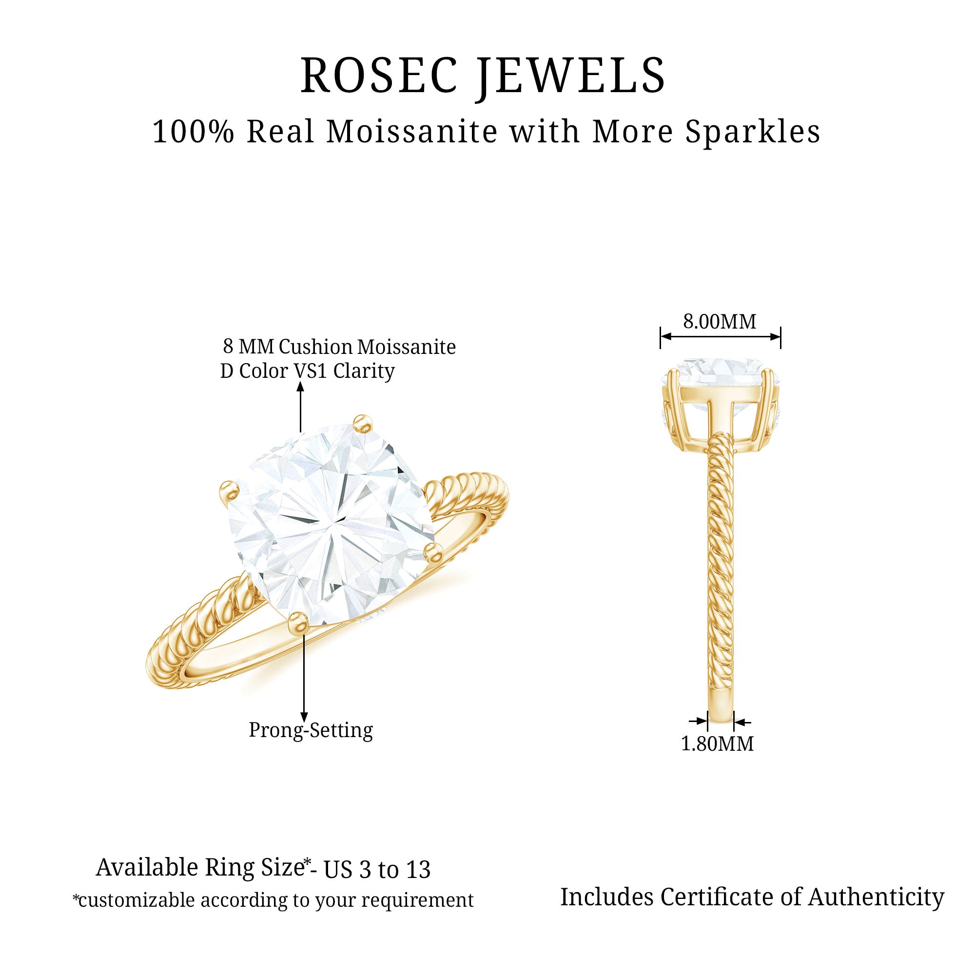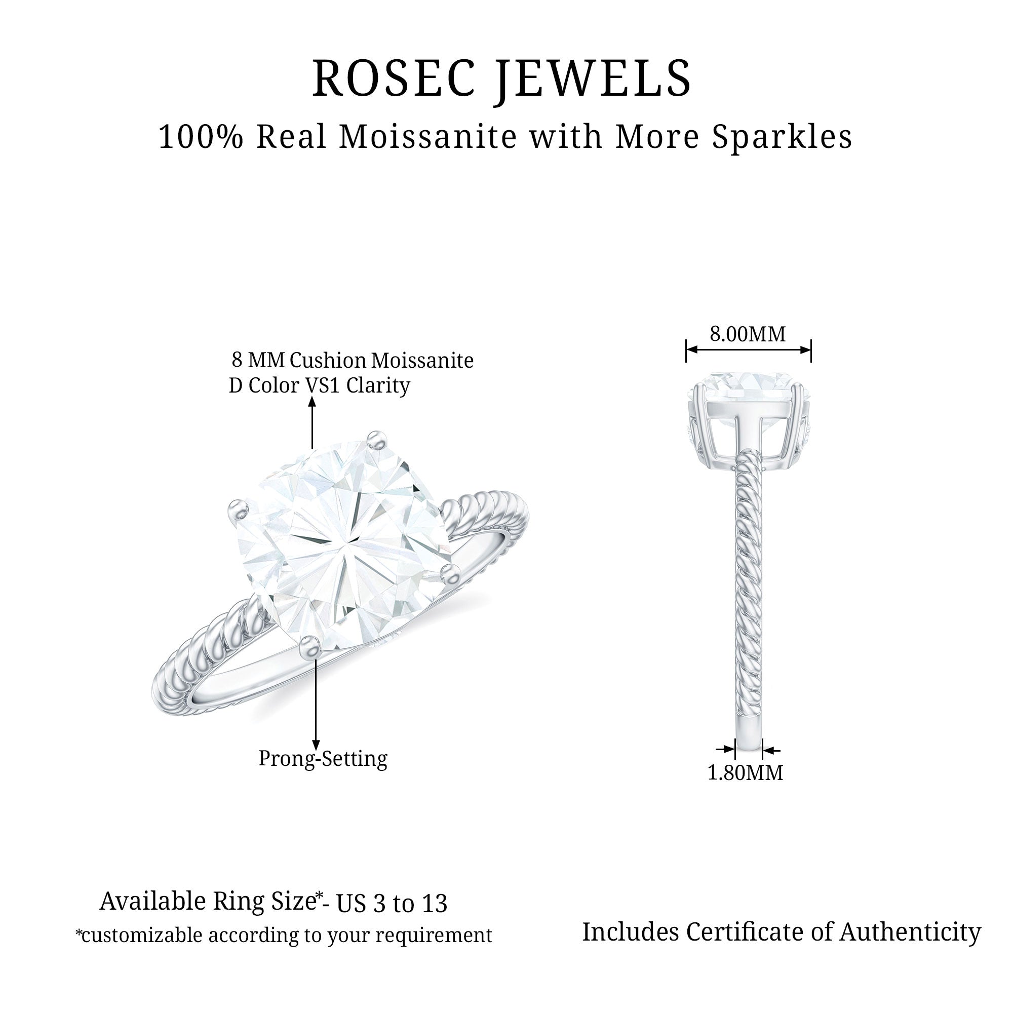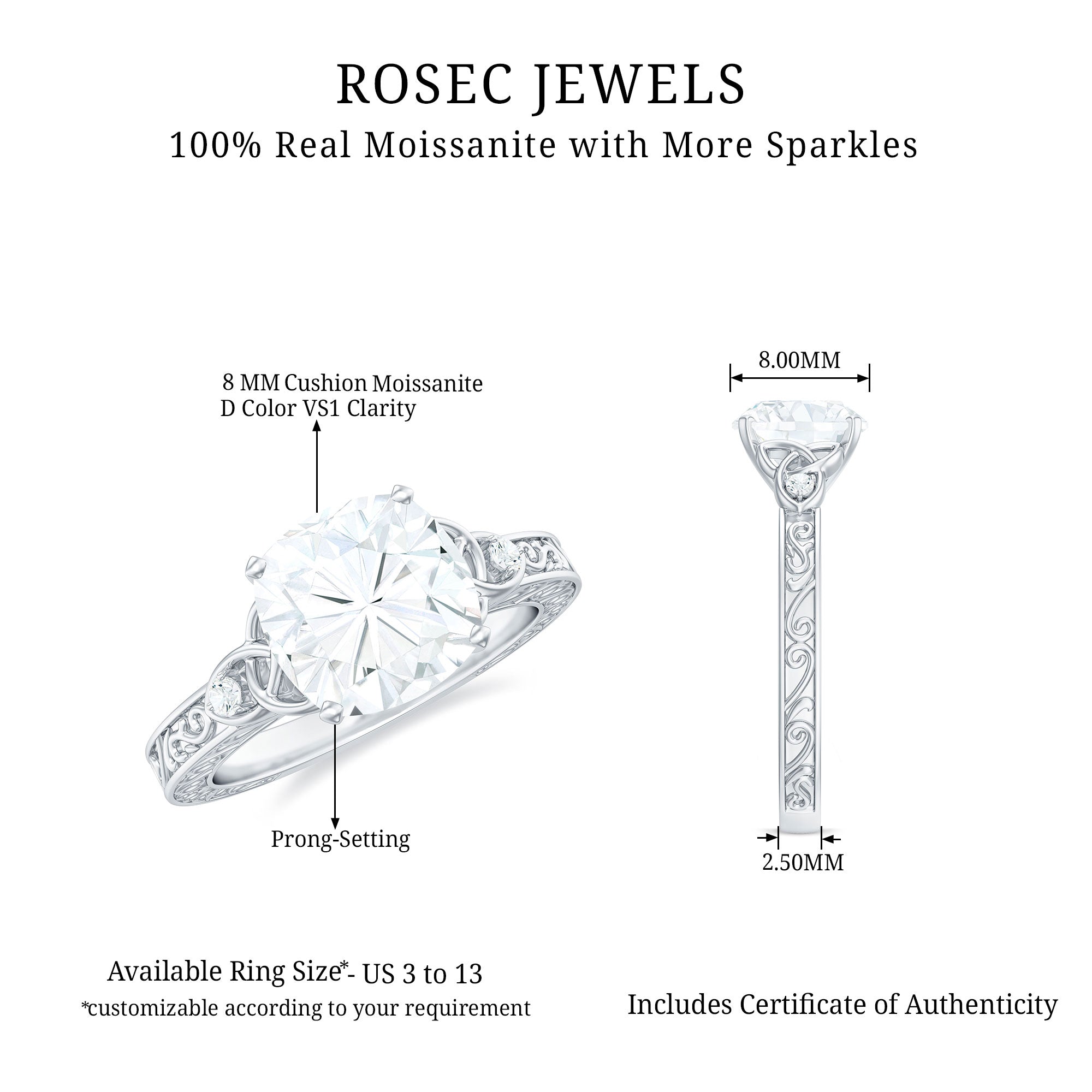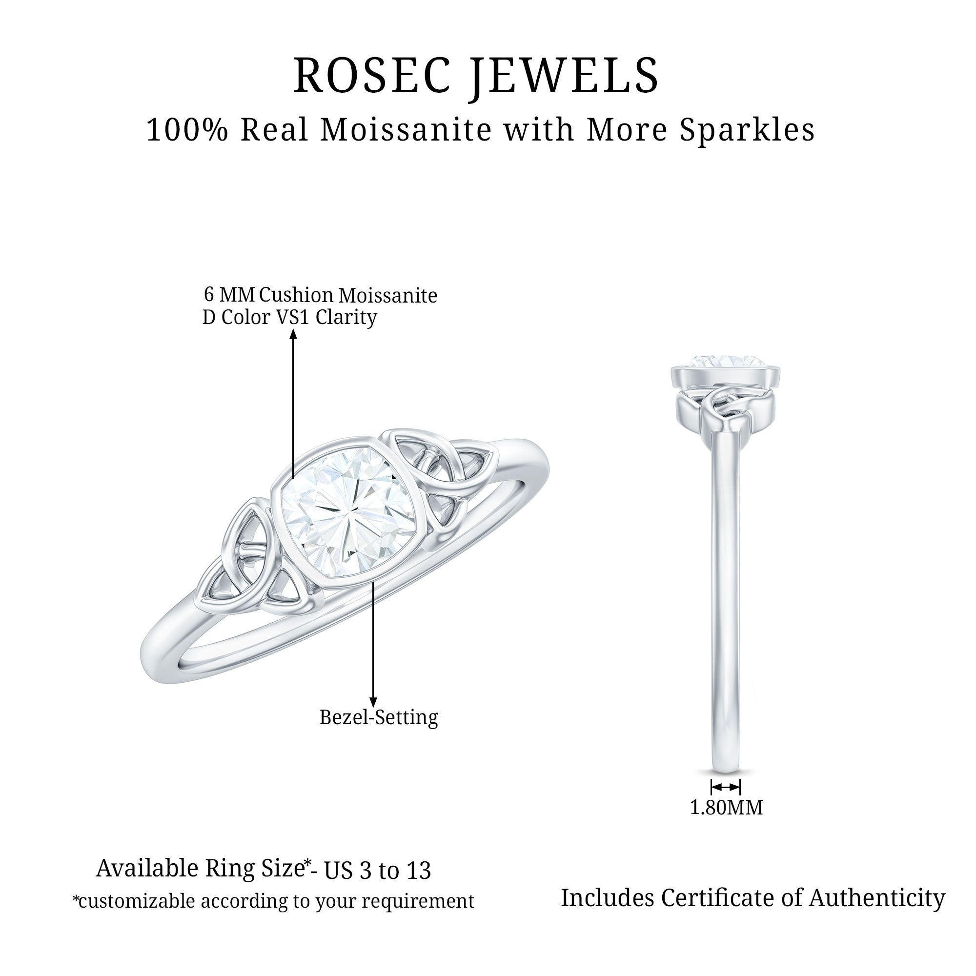 Gemstone with rounded edges is free from the snagging and chipping issues, due to absence of sharp corners. Besides being beautiful, they are a more practical and long lasting choice as day to day wear accessories. Check the moissanite cushion cut engagement rings category to find a durable as well as affordable sparkler for your forever moment.