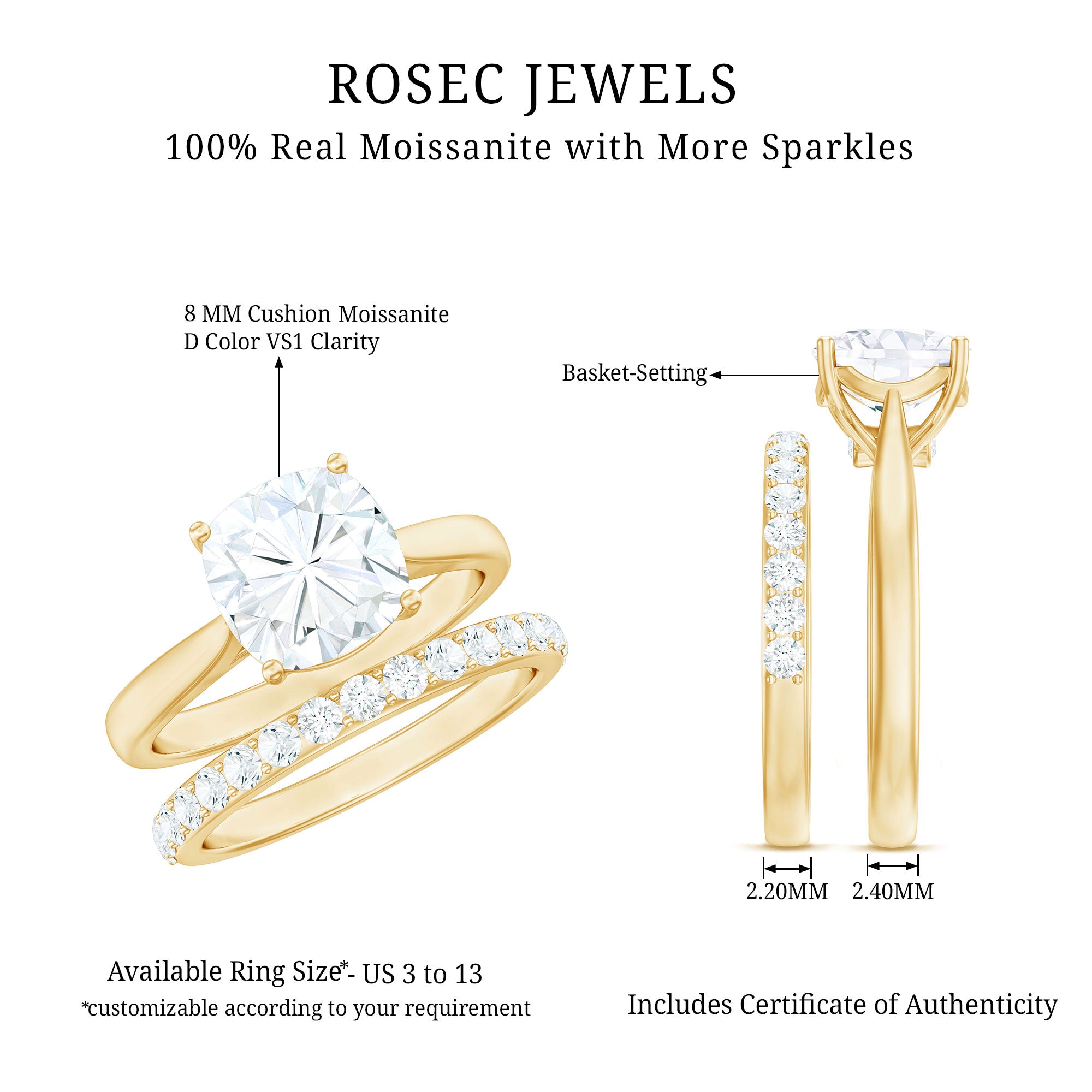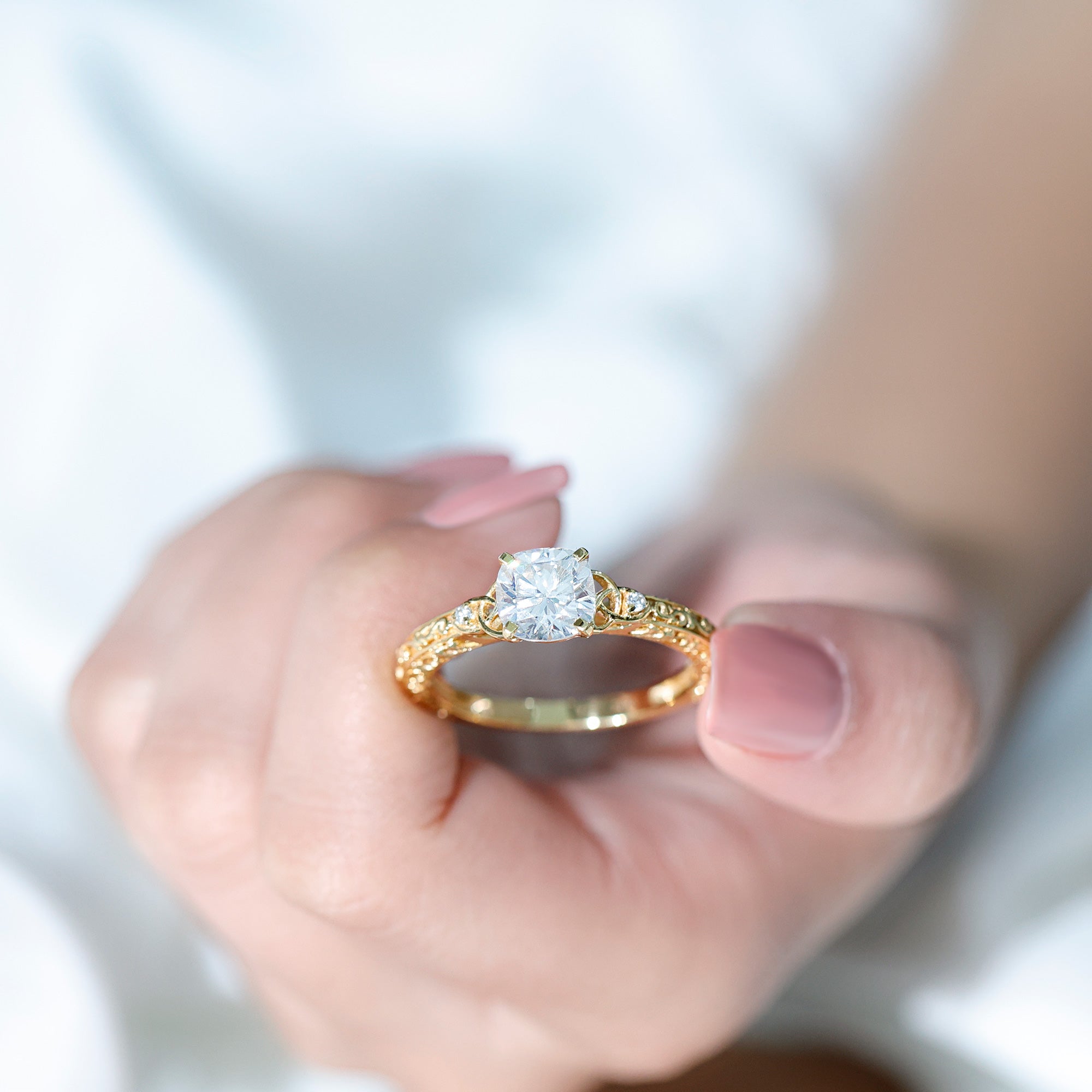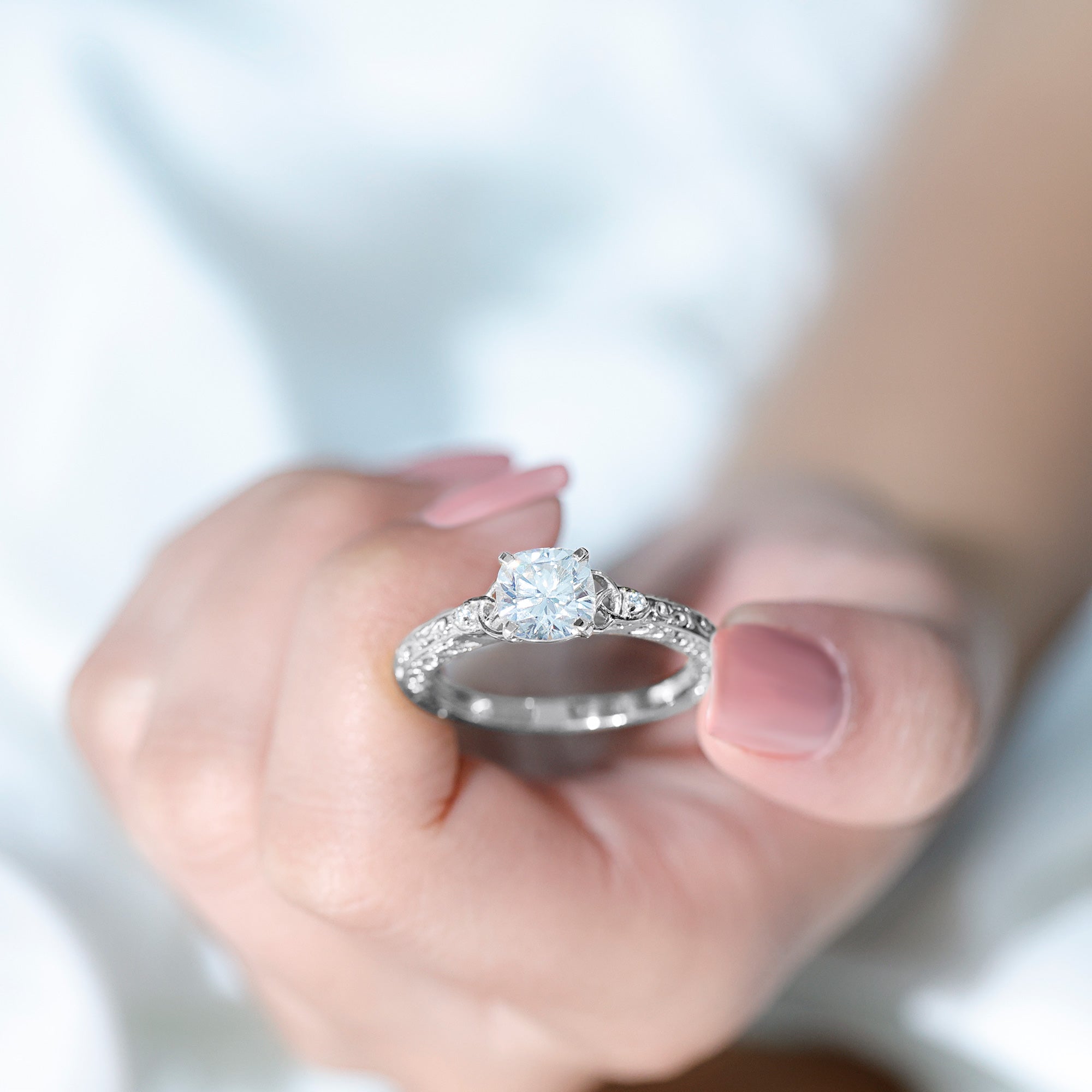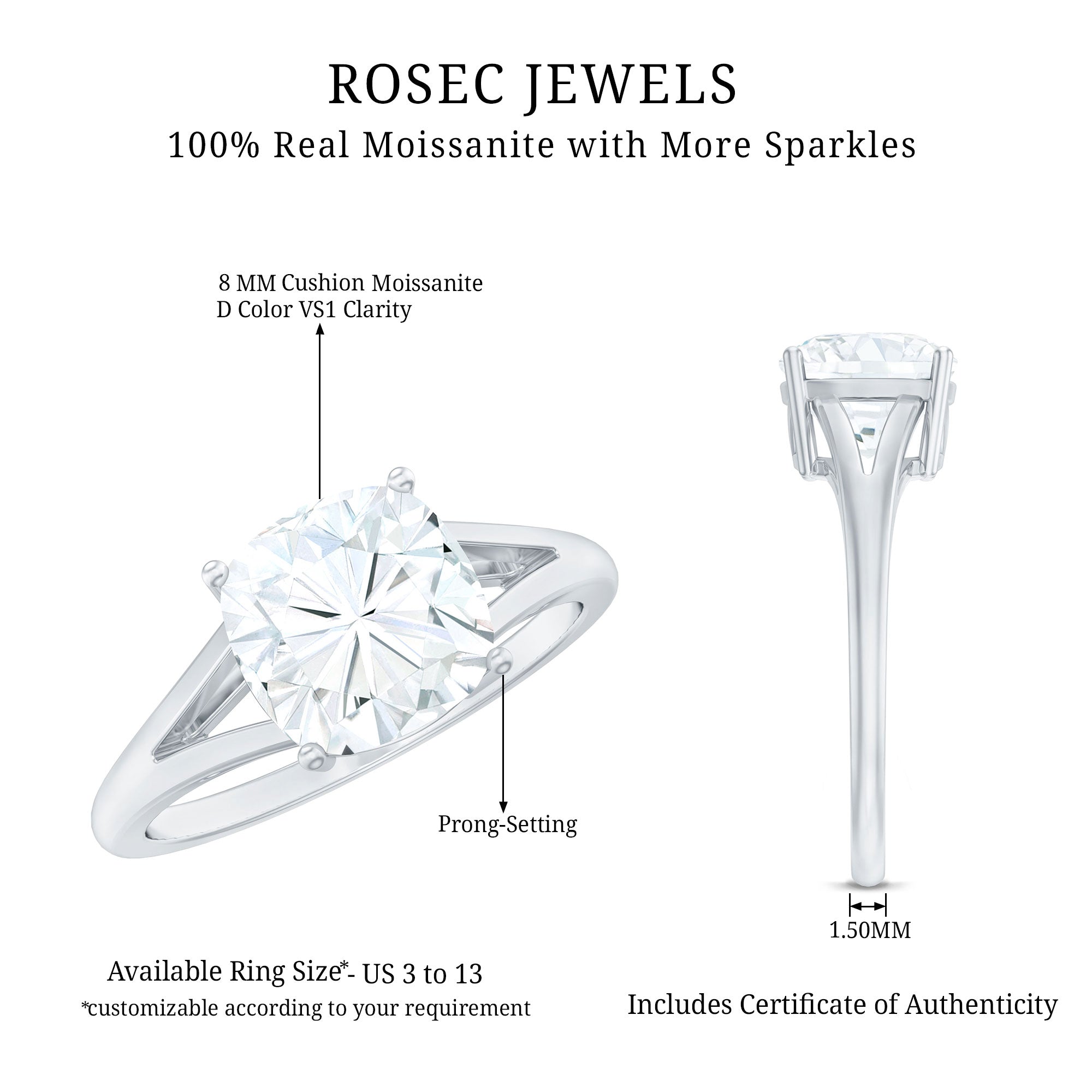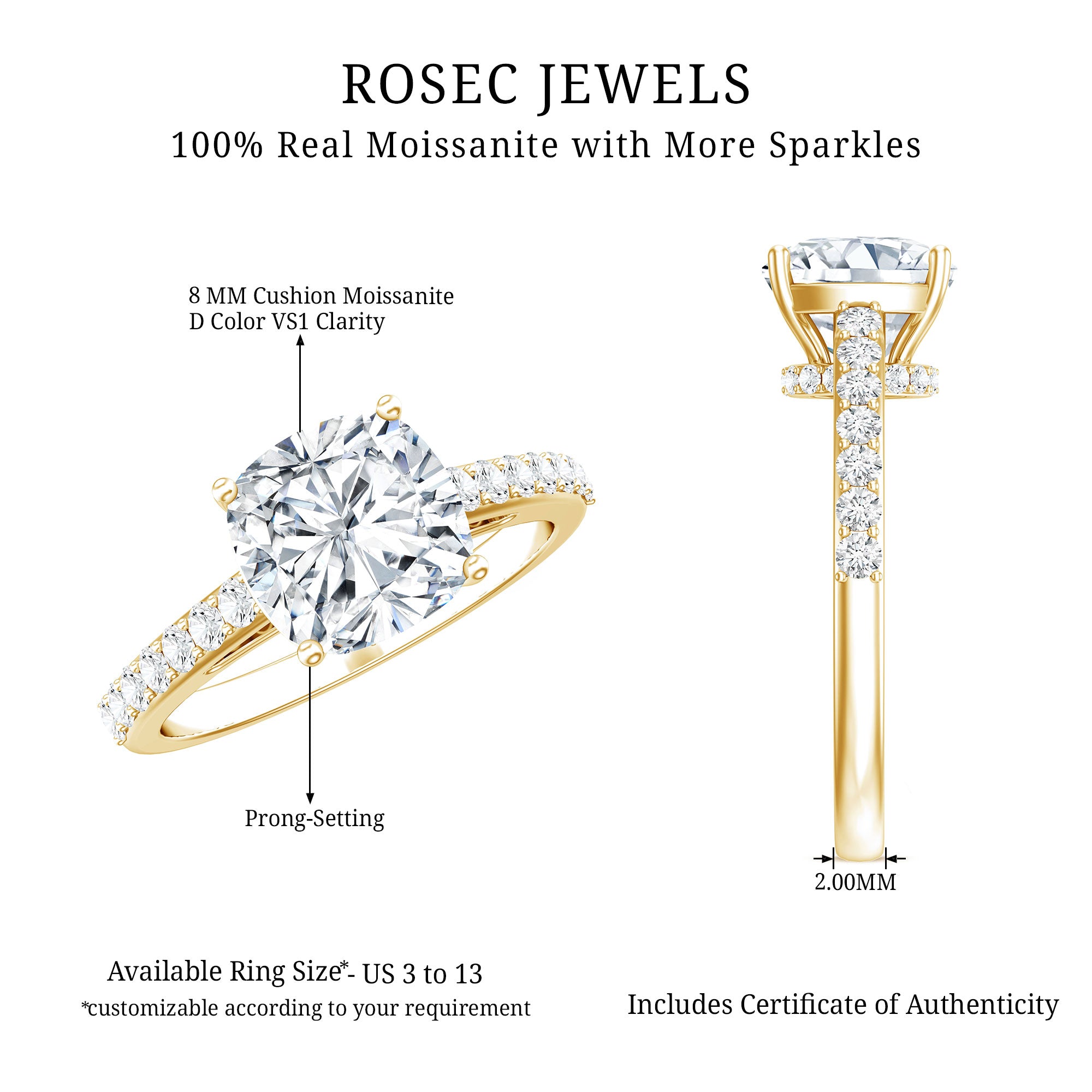Gemstone with rounded edges is free from the snagging and chipping issues, due to absence of sharp corners. Besides being beautiful, they are a more practical and long lasting choice as day to day wear accessories. Check the moissanite cushion cut engagement rings category to find a durable as well as affordable sparkler for your forever moment.