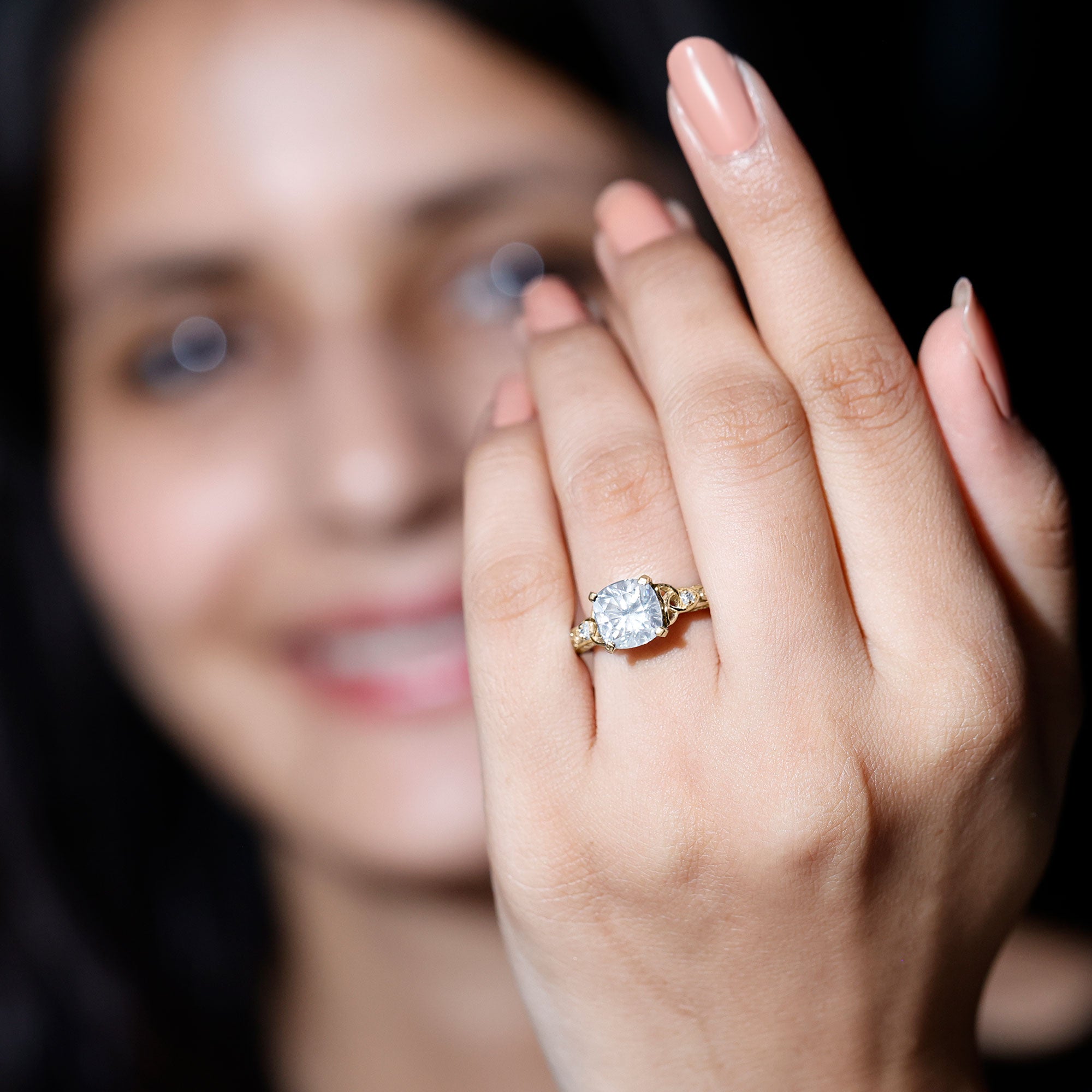 Cushion gemstone as the center stone, looks appealing in all types of ring designs from classic to trending. Solitaire cushions rings for bold personalities come with a touch of classic beauty. Cushion cut halo engagement rings are statement pieces, favored for their added sparkle and protection. Vintage inspired design in cushion cuts are perfect examples of old world charm with modern twist. Minimal cushion engagement rings with clean lines and soft curves are trending as elegant symbols of modern love.