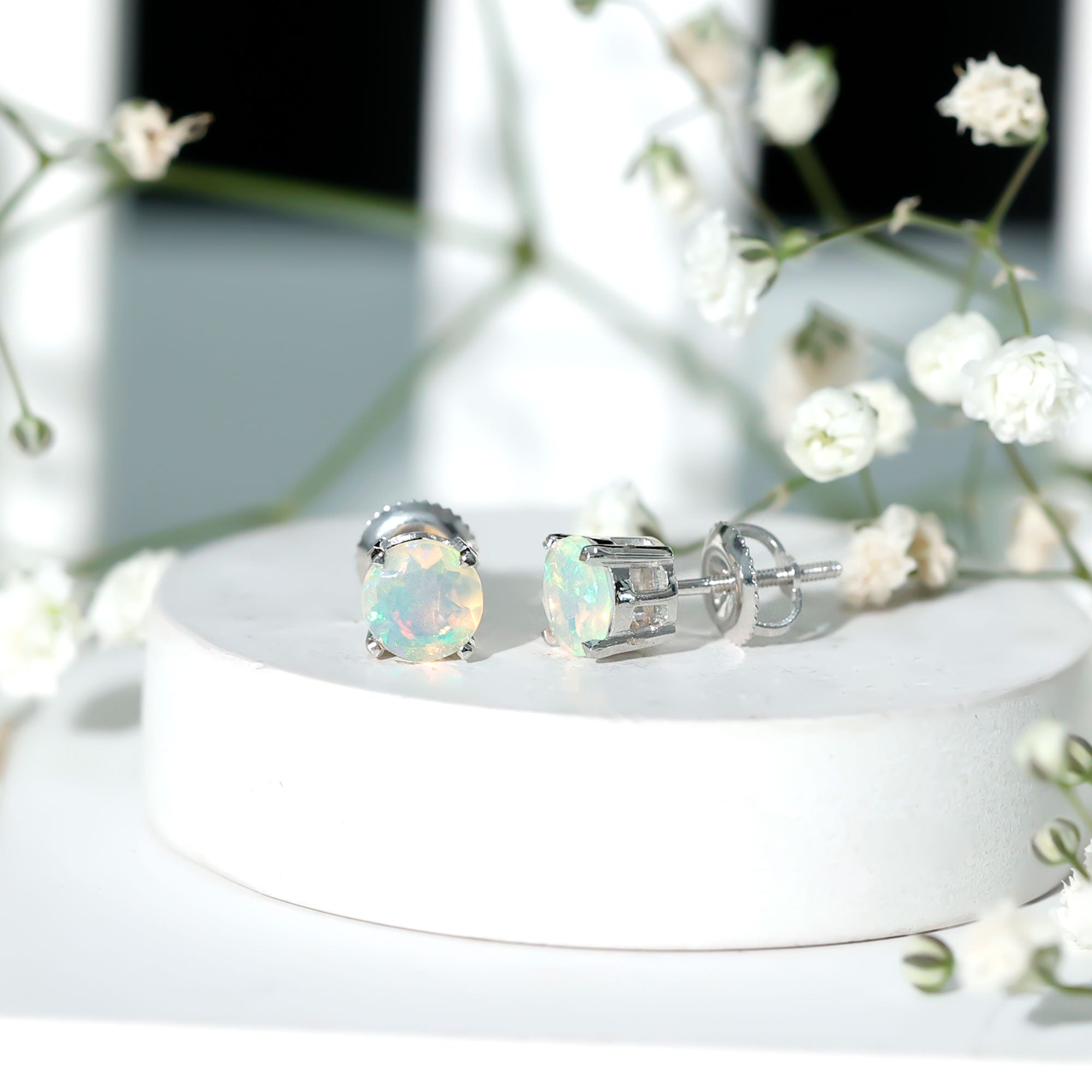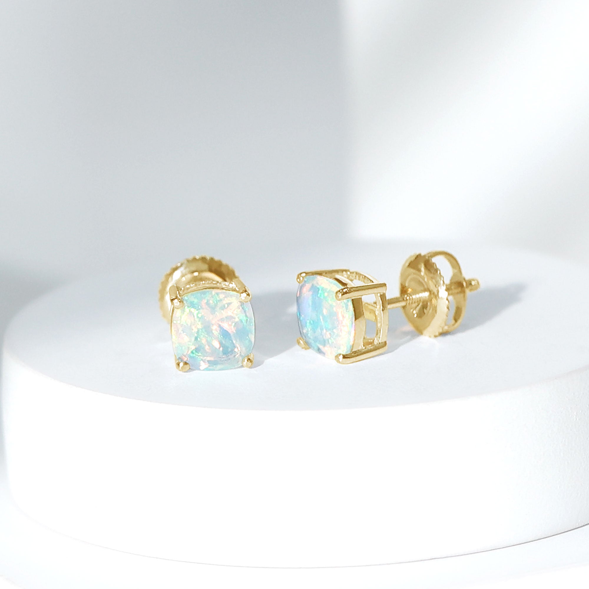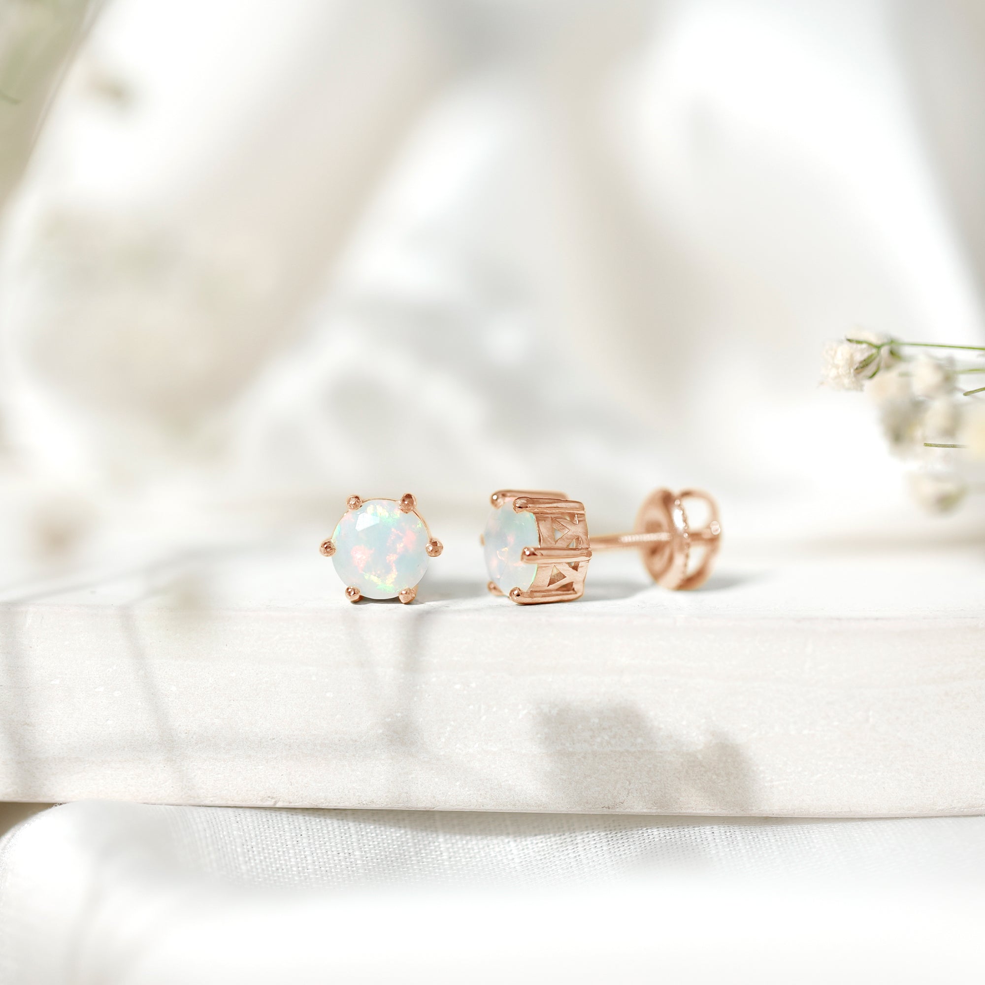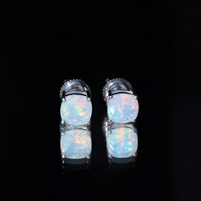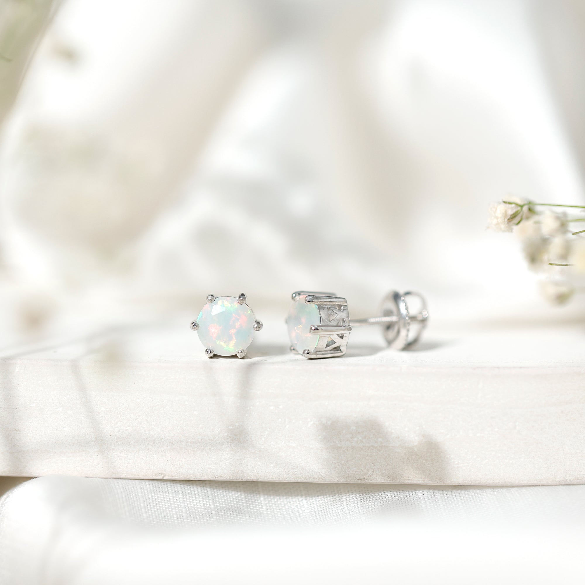 Opalen oorknopjes | Oorbellen met geboortestenen van oktober | Witgouden opaaloorbellen