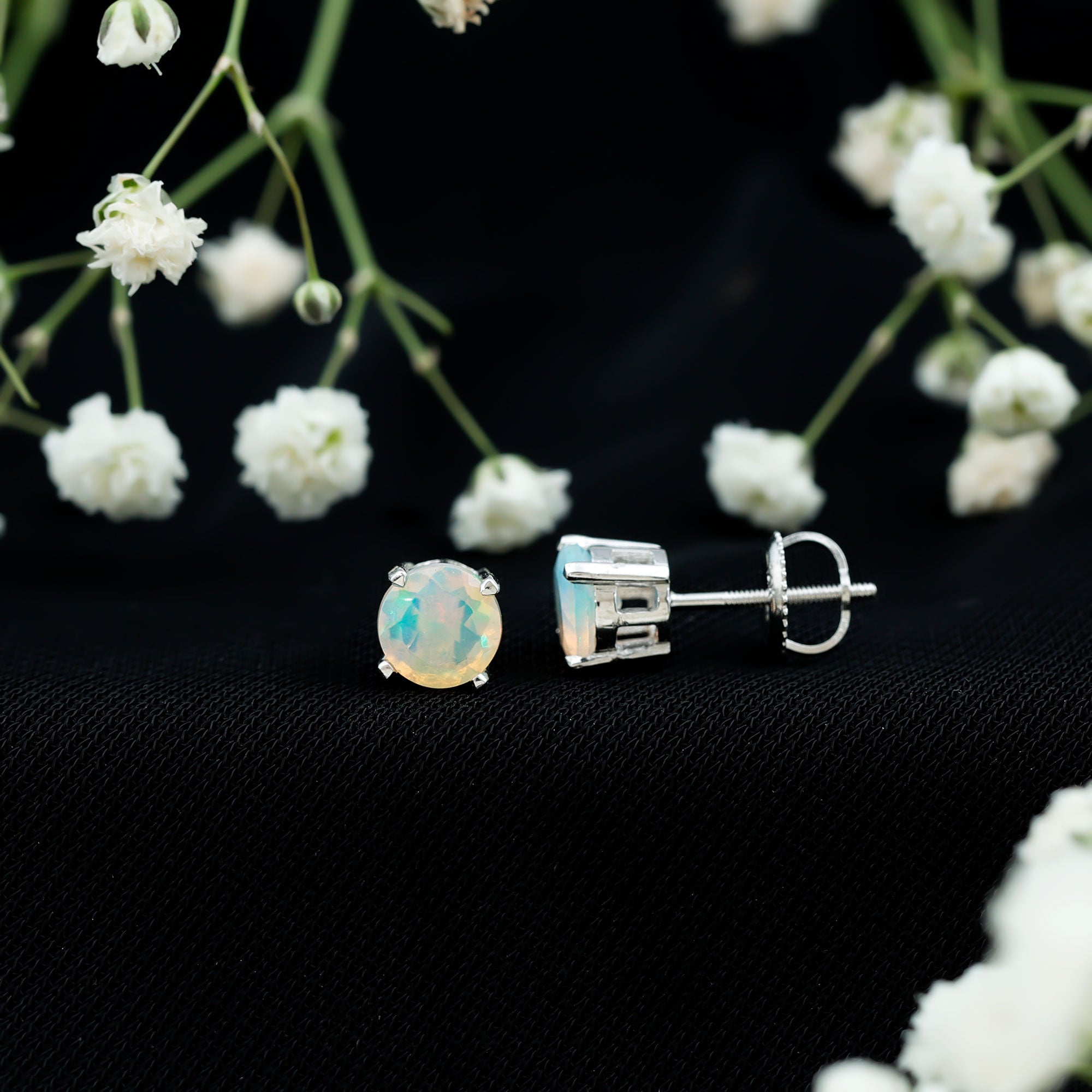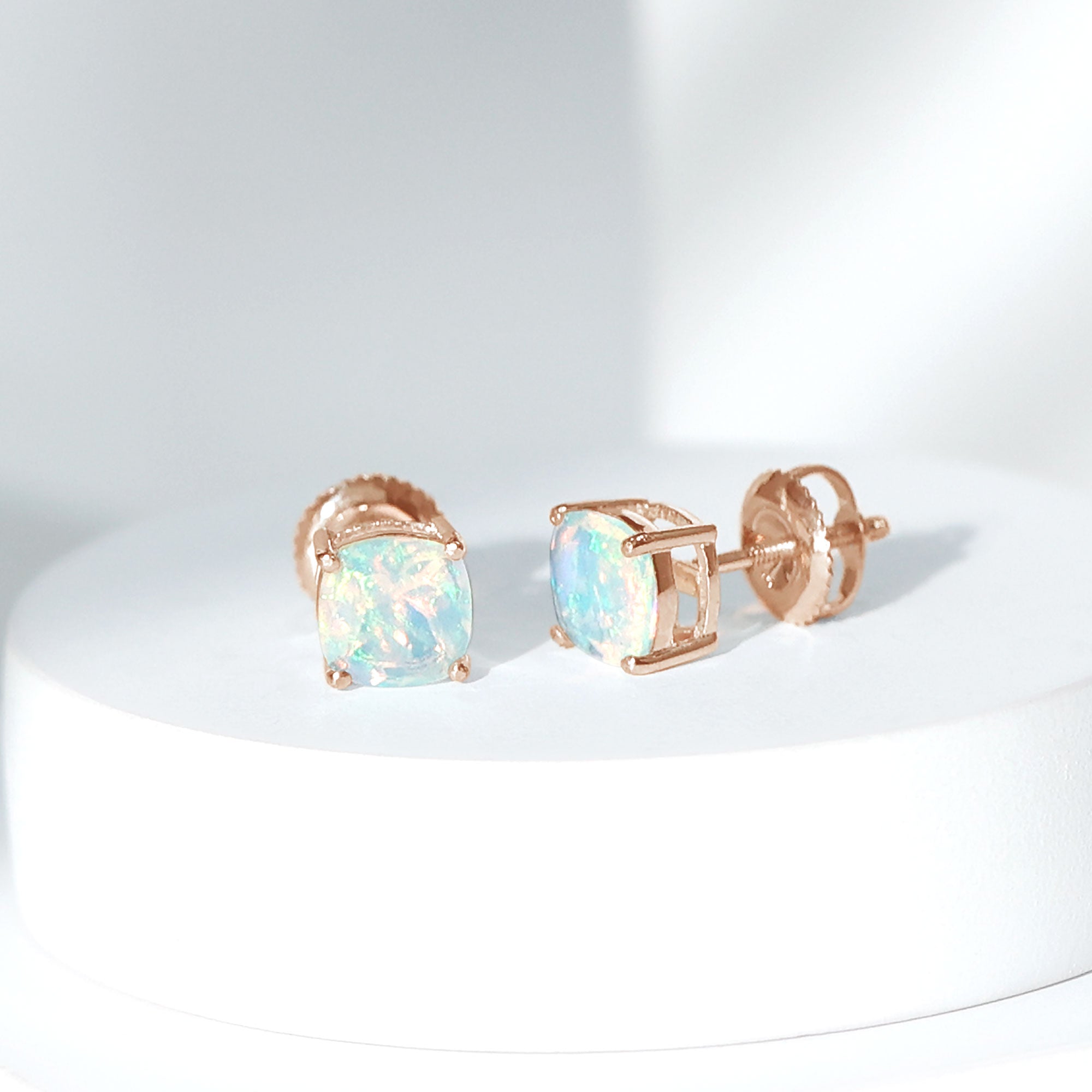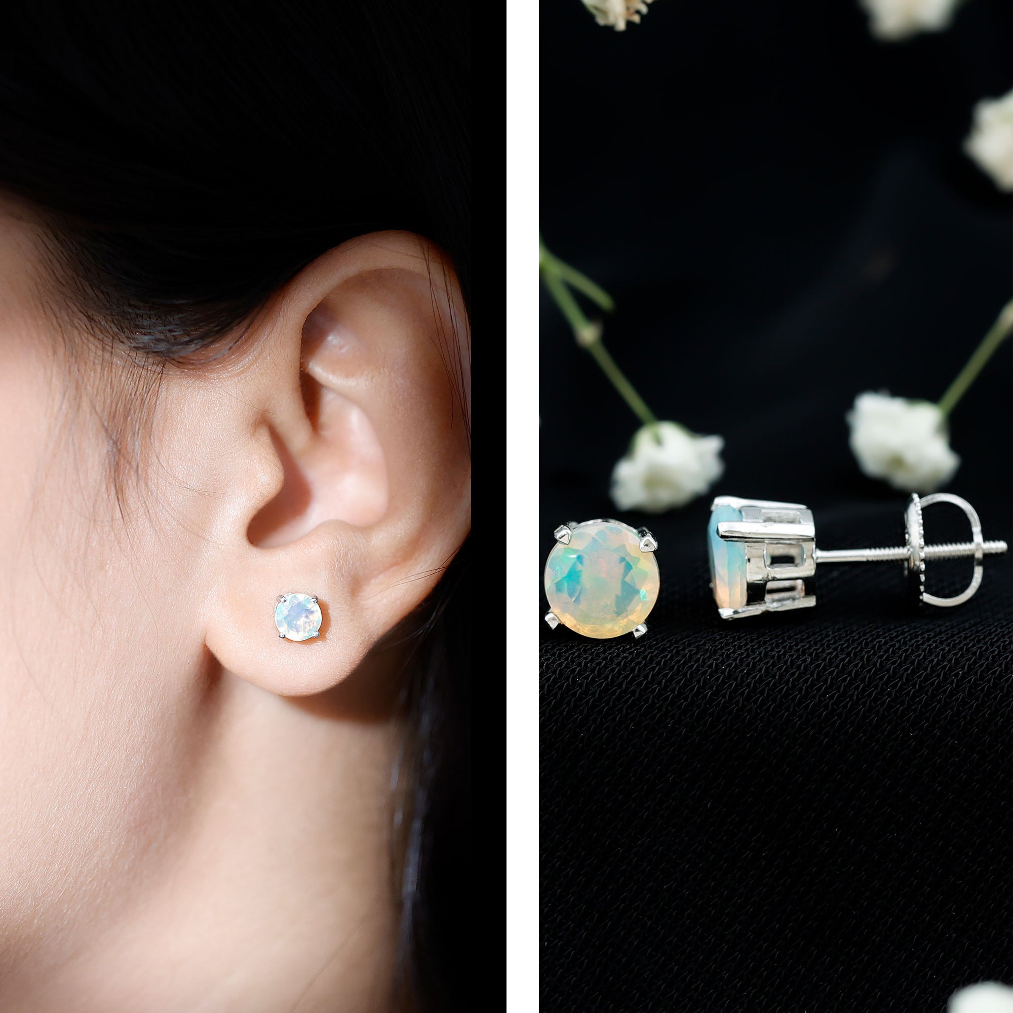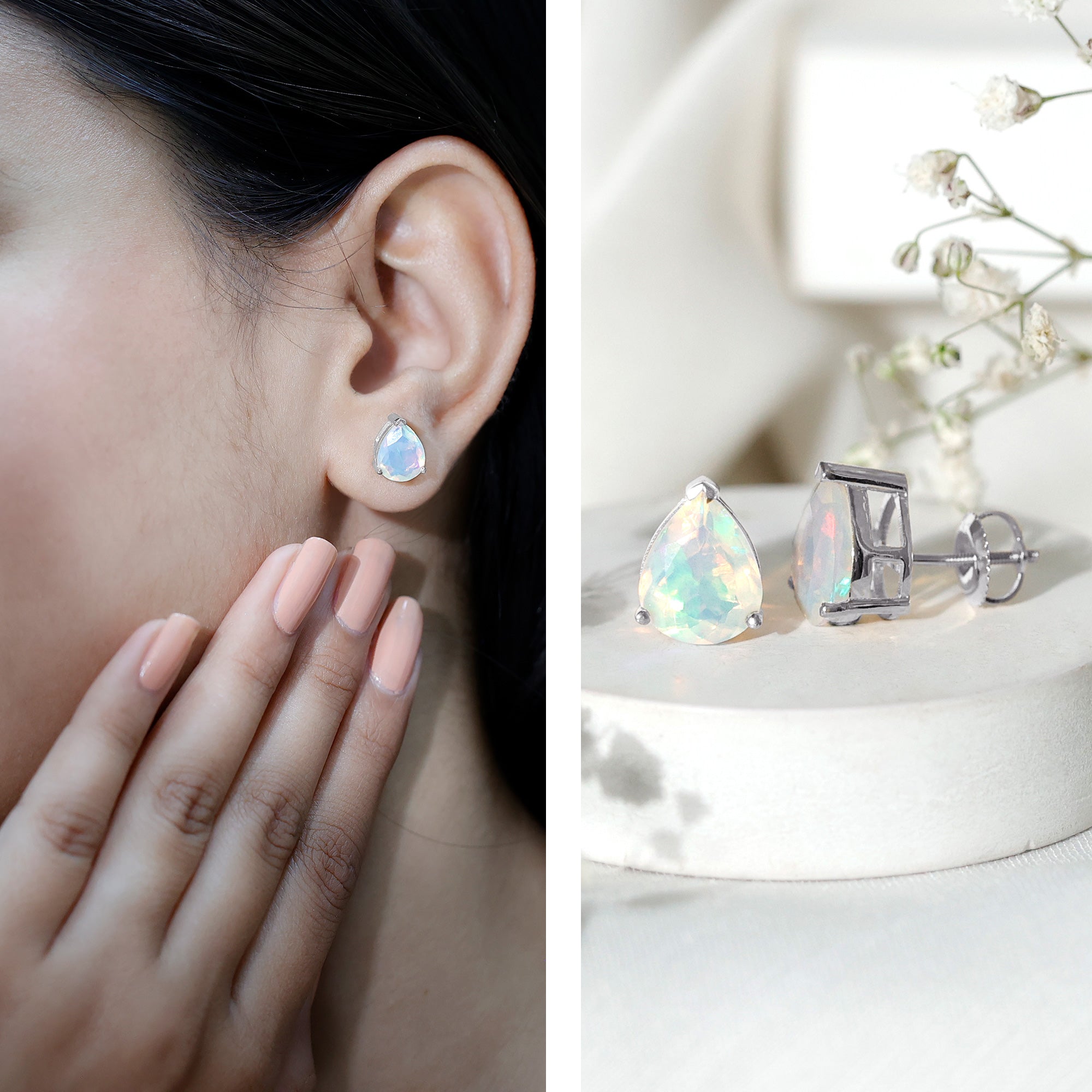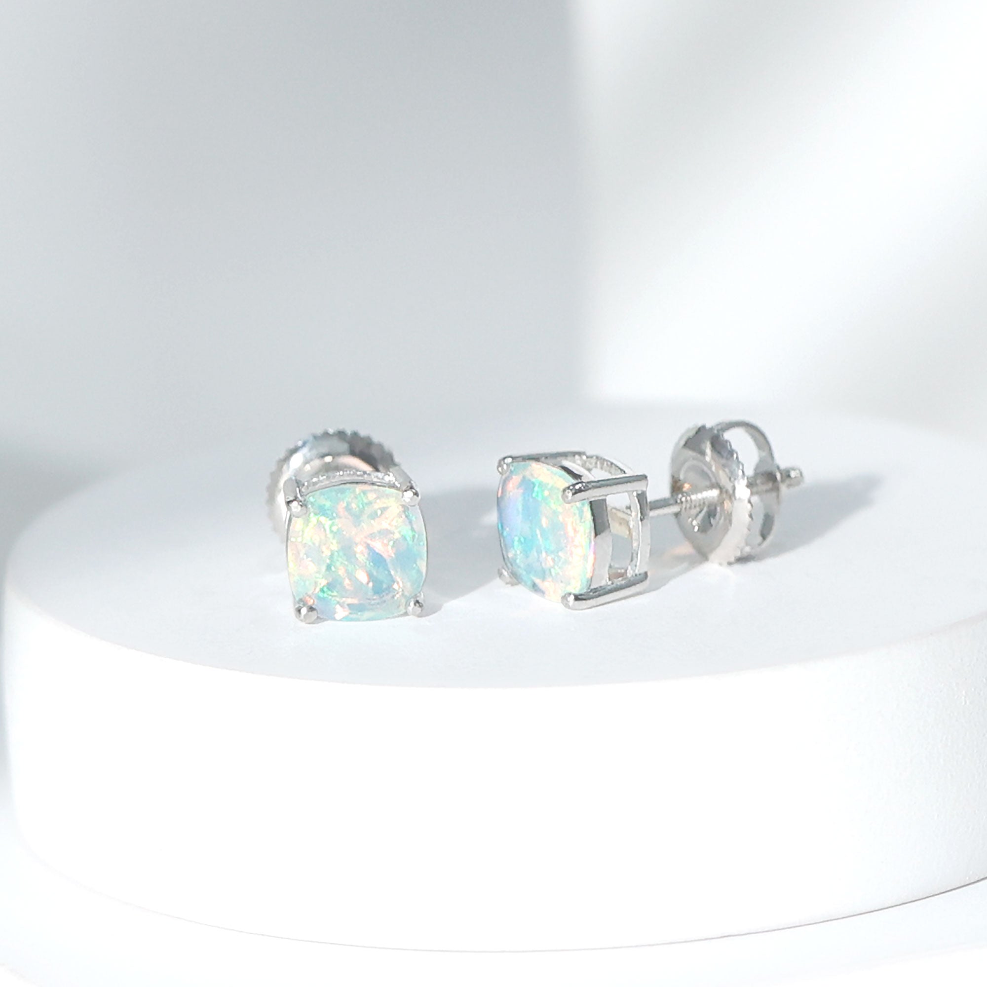 Opalen oorknopjes | Oorbellen met geboortestenen van oktober | Witgouden opaaloorbellen