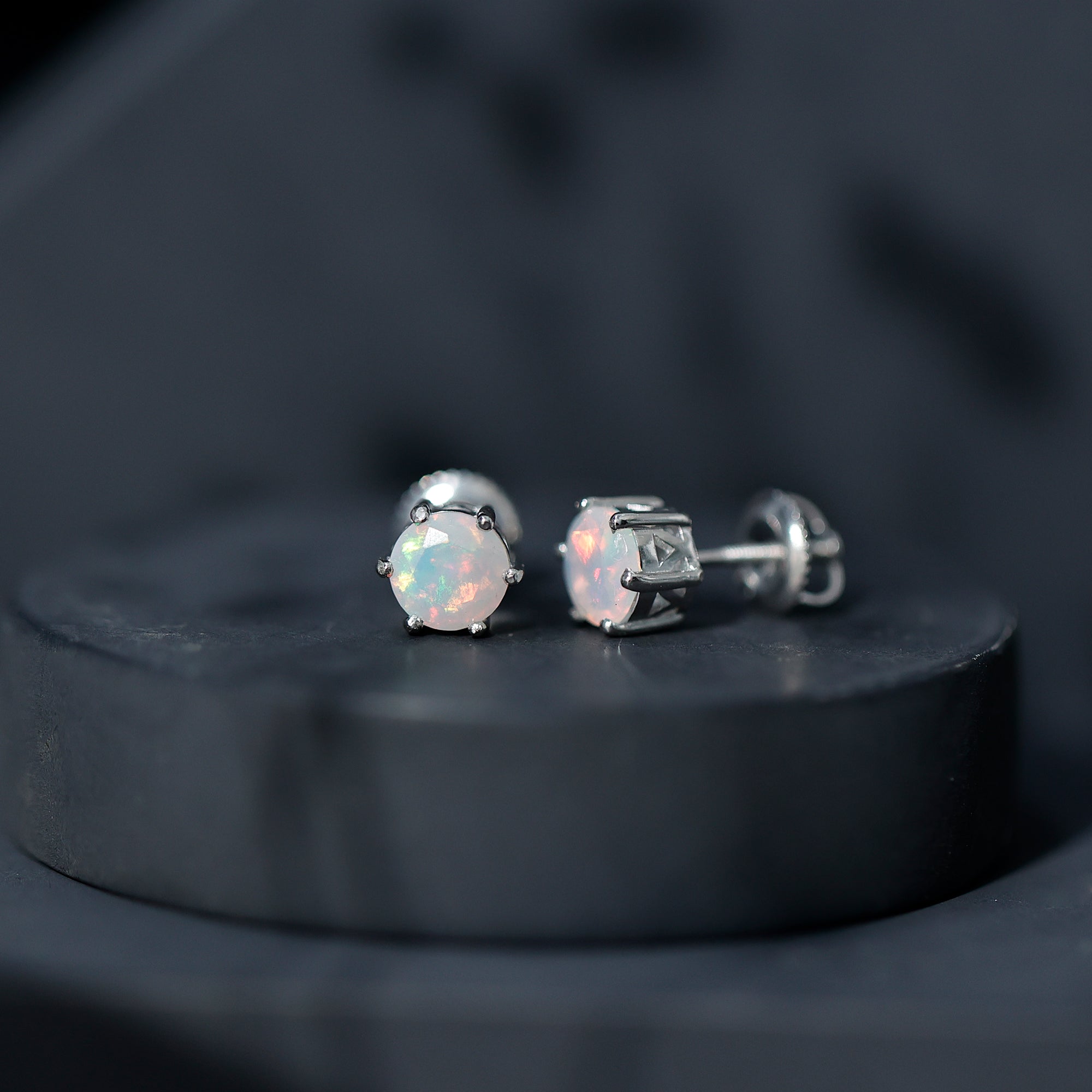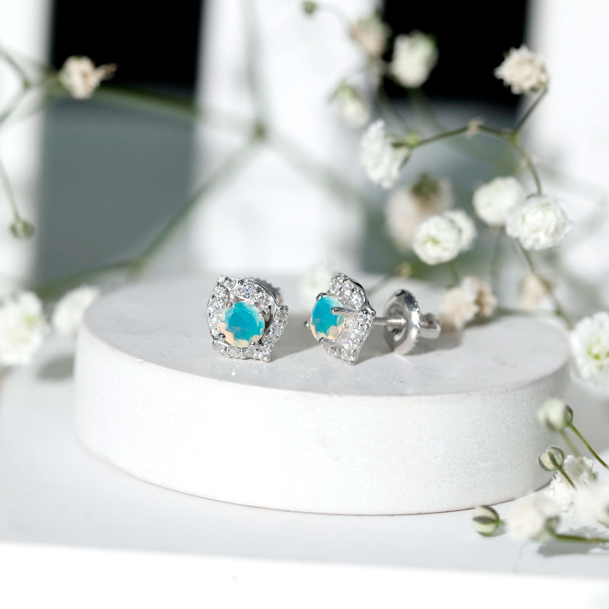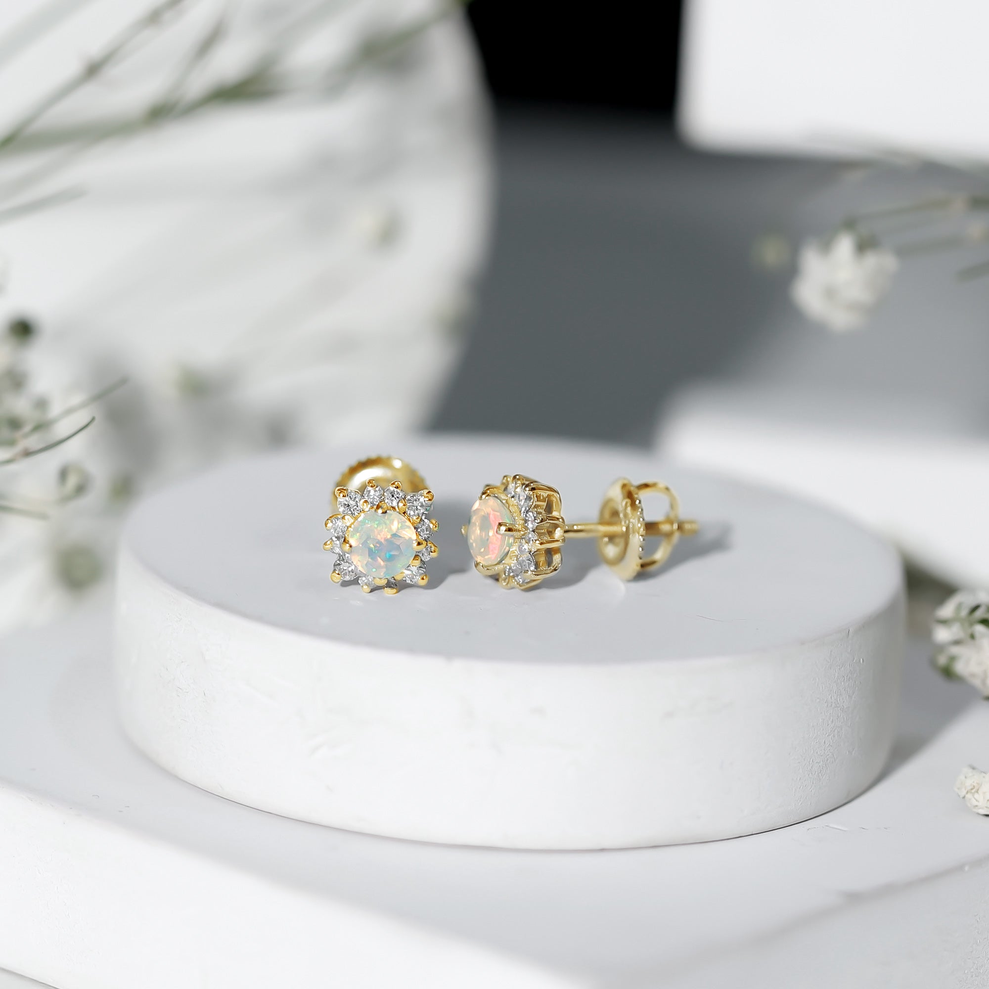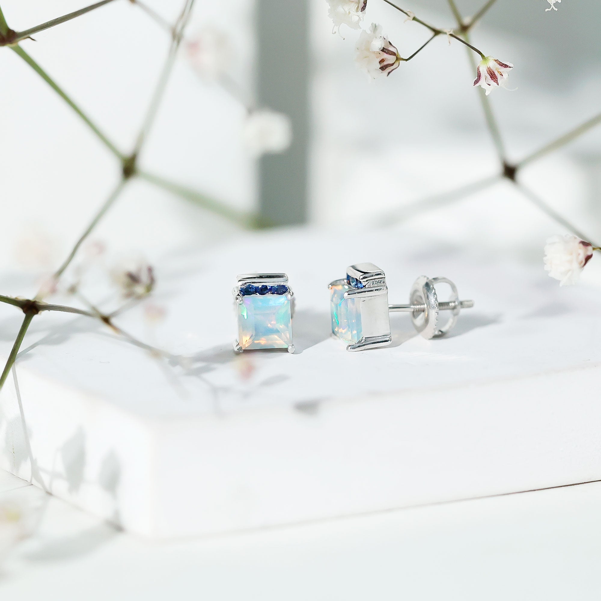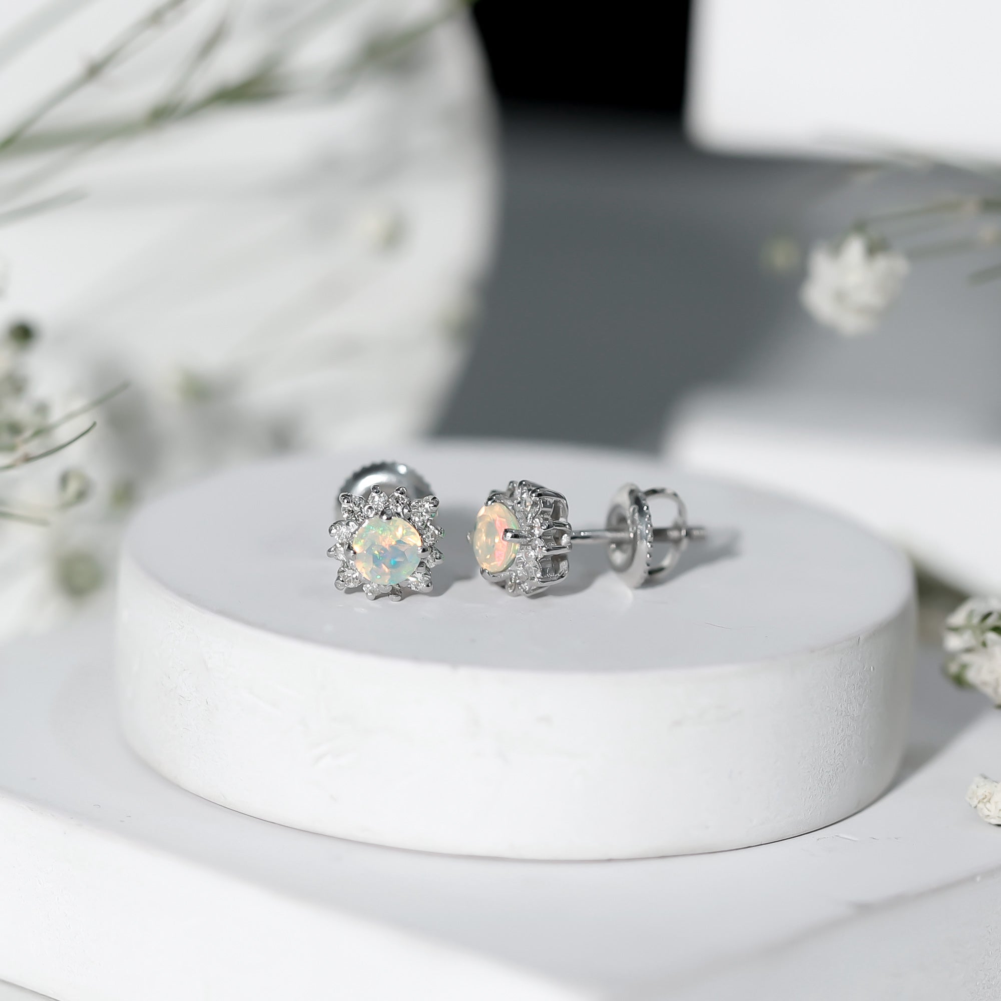Opalen oorknopjes | Oorbellen met geboortestenen van oktober | Witgouden opaaloorbellen