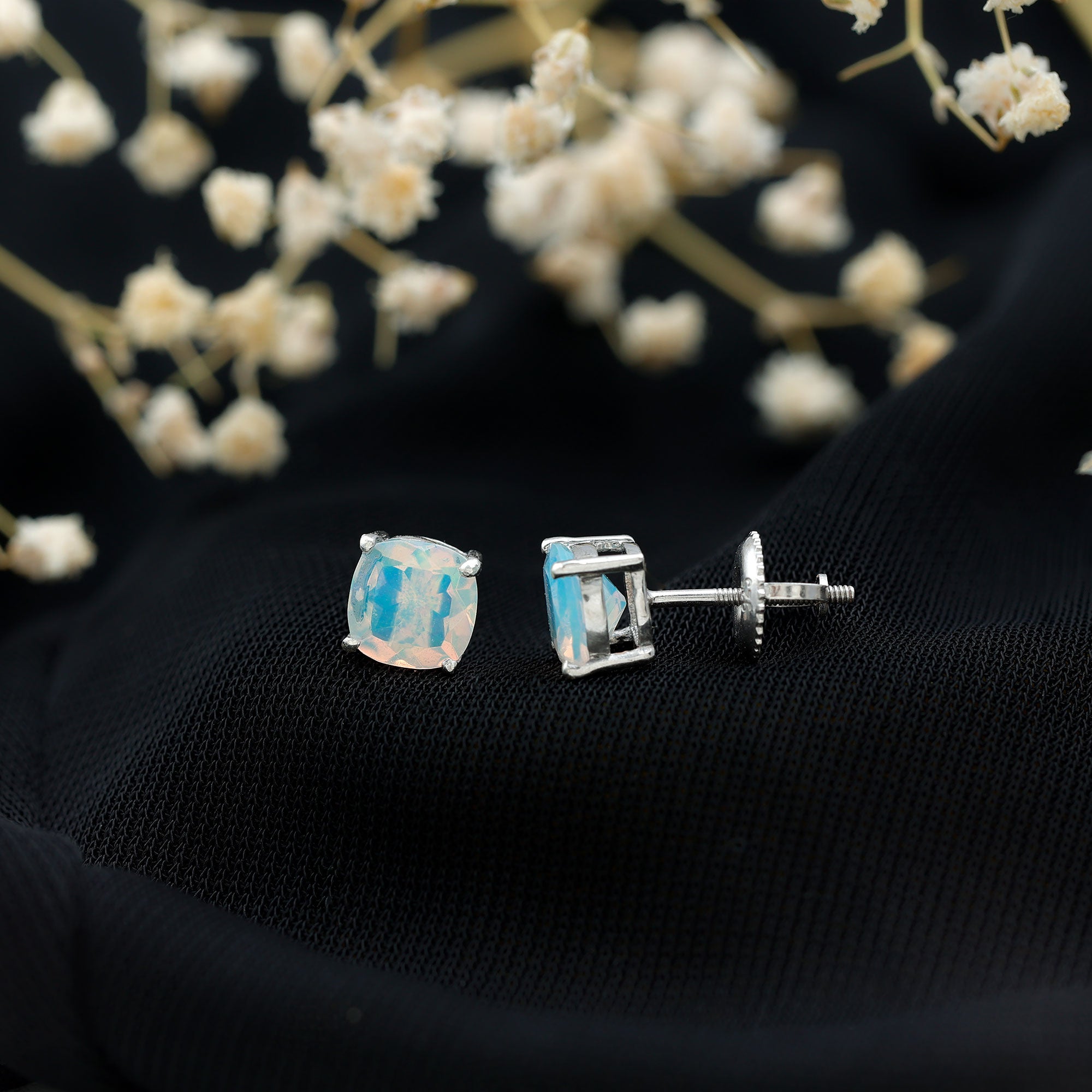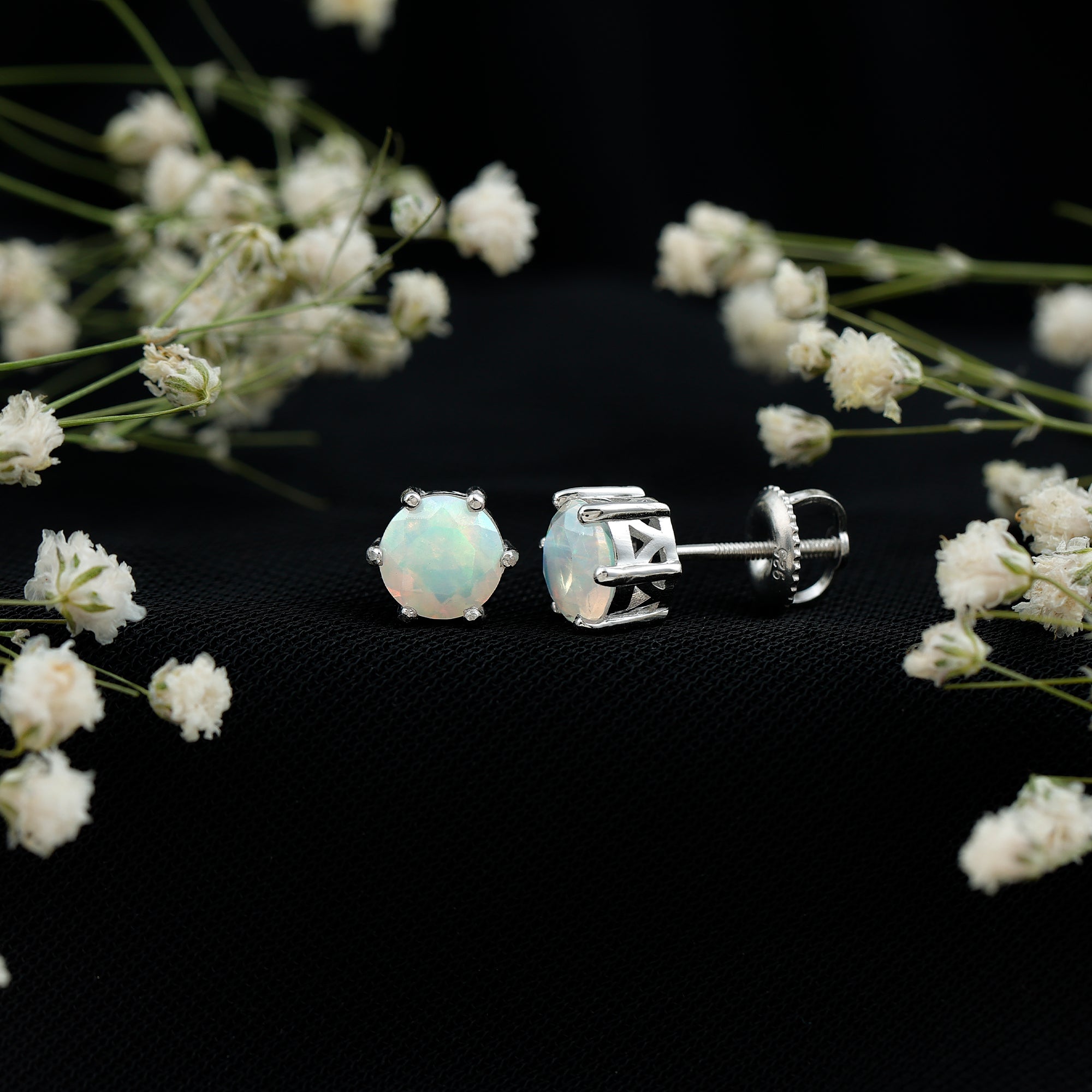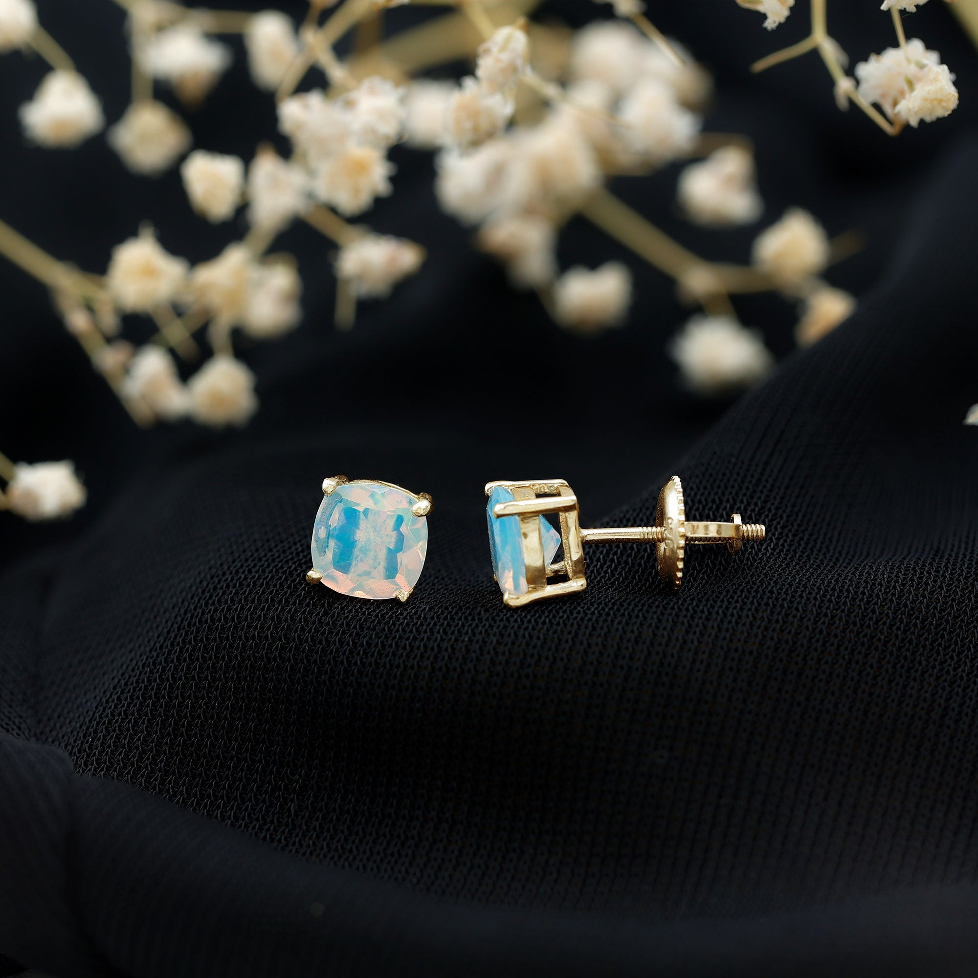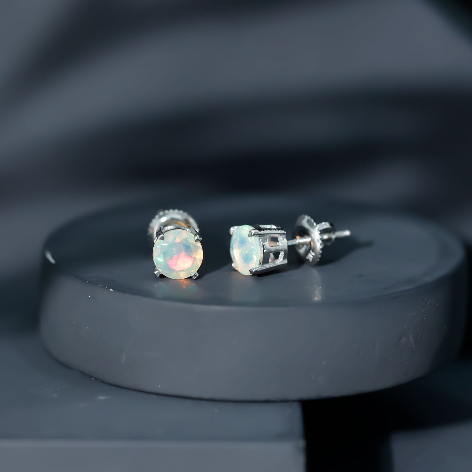 Opalen oorknopjes | Oorbellen met geboortestenen van oktober | Witgouden opaaloorbellen