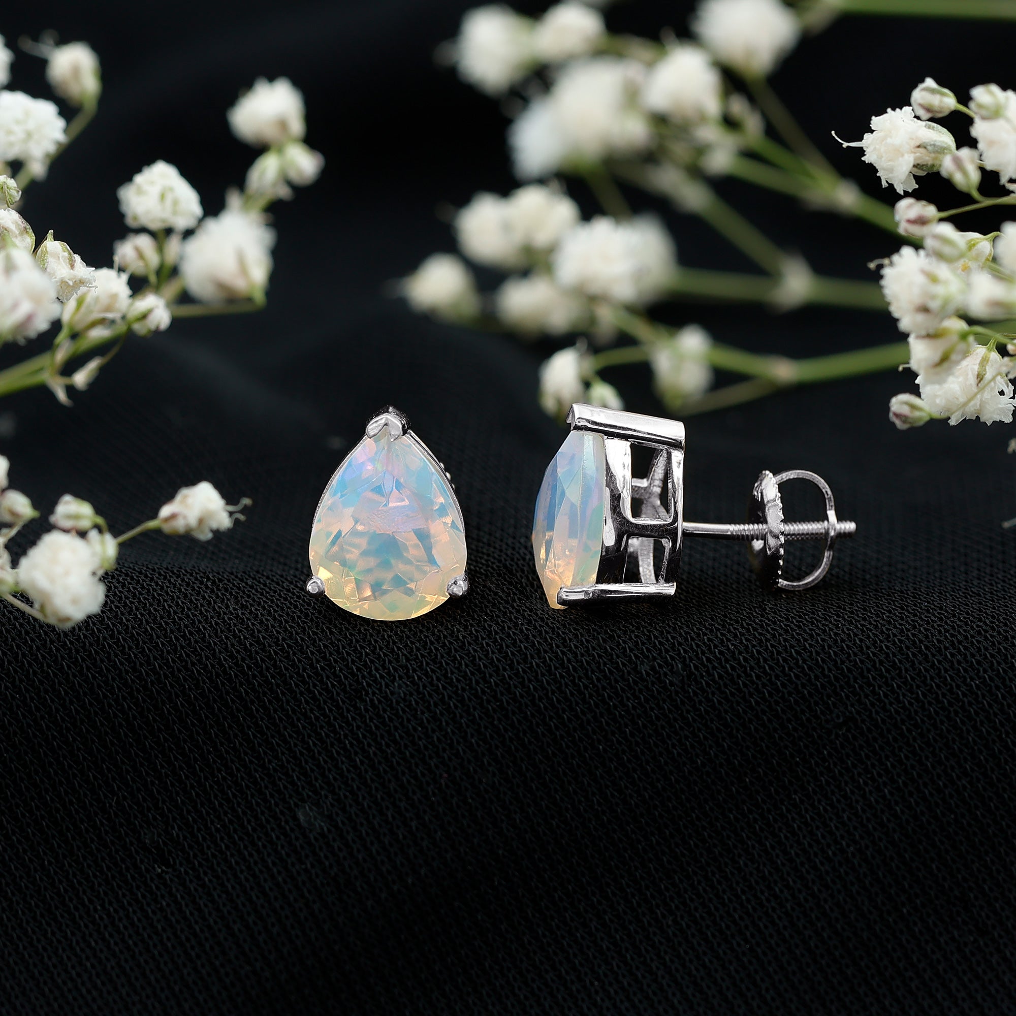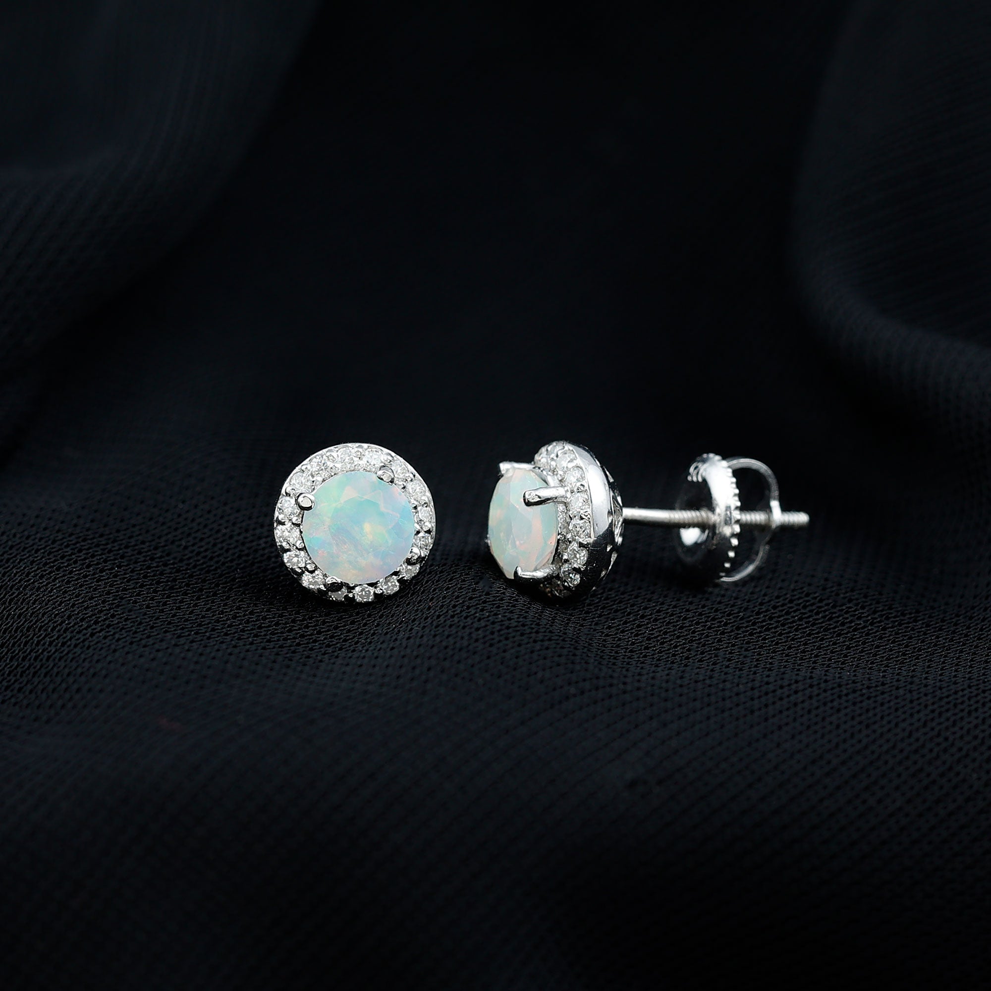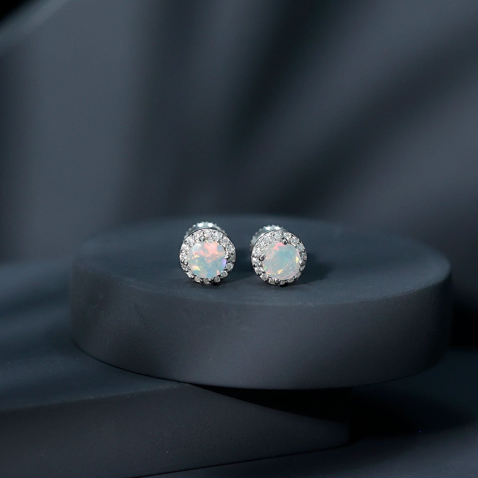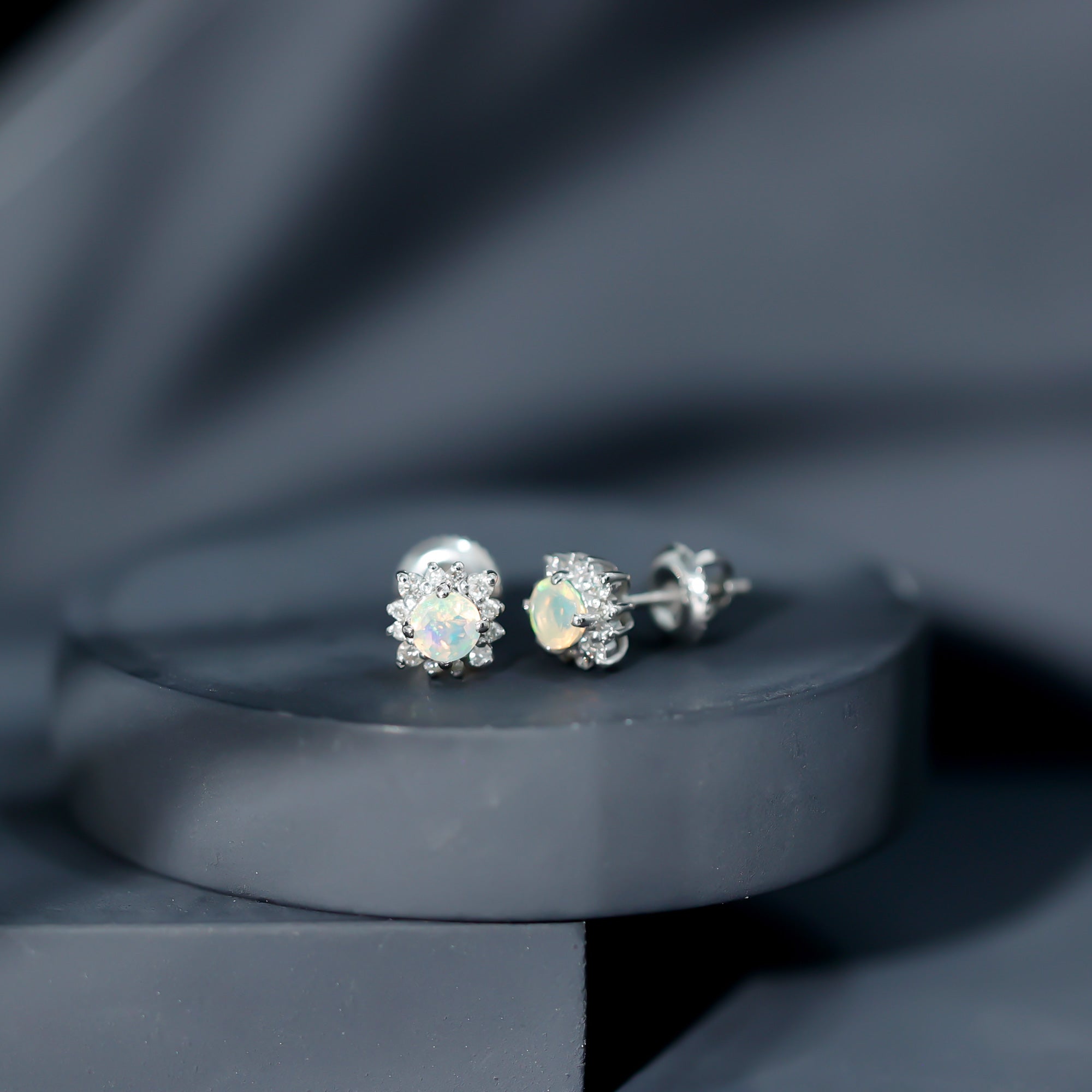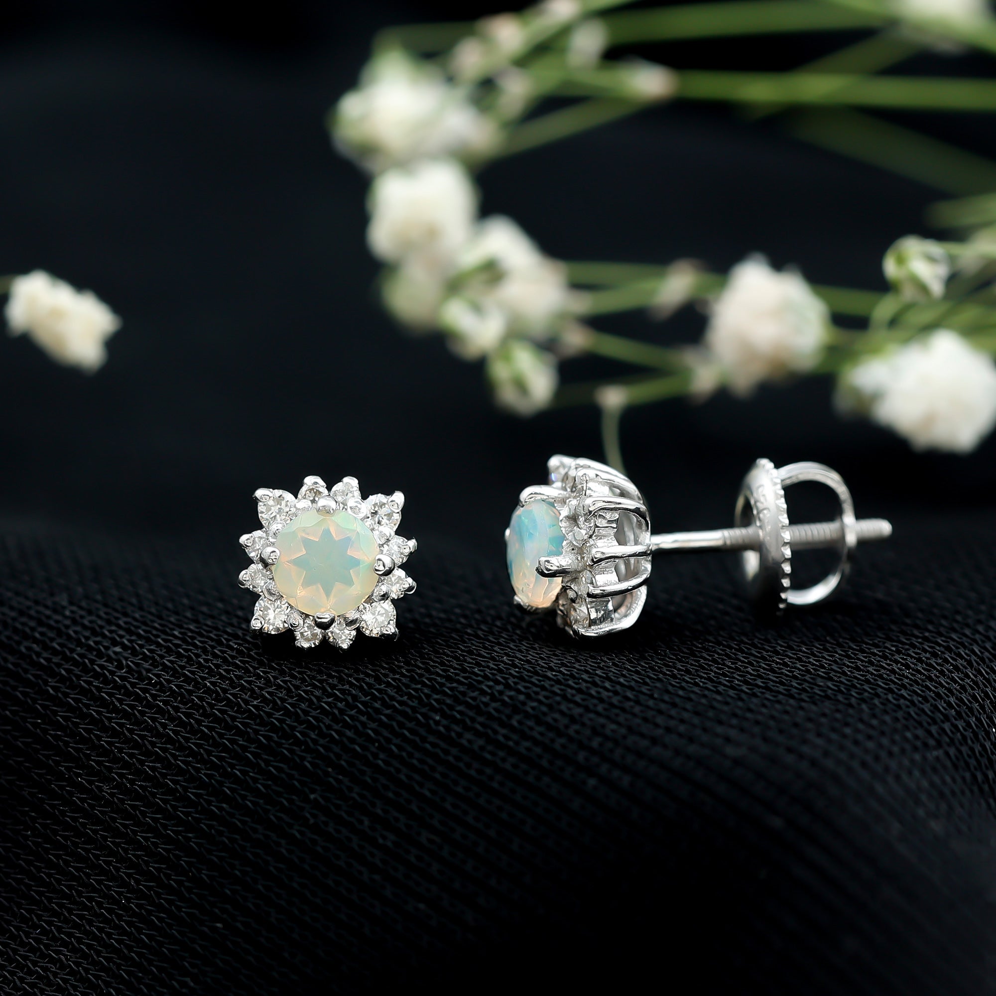 Opalen oorknopjes | Oorbellen met geboortestenen van oktober | Witgouden opaaloorbellen