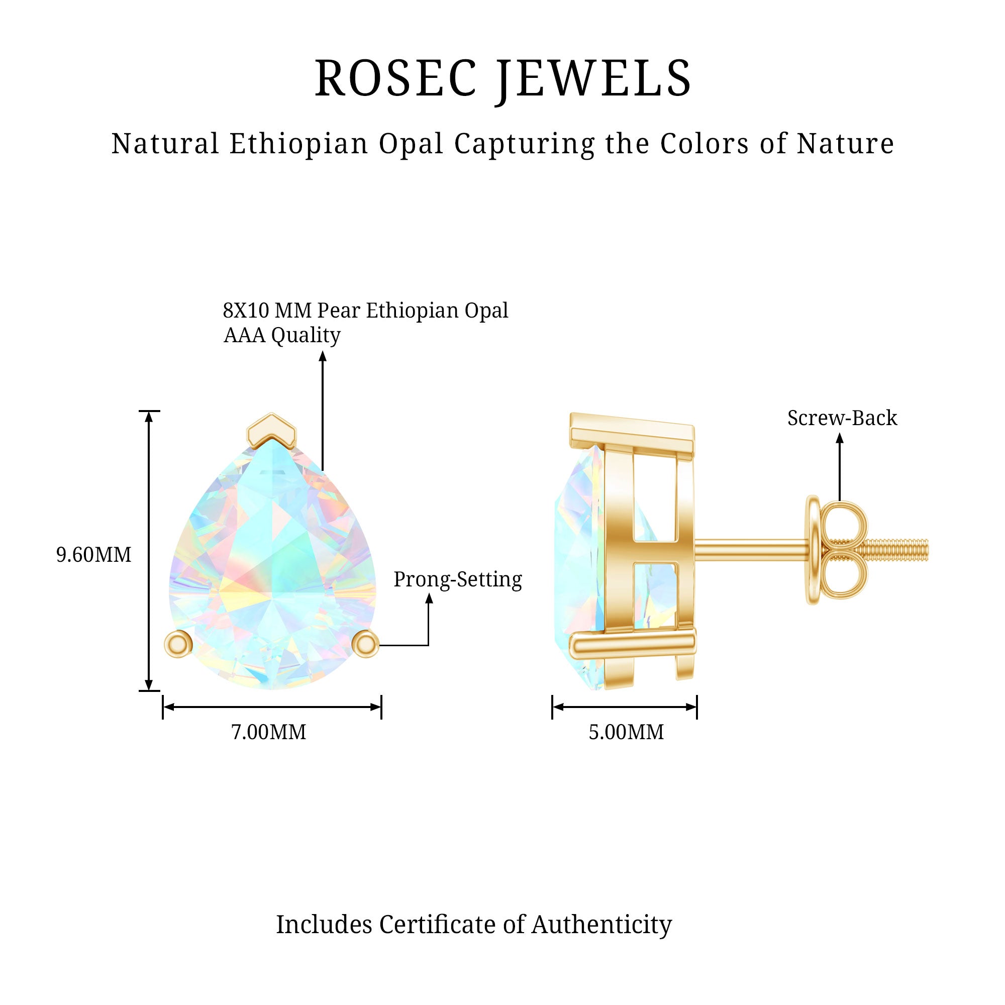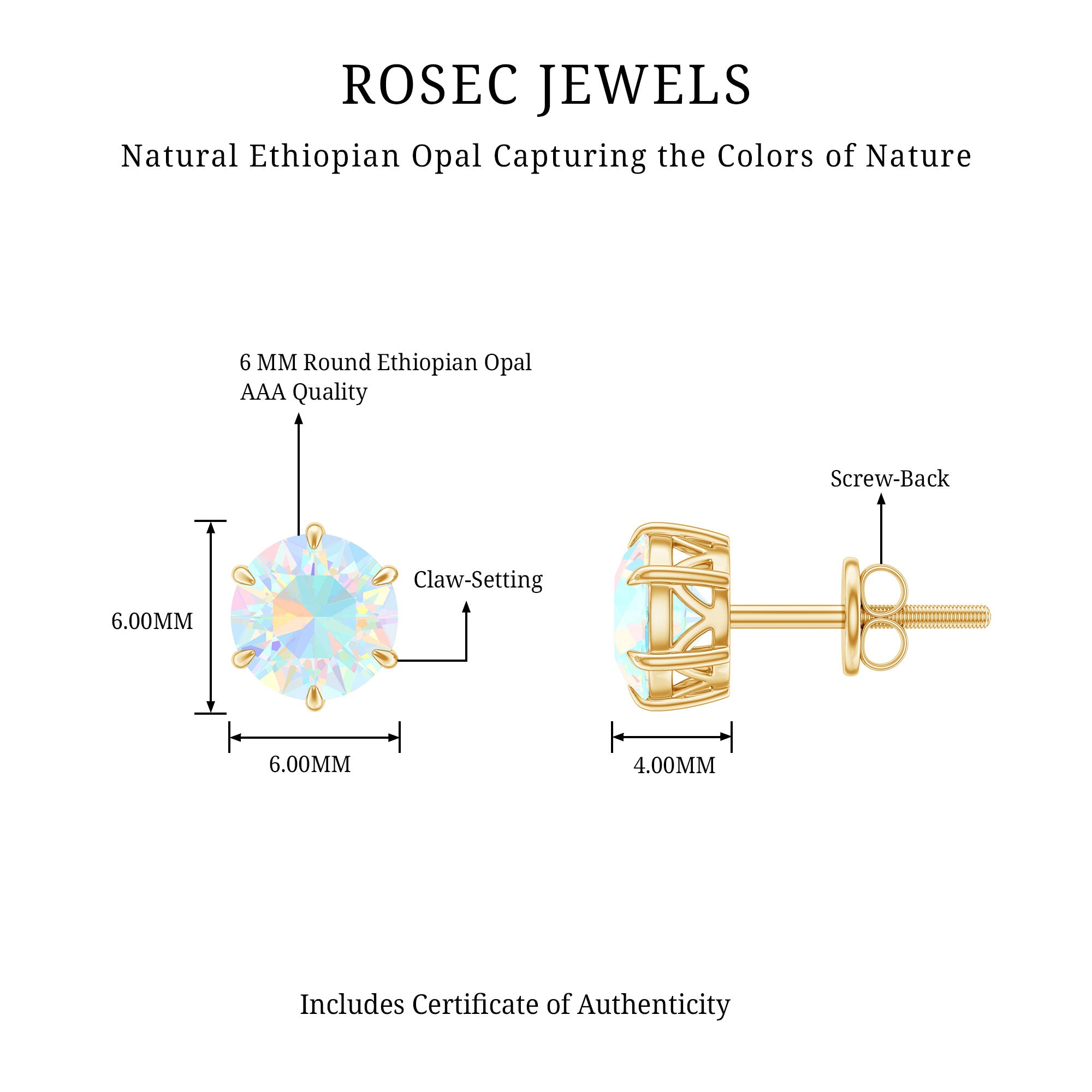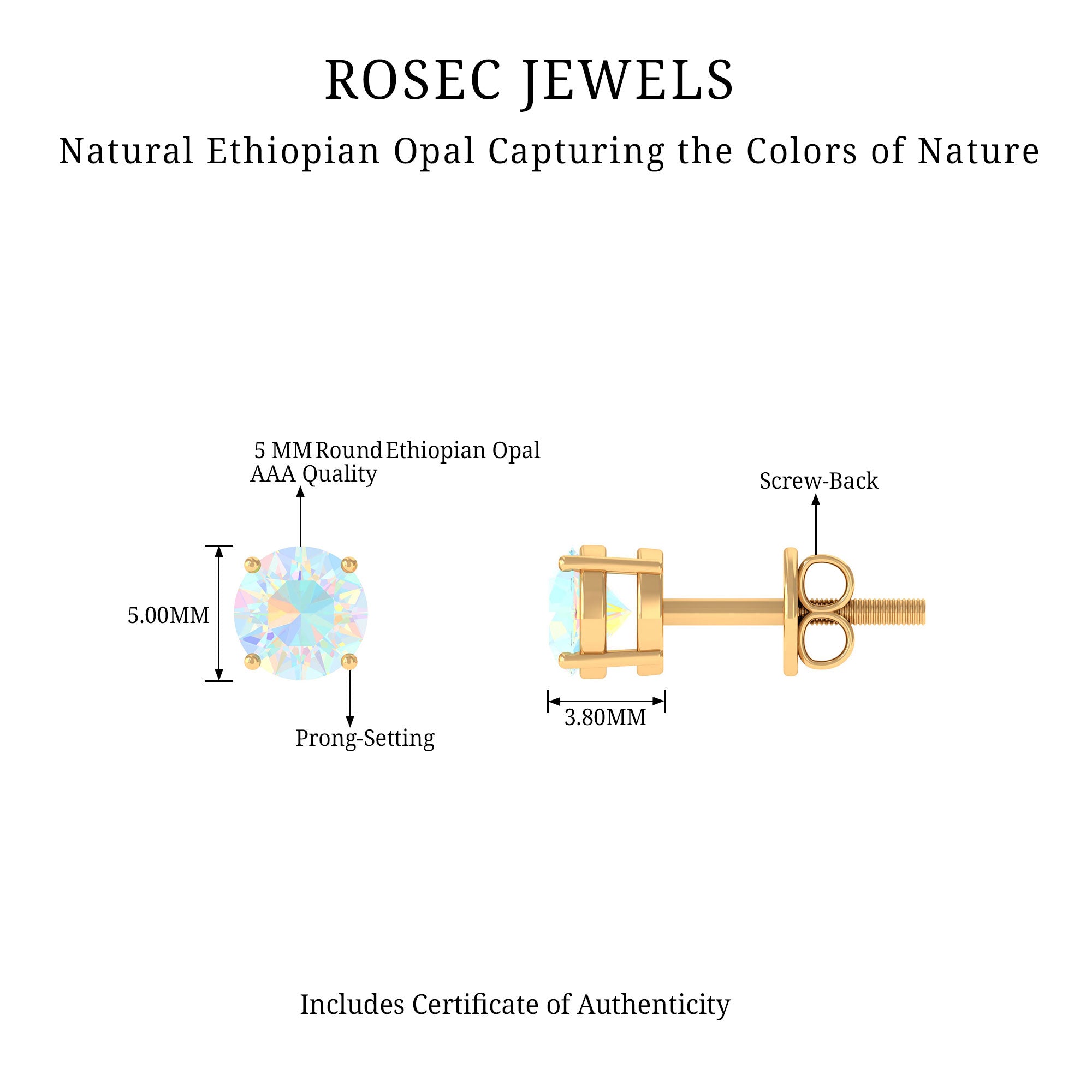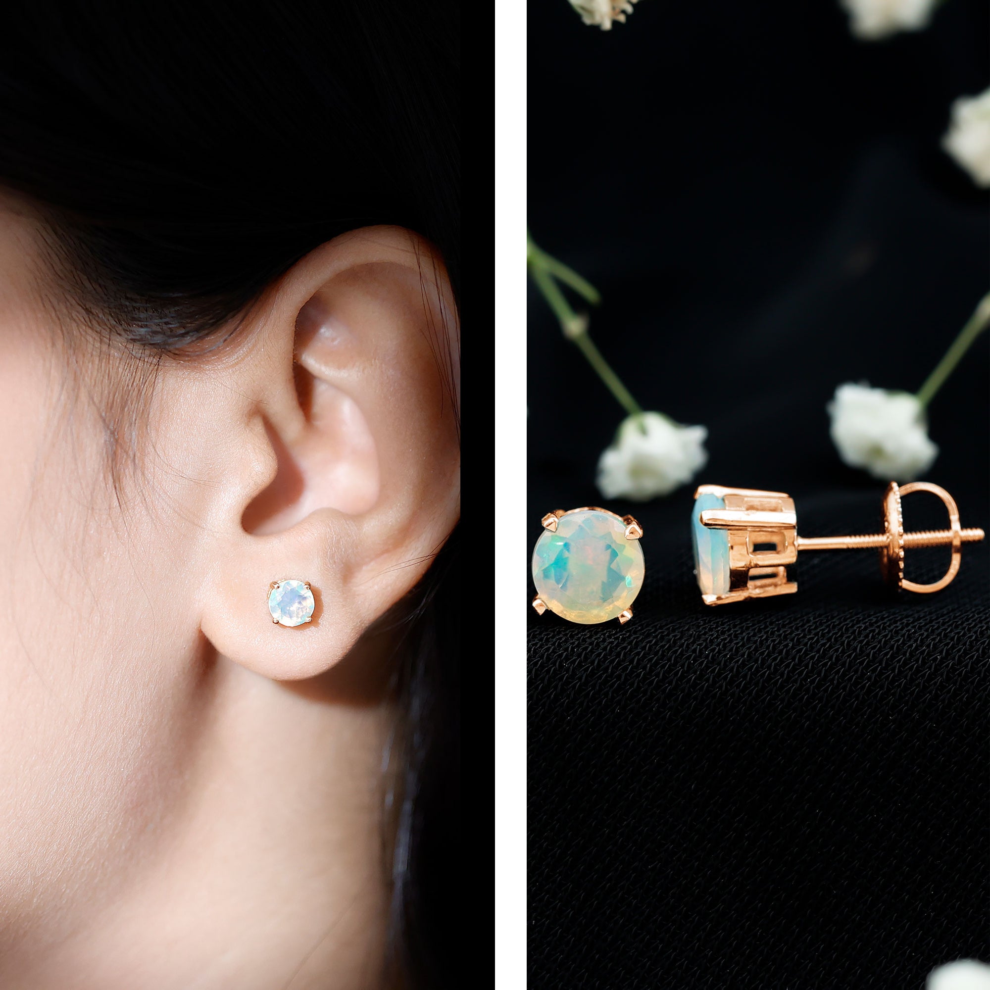 De echte opalen oorknopjes zijn bedoeld om elke dag mee te pronken en worden rechtstreeks door de oorlel gedragen (vaak vastgezet met een schroef, sluiting of vlindersluiting aan de achterkant). Om hun klassieke en minimalistische stijl moeiteloos een opvallend kleurrijk tintje te geven, zijn ze versierd met het middelpunt van Ethiopisch Opaal. Het beste gedeelte? Je kunt deze opaalgouden oorknopjes combineren met je werkensembles of je chique outfits aanvullen met hun ingetogen aantrekkingskracht; ze weten hoe ze bij elke look moeten passen.