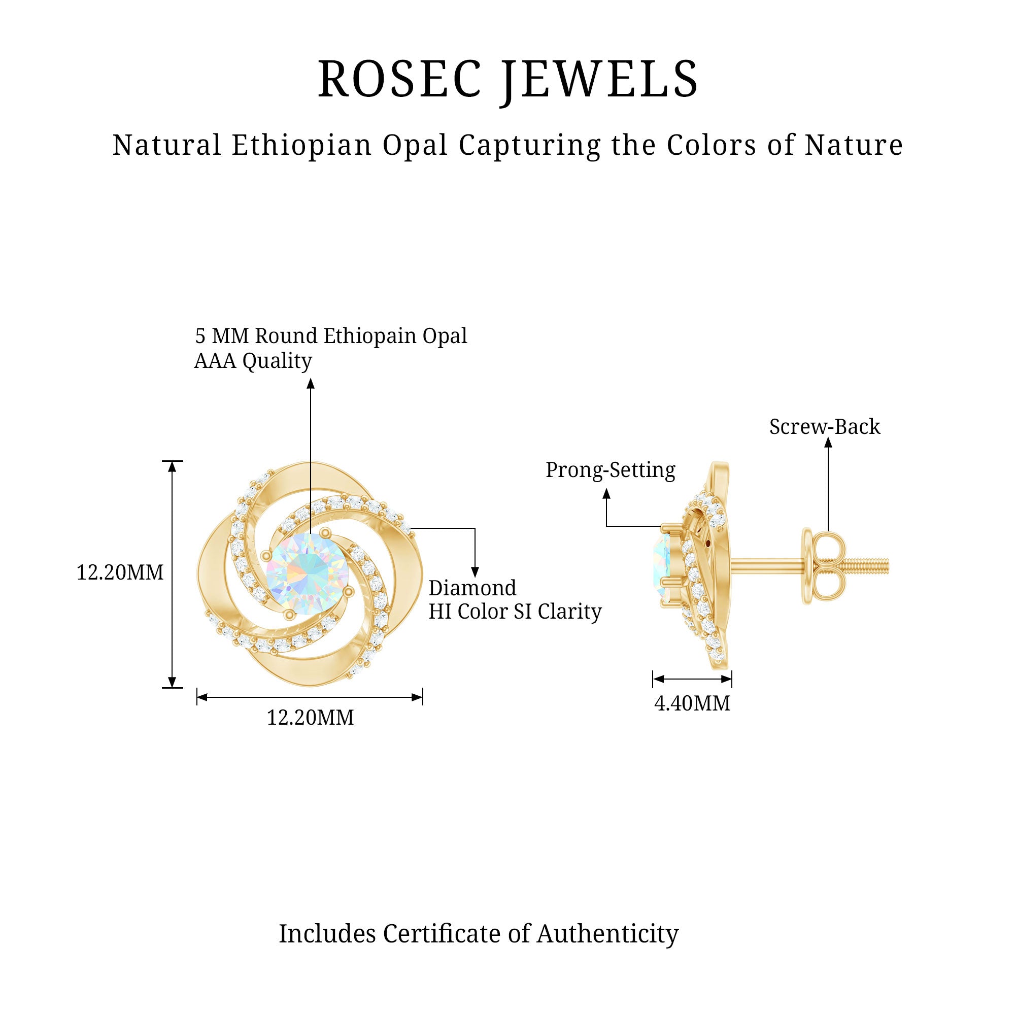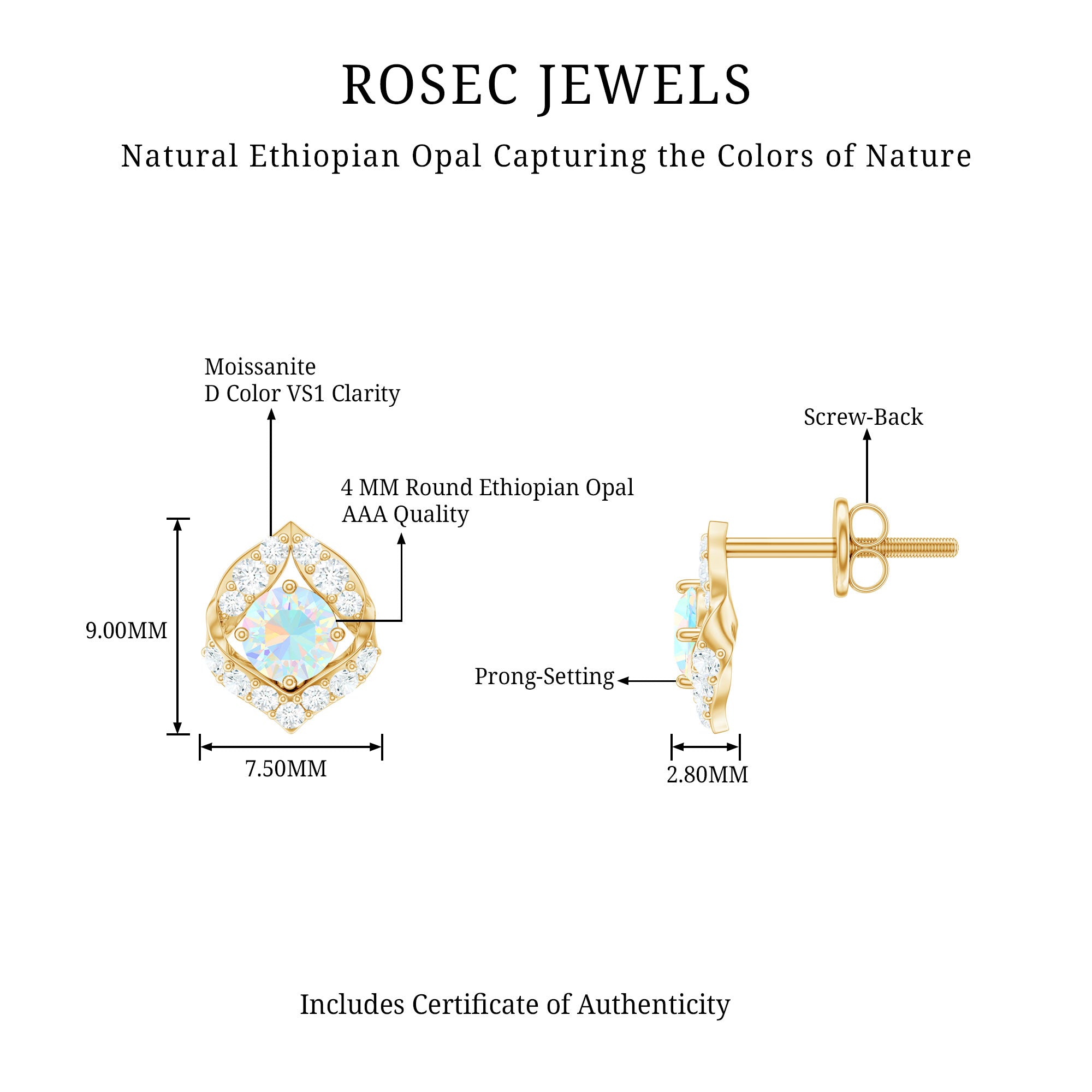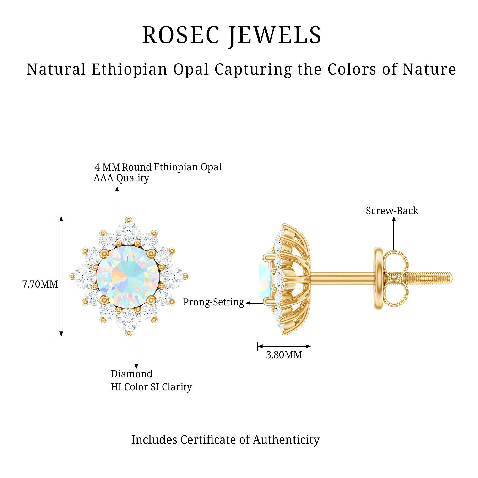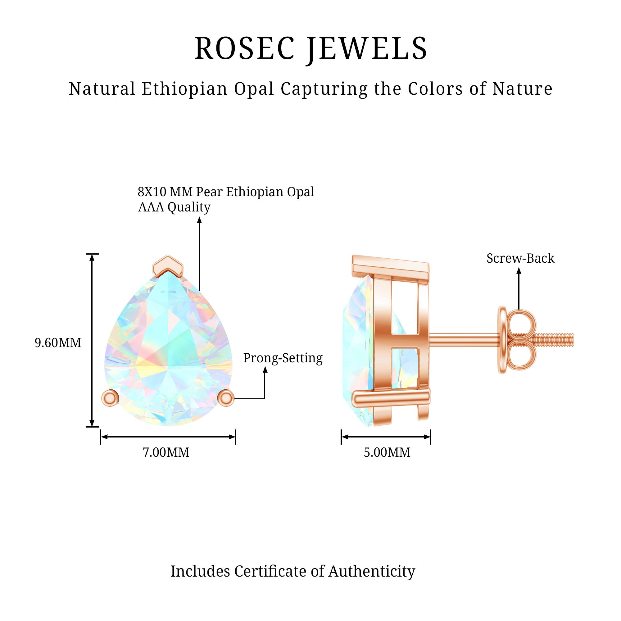 De echte opalen oorknopjes zijn bedoeld om elke dag mee te pronken en worden rechtstreeks door de oorlel gedragen (vaak vastgezet met een schroef, sluiting of vlindersluiting aan de achterkant). Om hun klassieke en minimalistische stijl moeiteloos een opvallend kleurrijk tintje te geven, zijn ze versierd met het middelpunt van Ethiopisch Opaal. Het beste gedeelte? Je kunt deze opaalgouden oorknopjes combineren met je werkensembles of je chique outfits aanvullen met hun ingetogen aantrekkingskracht; ze weten hoe ze bij elke look moeten passen.