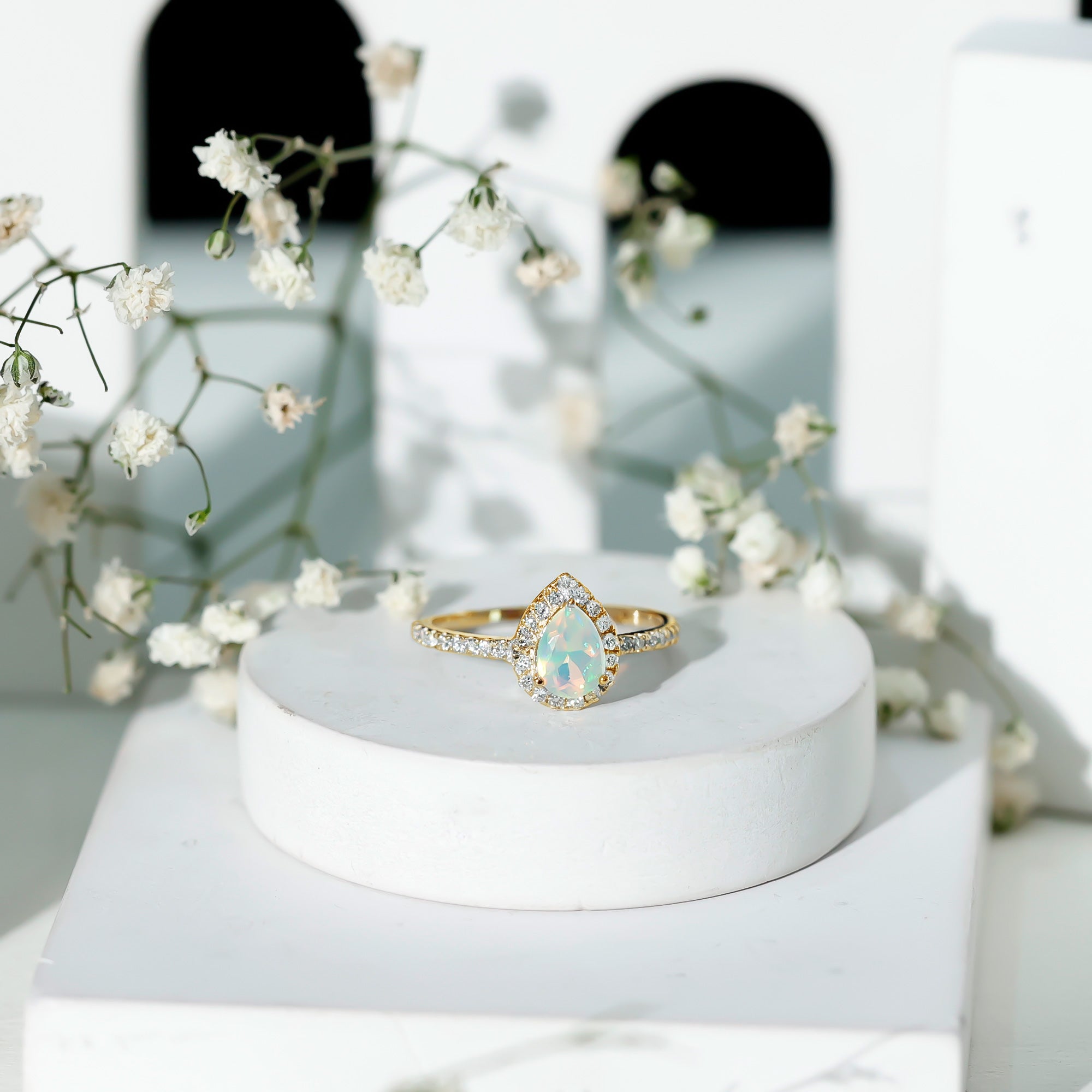 Ontdek de prachtige collectie Ethiopische opaalringen van Rosec Jewel, waar de allure van het echte opaal de schittering van diamanten en moissaniet ontmoet om betoverende kunstwerken te produceren. onze opalen ringen zijn exclusief ontworpen voor vrouwen die echte elegantie en natuurlijke schoonheid waarderen. van bandjes tot statement-makende ontwerpen, versier jezelf met de tijdloze charme van Ethiopische Opalen.