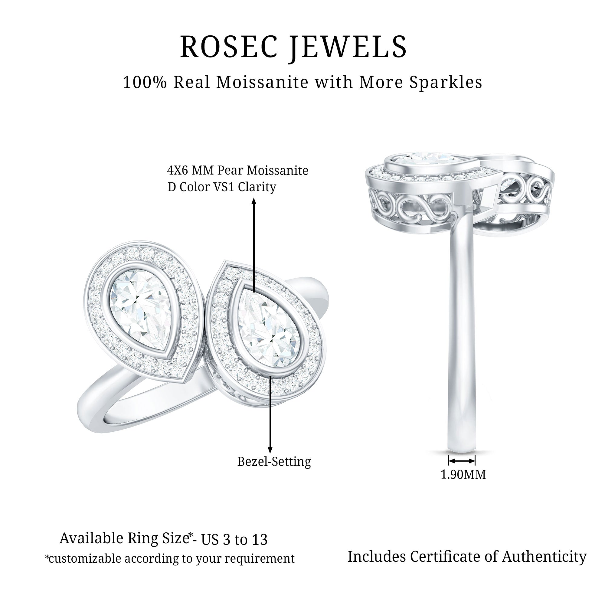 Als we het over het ontwerp hebben, wikkelt een Toi Et Moi-stijlring zich om de vinger en beschikt over twee stenen van diamanten/edelstenen die dicht bij elkaar zijn genesteld. Omdat het, in tegenstelling tot de traditionele Solitaire ring, een ring met 2 stenen is, spreekt hij meer onconventionele en eigentijdse stijlgevoelens aan.