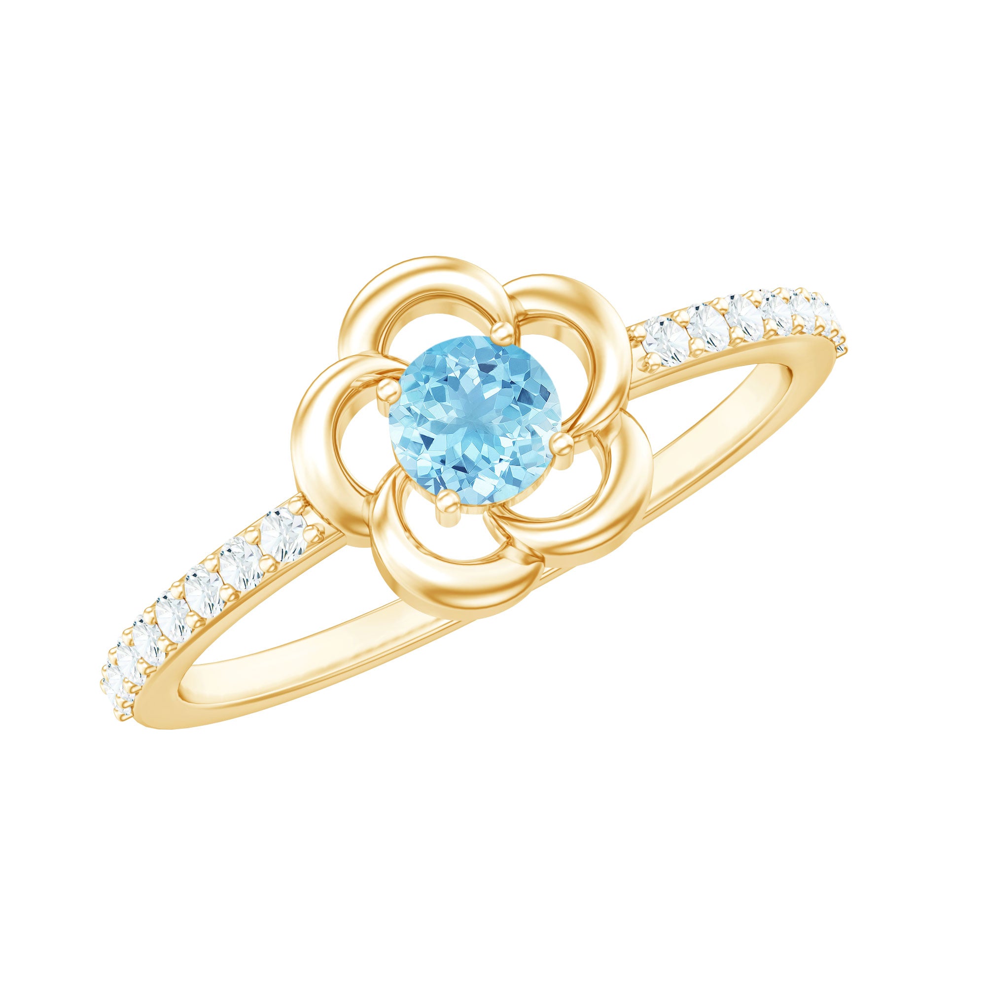 Verras je geliefde op haar verjaardag met deze Flower Promise Ring. Deze Promise Ring is versierd met ronde vorm aquamarijn in het midden en ronde diamant aan beide zijden voor meer schoonheid. Deze Aquamarijn Promise Ring is gemaakt voor een weelderige aantrekkingskracht.