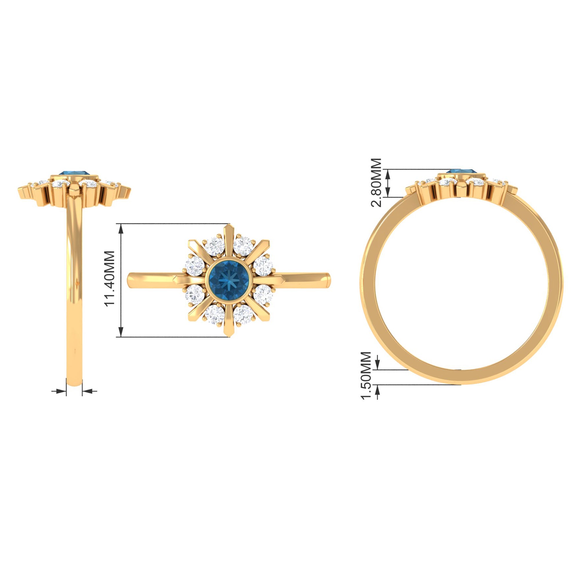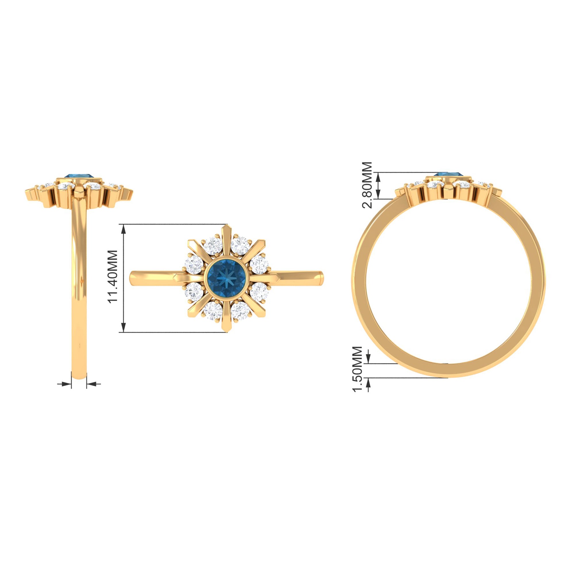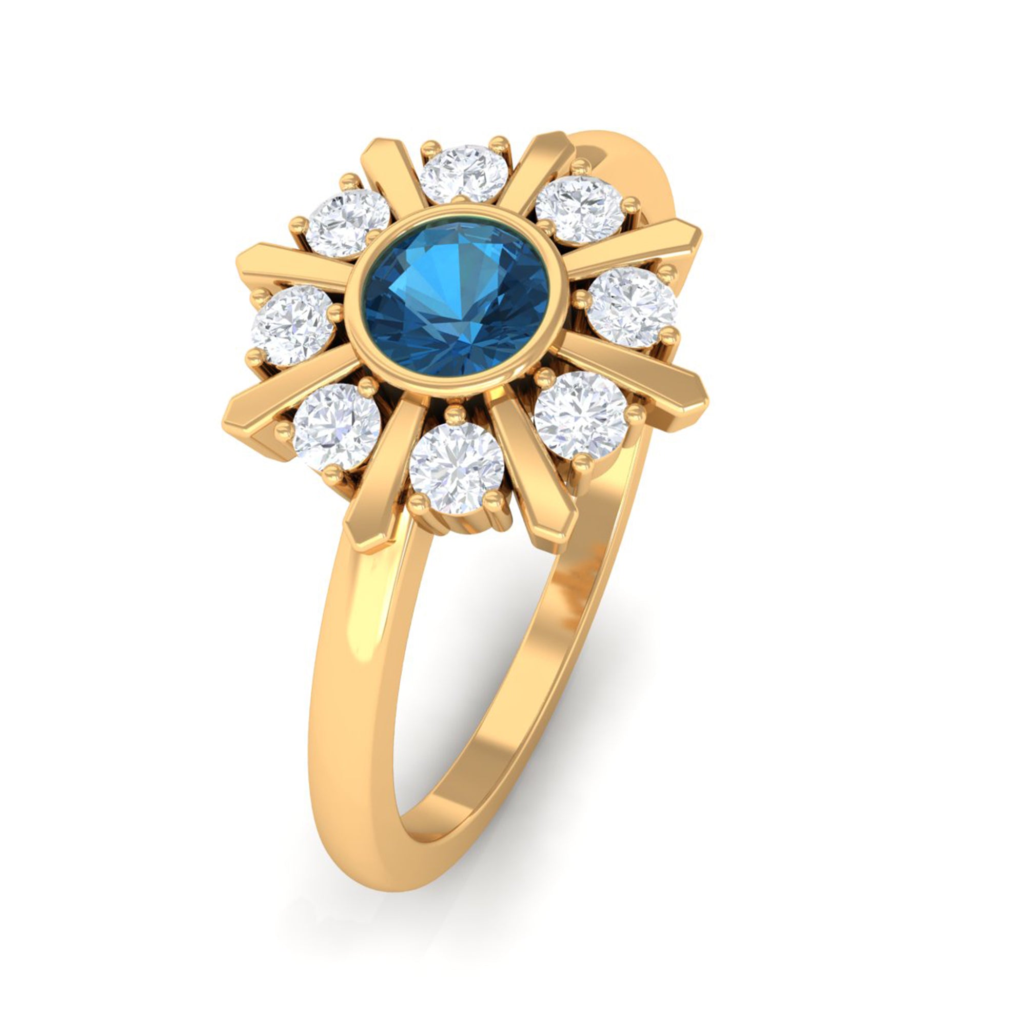 De boeiende en verleidelijke London Blue Topaz en Diamond Statement Ring is tot in de perfectie handgemaakt in goud voor een weelderige uitstraling. De ronde London Blue Topaas is in een bezelsetting geplaatst voor een betoverende uitstraling. De centraal geplaatste London Blue Topaz vestigt moeiteloos de aandacht op zijn ongelooflijke uitstraling.