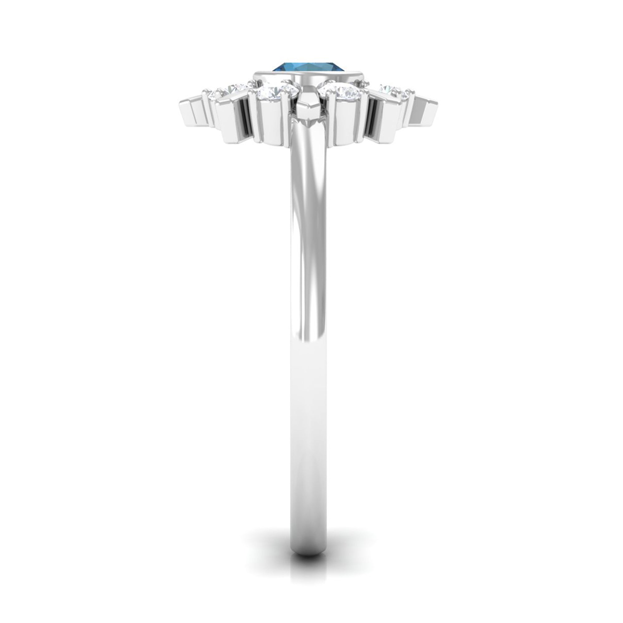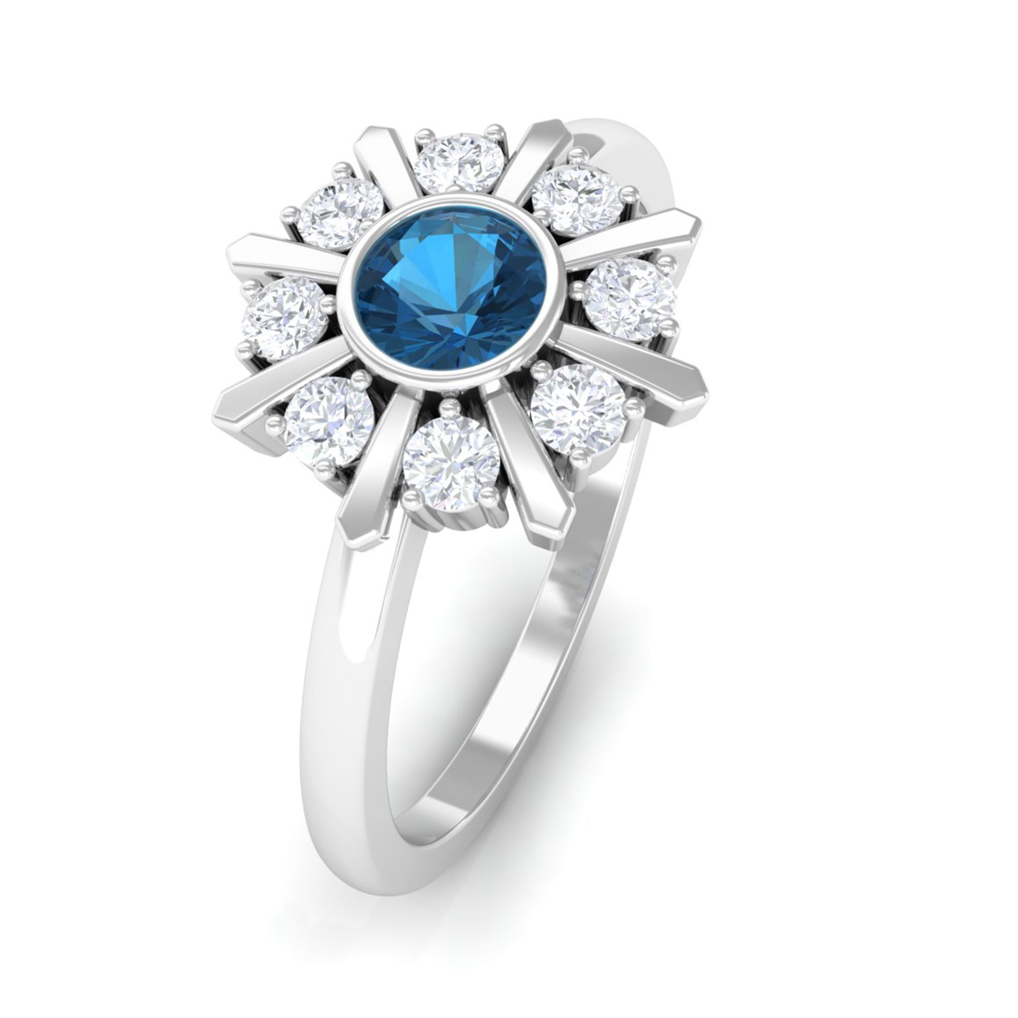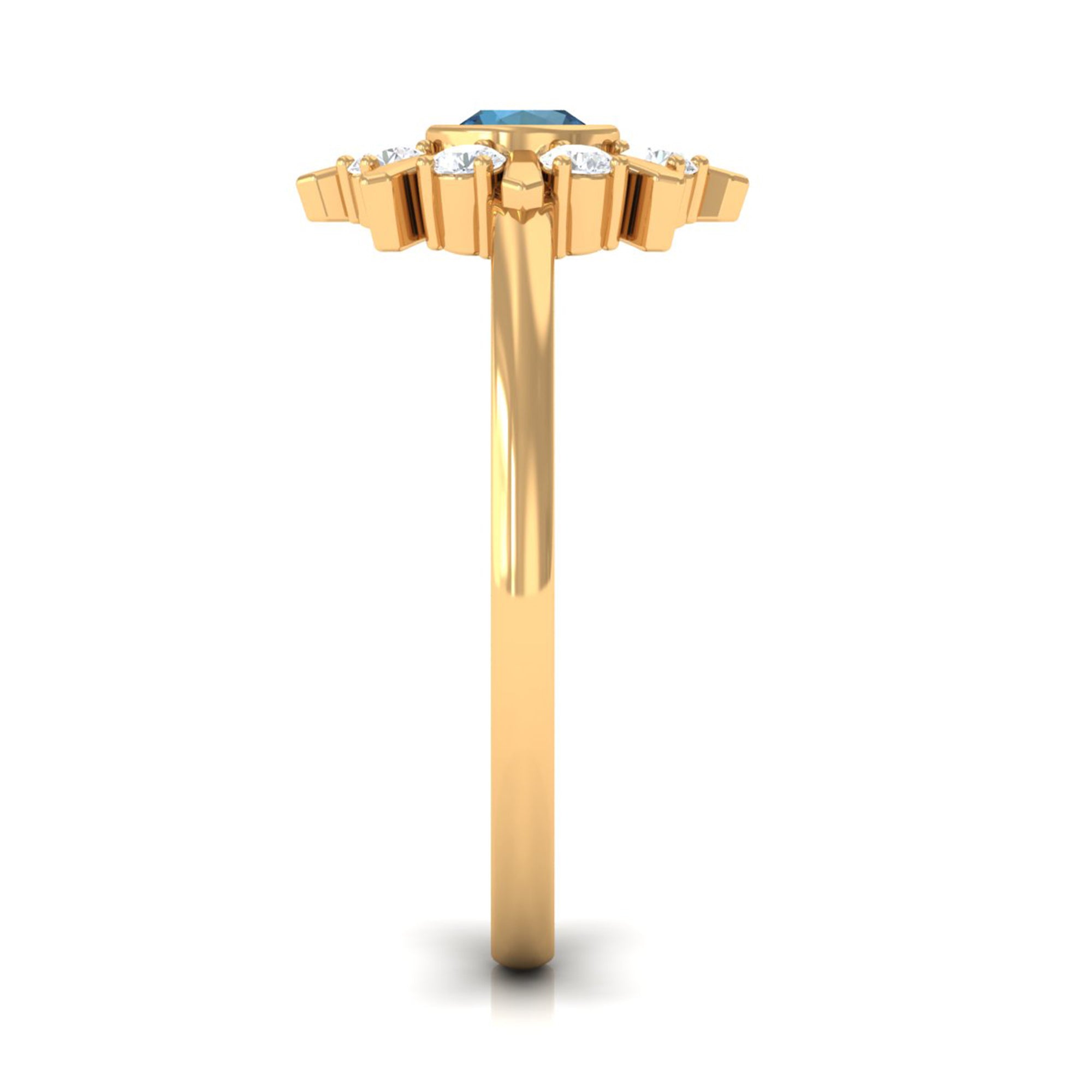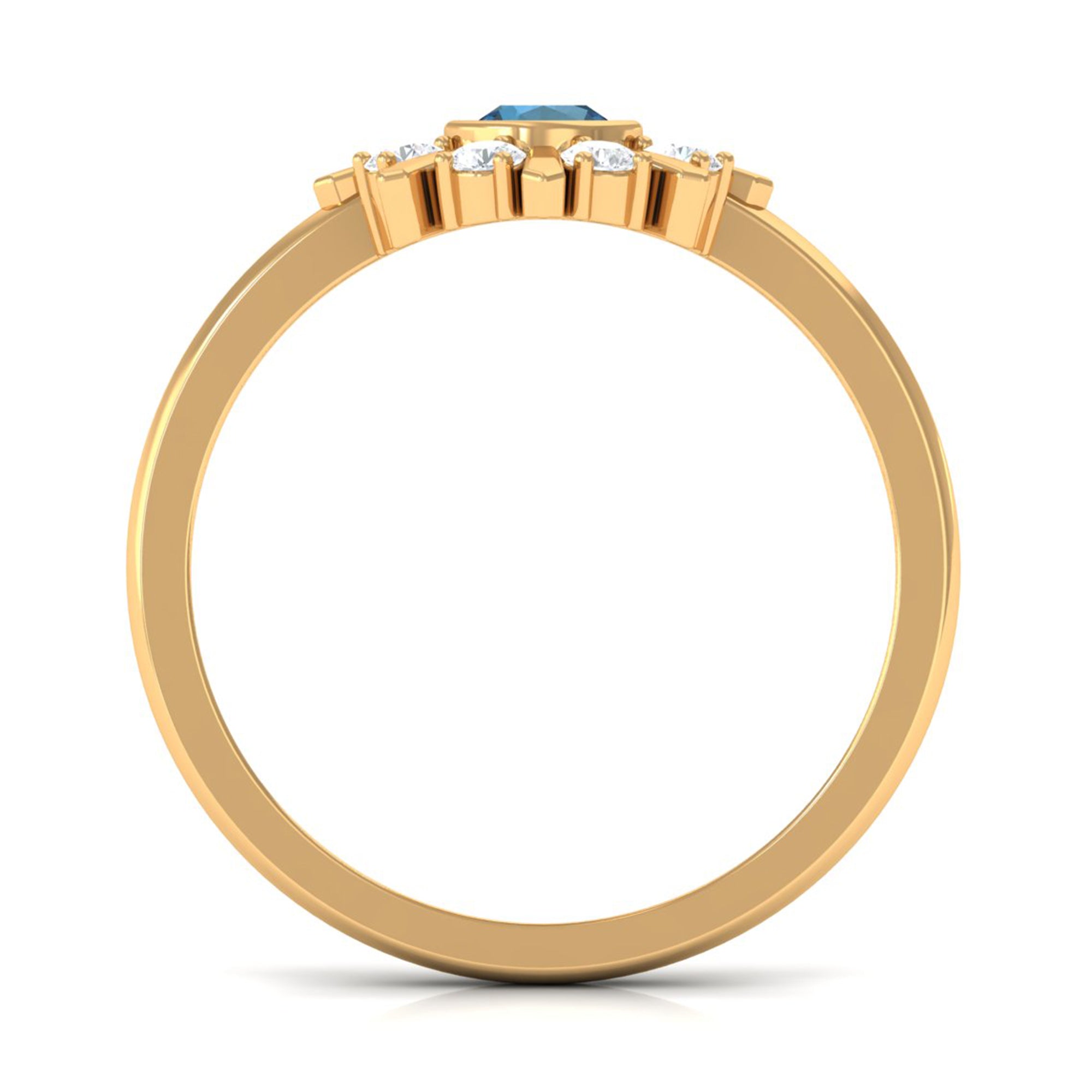 De boeiende en verleidelijke London Blue Topaz en Diamond Statement Ring is tot in de perfectie handgemaakt in goud voor een weelderige uitstraling. De ronde London Blue Topaas is in een bezelsetting geplaatst voor een betoverende uitstraling. De centraal geplaatste London Blue Topaz vestigt moeiteloos de aandacht op zijn ongelooflijke uitstraling.