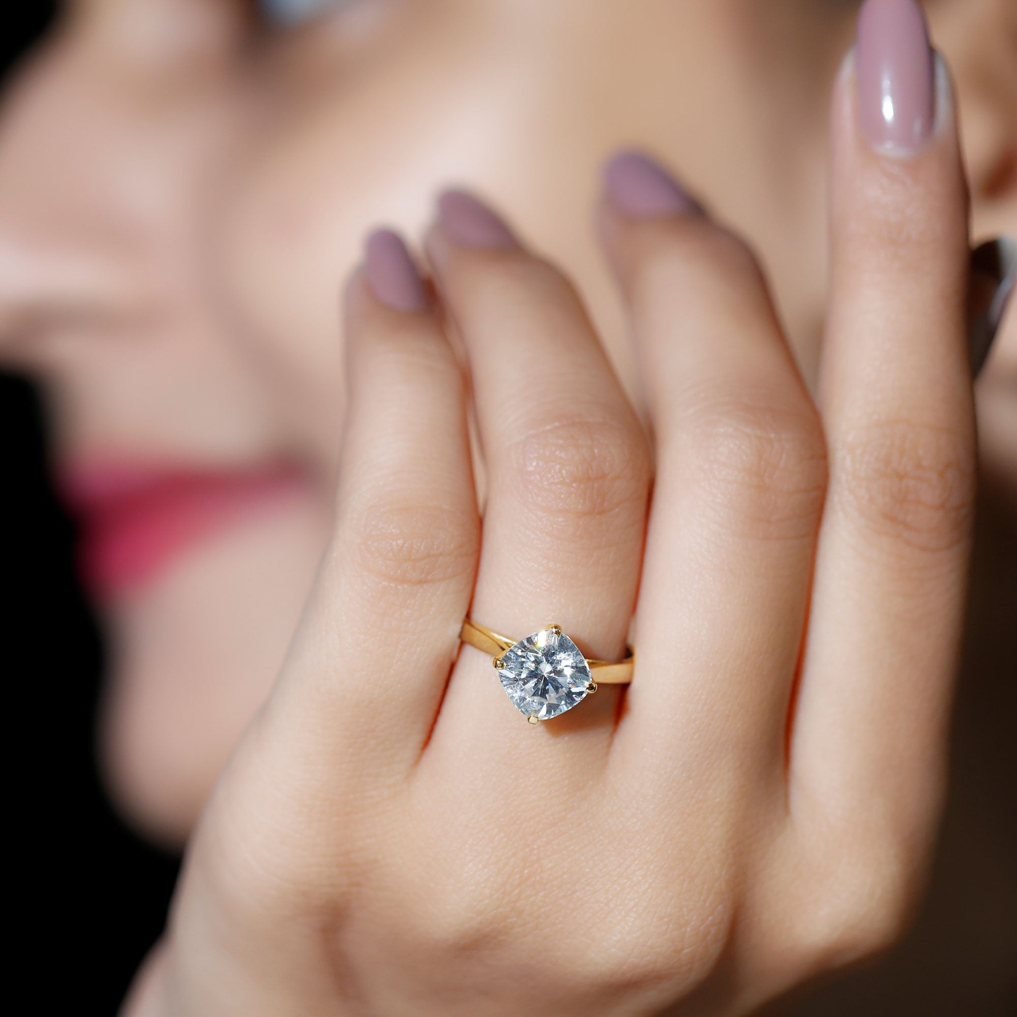 3,25 CT kussengeslepen Moissanite Solitaire-ring in goud