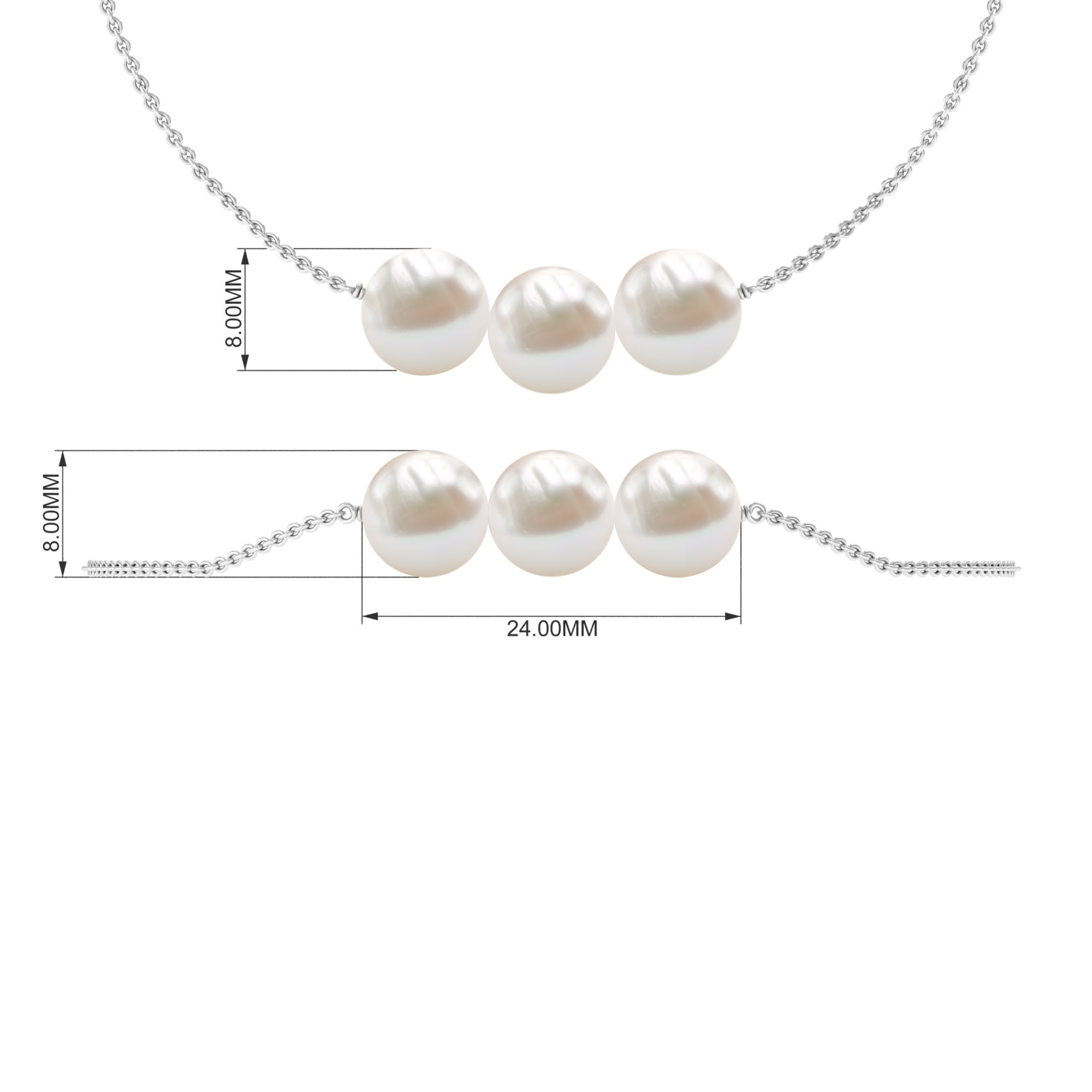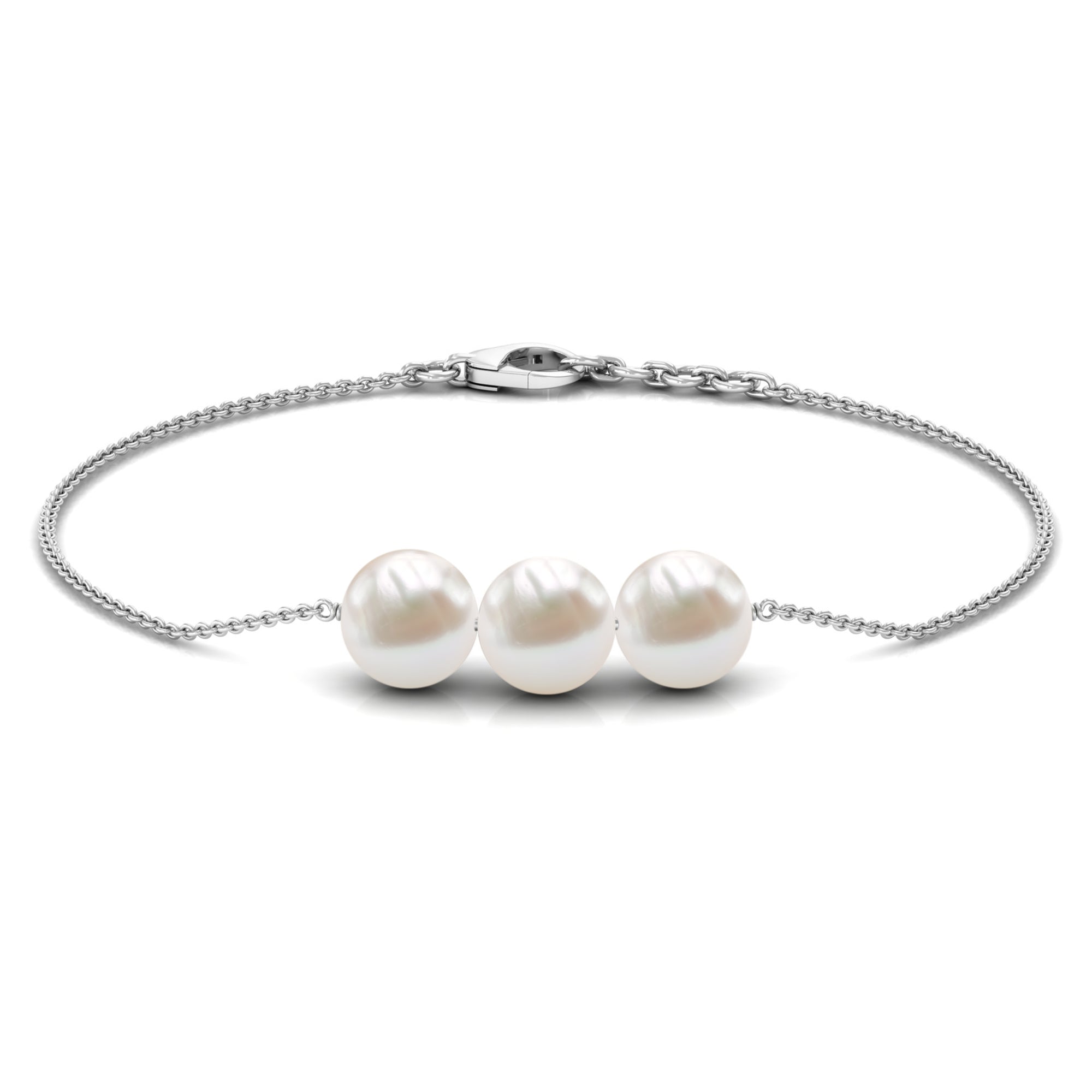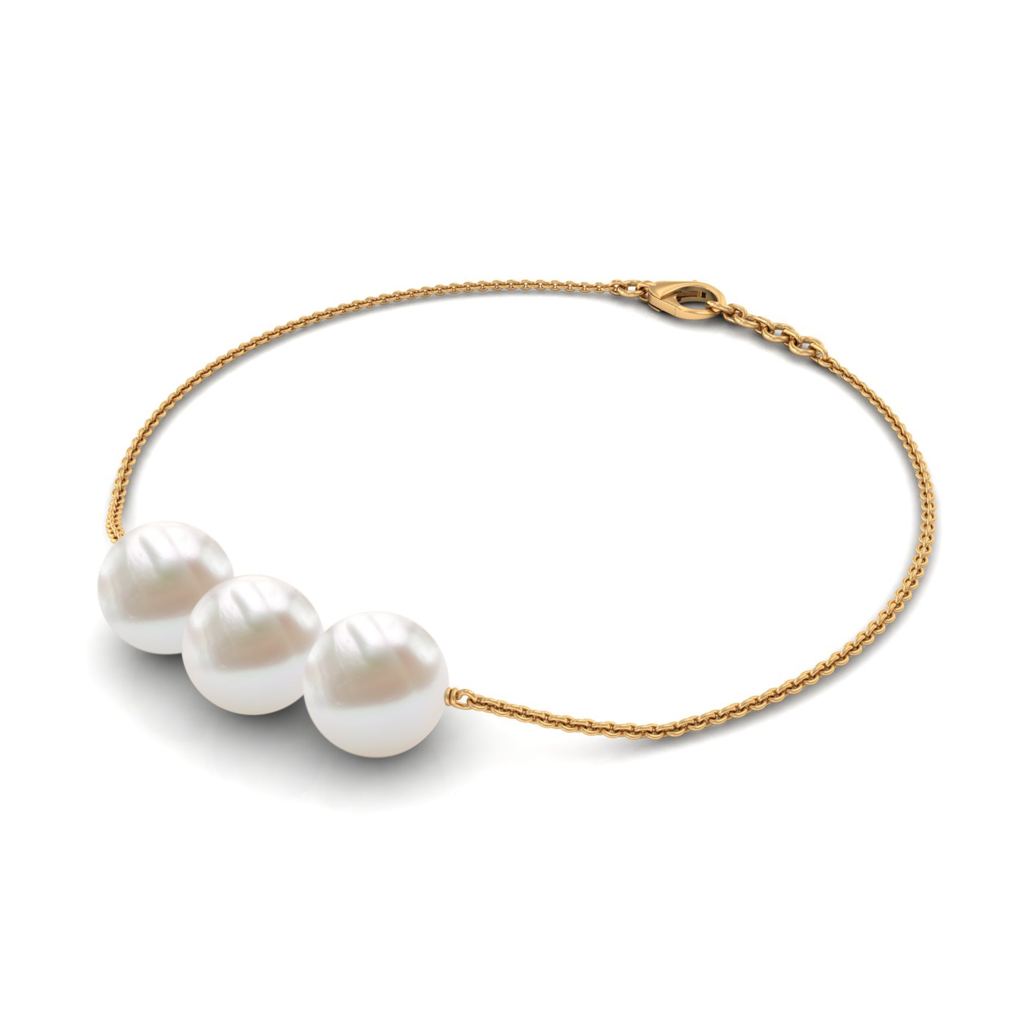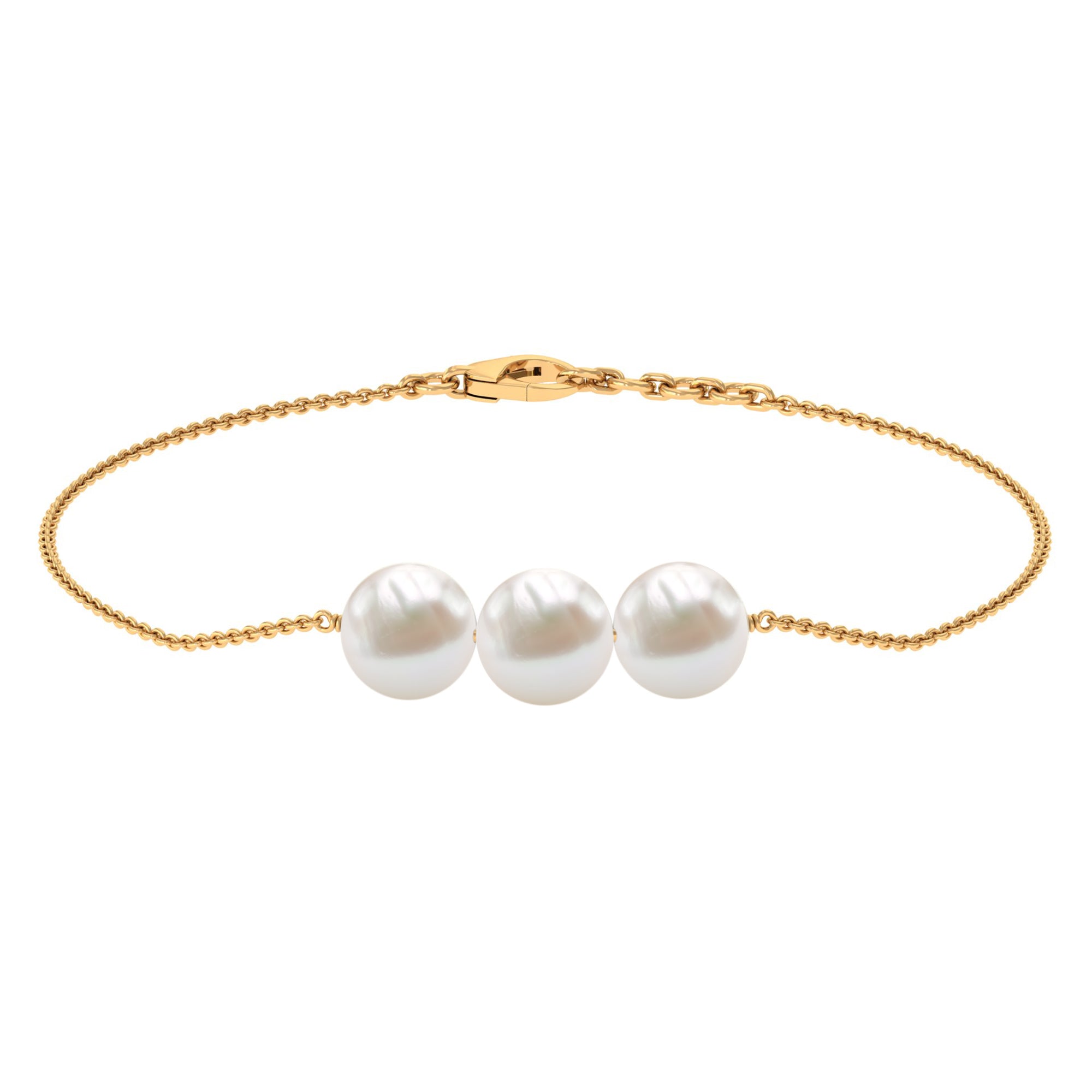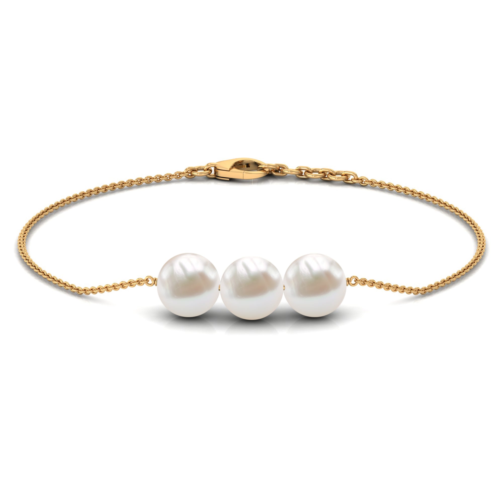 8 MM Zoetwaterparel drie stenen kettingarmband in goud