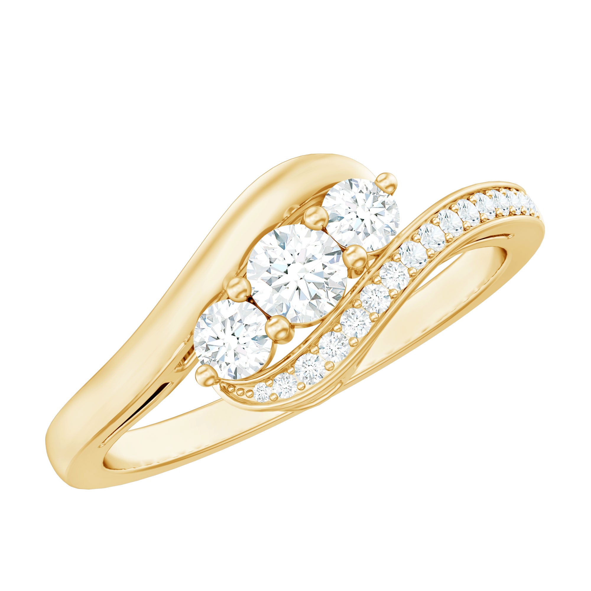 Certified Moissanite Three Stone Engagement Ring with Bypass Shank