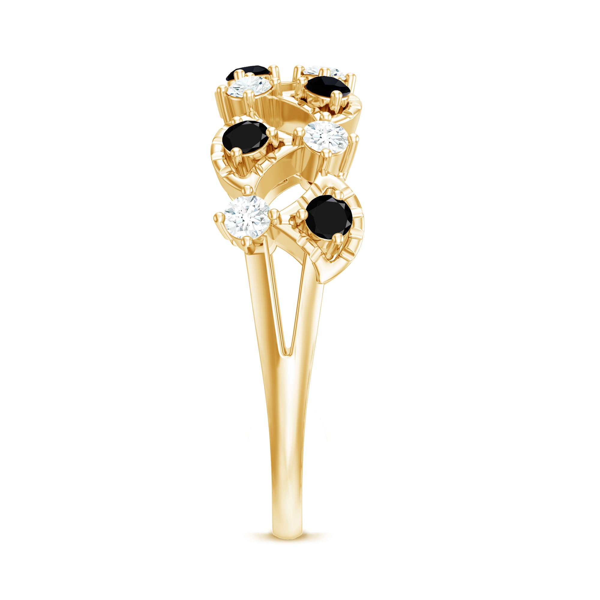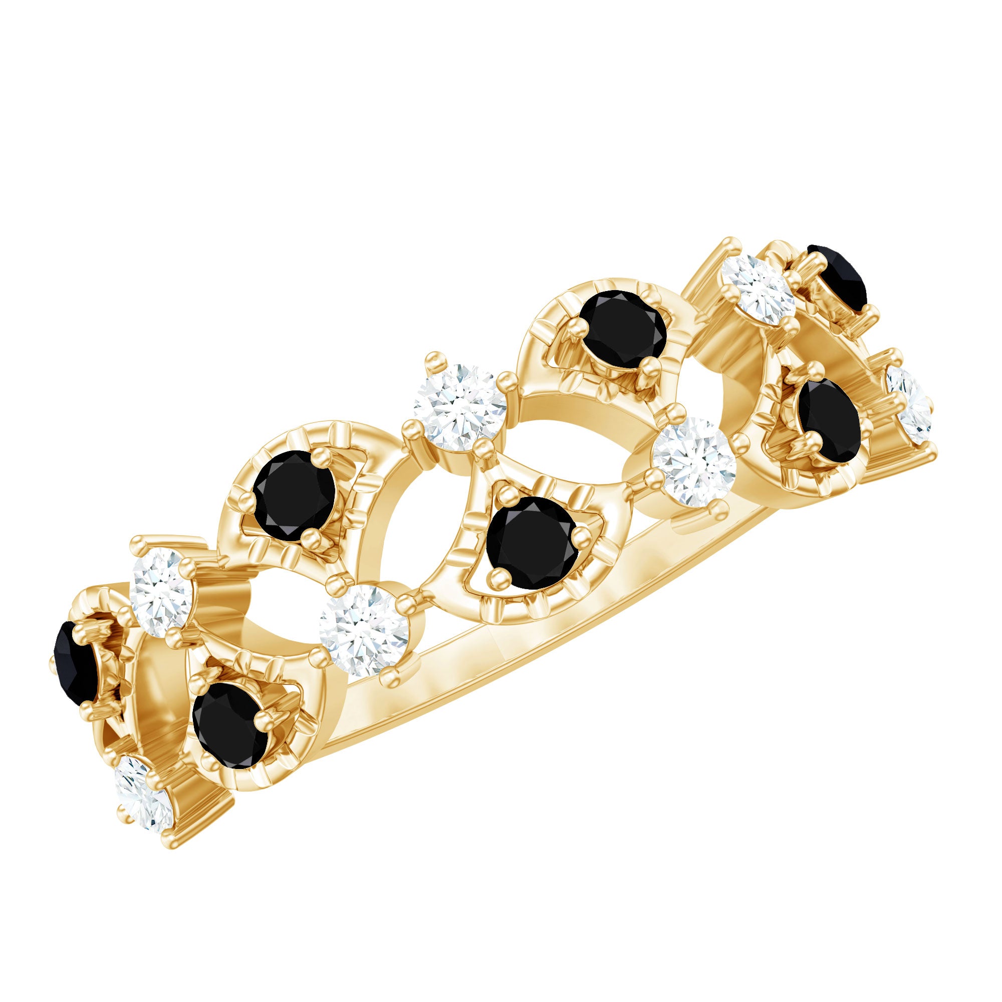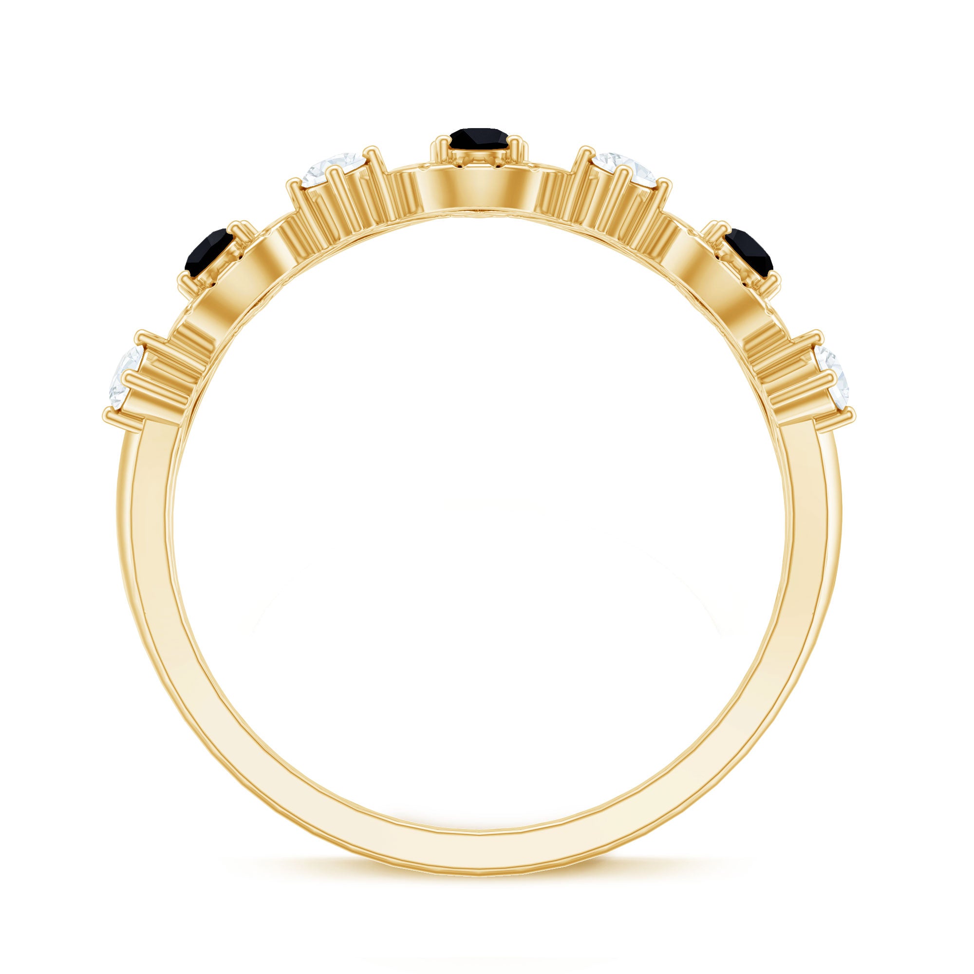 Vier je toewijding aan de liefde met deze prachtige Black Diamond halve eeuwigheidsband. De band is versierd met rondgeslepen Black Diamond en Moissanites in een designerschacht, waardoor het een mooi en uniek symbool is van jullie eeuwige band. Deze natuurlijke Moissanite trouwring is vervaardigd uit goudkleurig metaal voor een vleugje elegantie en duurzaamheid.