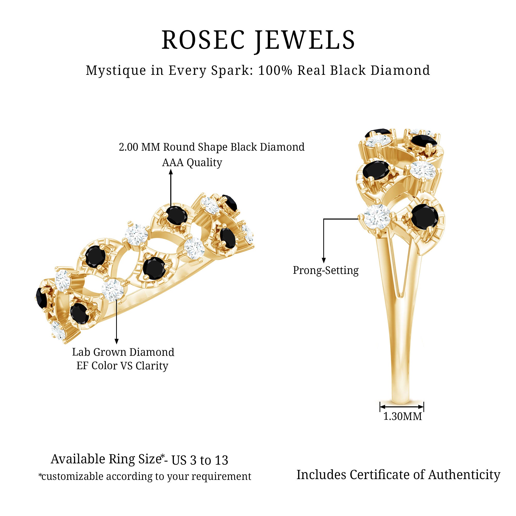 Echte zwarte diamant en Moissanite ontwerper halve eeuwigheid bandring