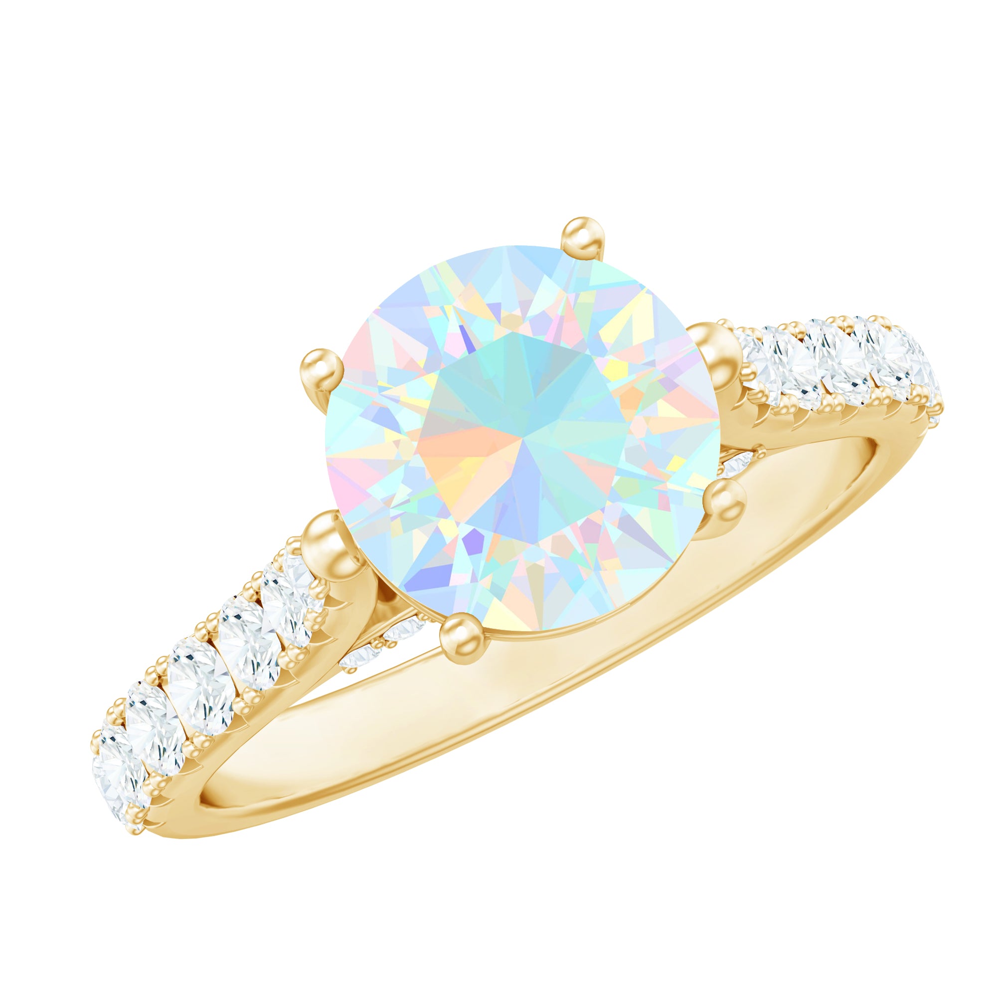 3 CT Ethiopische Opal Solitaire verlovingsring met diamanten zijstenen