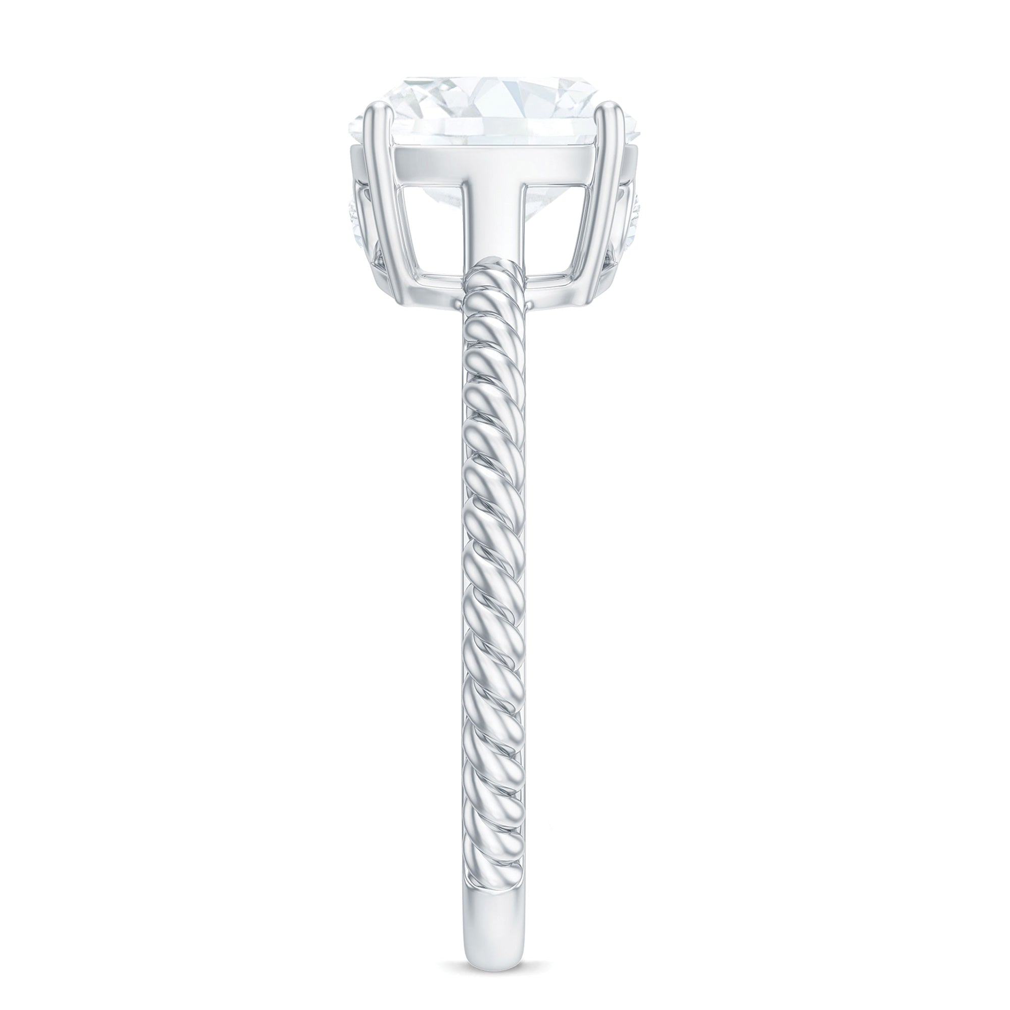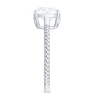 Toon je liefde met deze prachtige Moissanite Solitaire-verlovingsring. De ring is voorzien van een 8 MM kussengesneden Moissanite in een griffenzetting, omgeven door verborgen Moissanite op de gedraaide touwschacht, allemaal vervaardigd in massief goud voor een luxe uitstraling. Laat je partner zich een koningin voelen met deze glamoureuze ring.