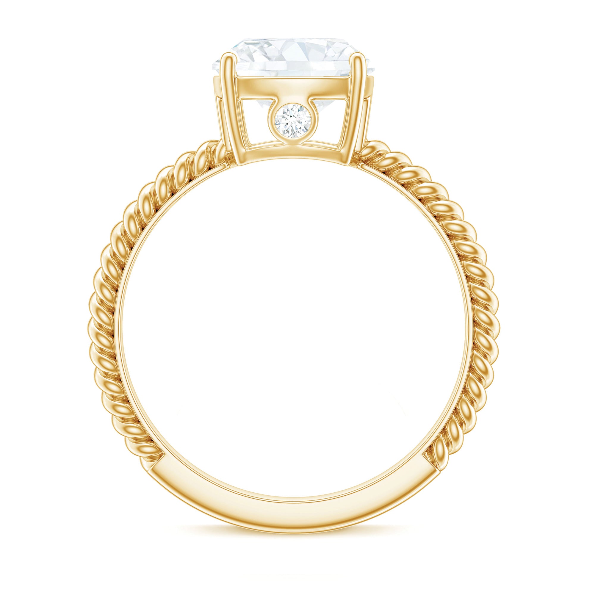 Kussen gesneden Moissanite Solitaire ring met goud gedraaid touw